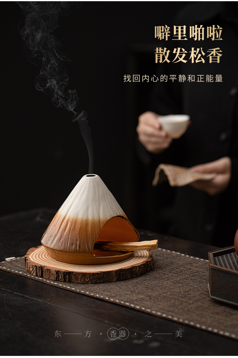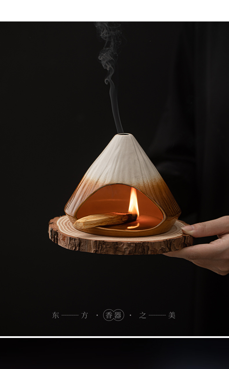 Lò sưởi thắp hương núi Phú Sĩ, lư hương xô thơm tuyết tùng, lư hương gốm sứ bằng gỗ thiêng Peru