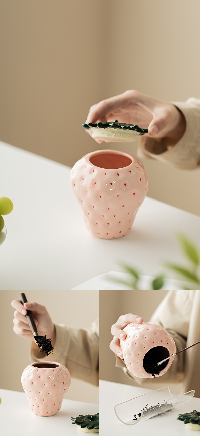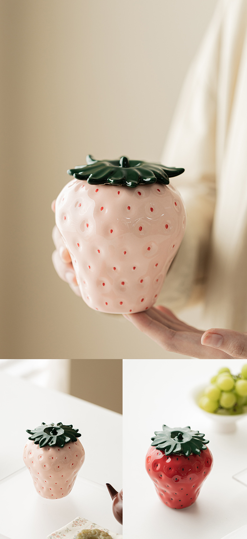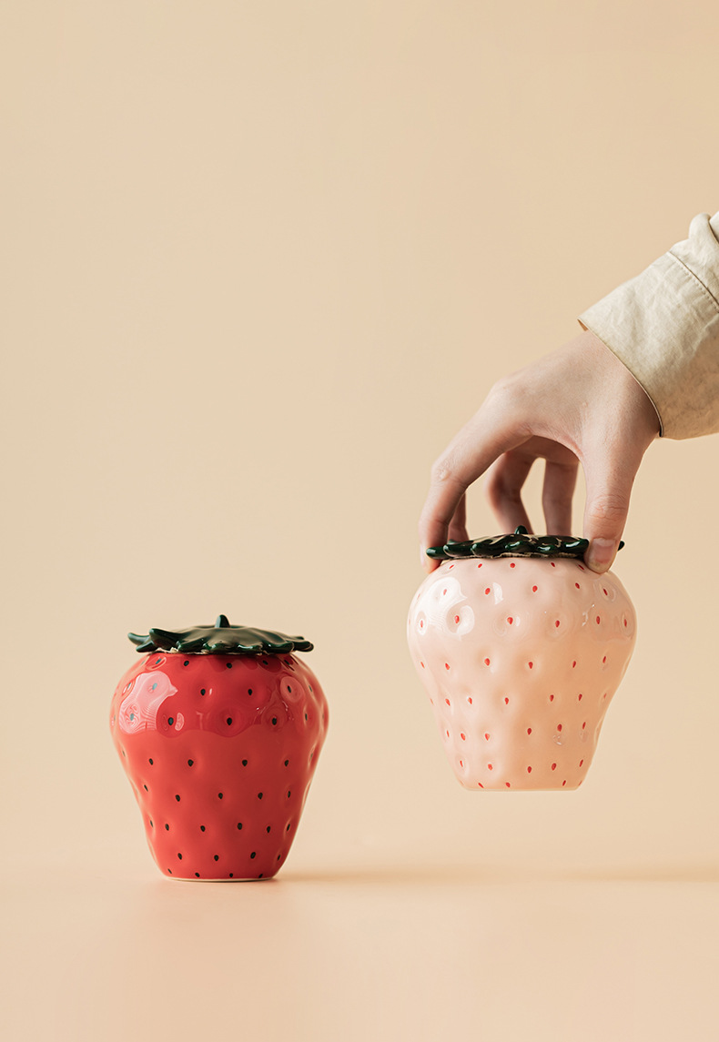 - Lọ trà dâu tây đồ trang trí trang trí gia dụng gốm sứ sáng tạo lọ đựng đồ kín lọ đựng trà lọ đựng trà phụ kiện bộ trà