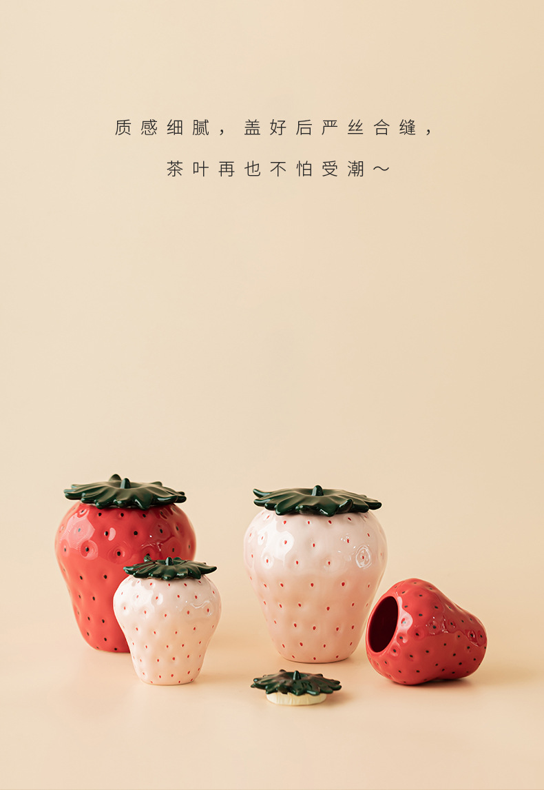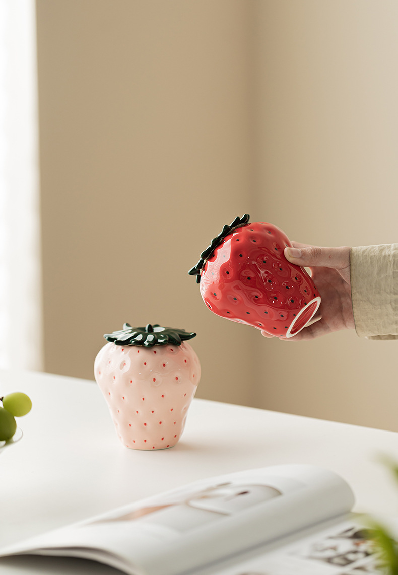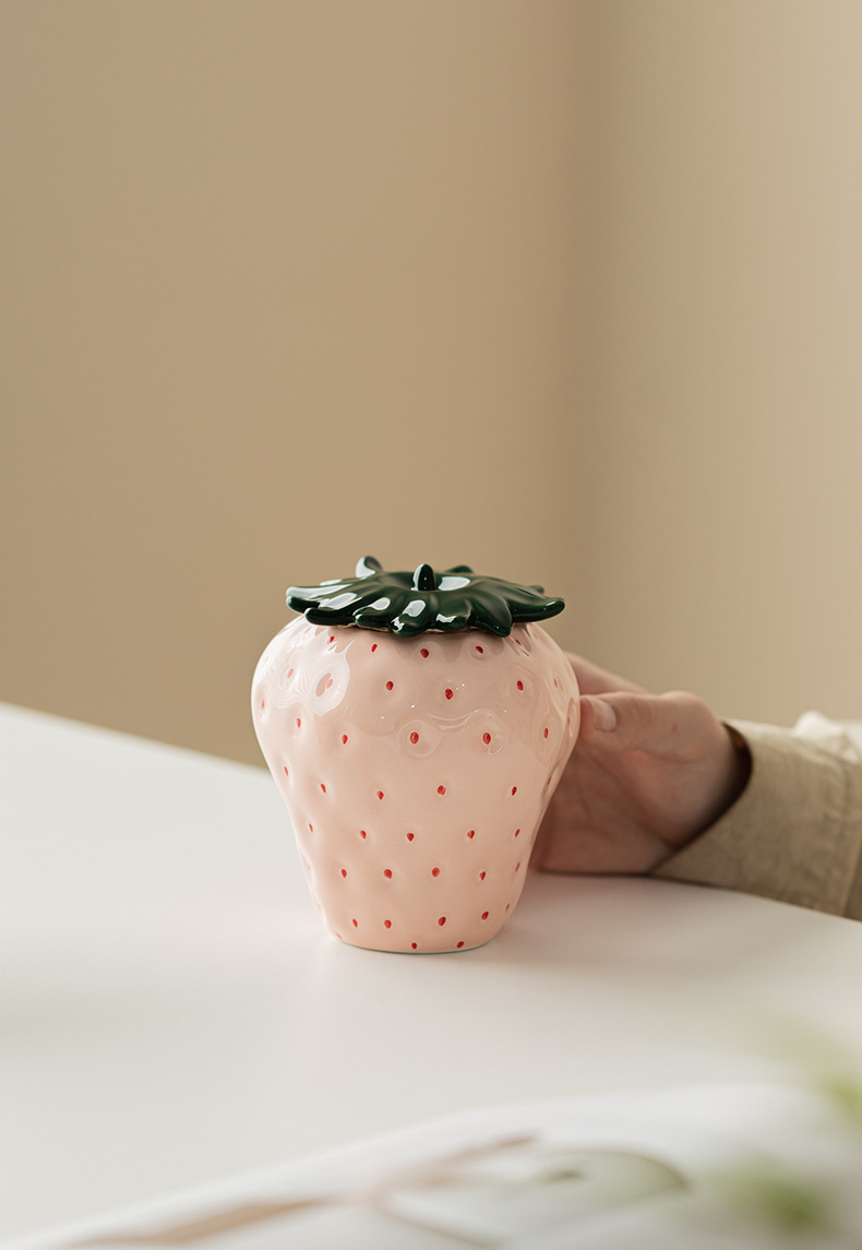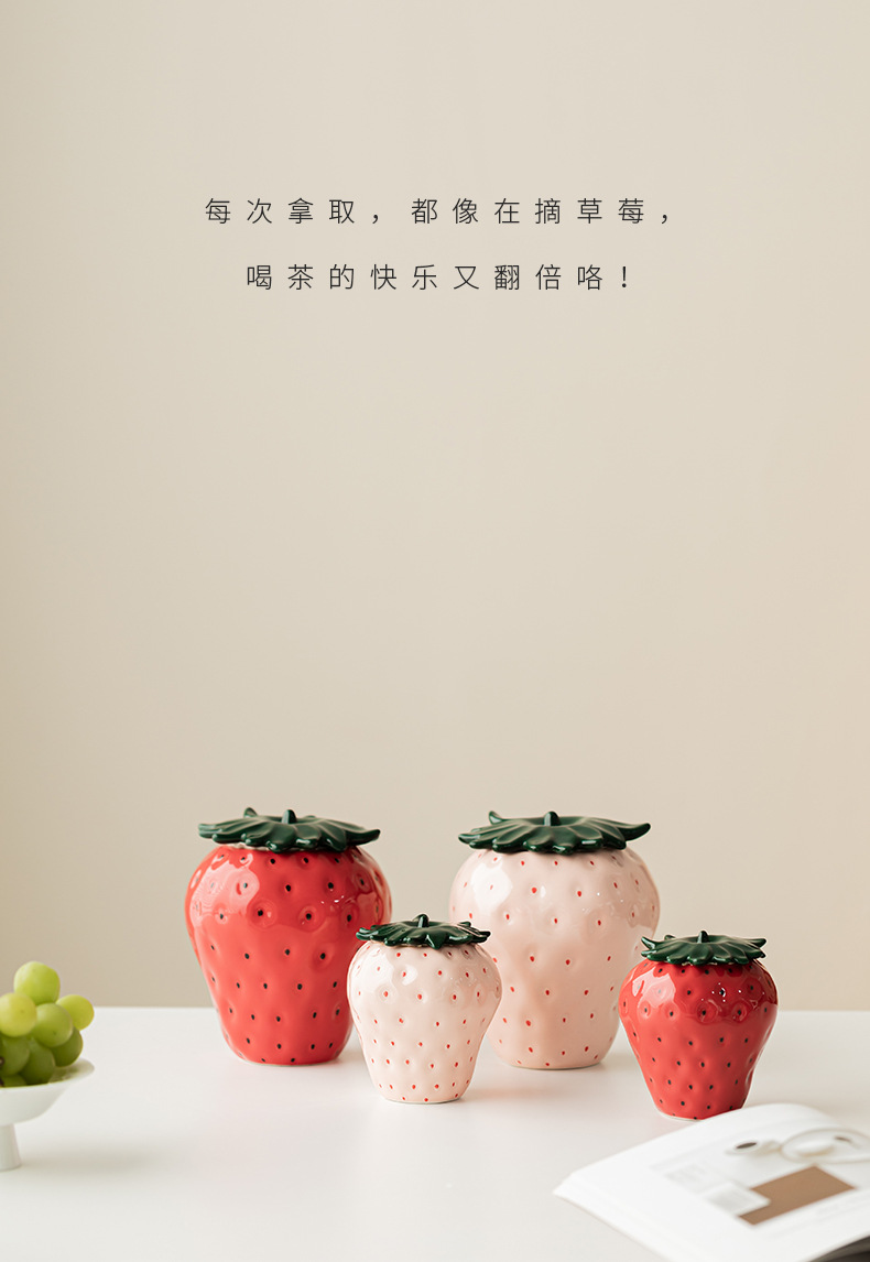 Lọ trà dâu tây đồ trang trí trang trí gia dụng gốm sứ sáng tạo lọ đựng đồ kín lọ đựng trà lọ đựng trà phụ kiện bộ trà