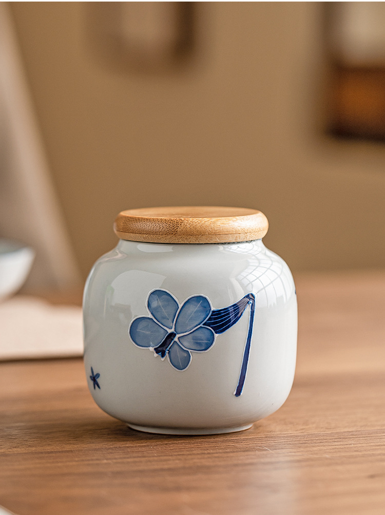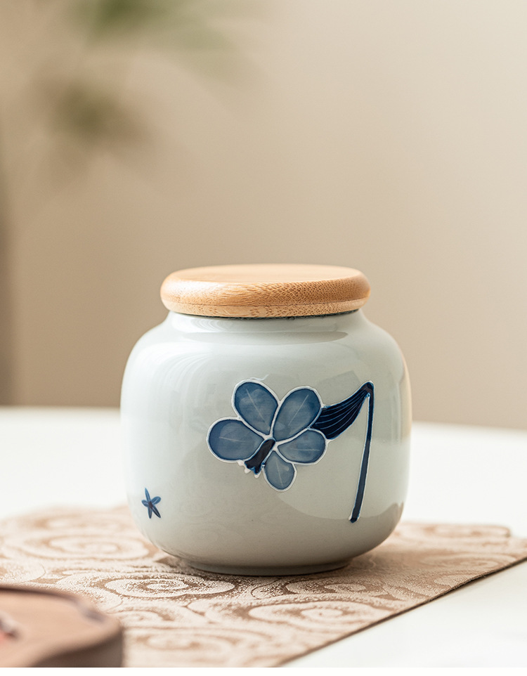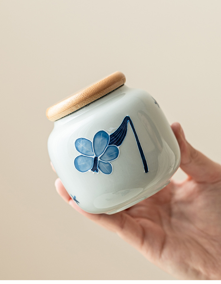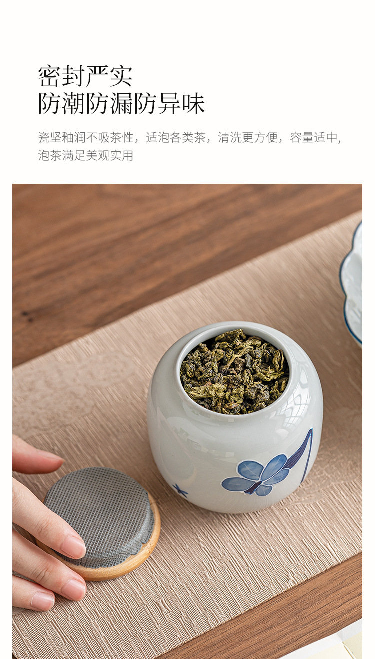 Lọ trà gốm sứ chạm nổi vẽ tay, bình rỗng cầm tay, bình đựng trà, bình kín, bình chống ẩm, bình đựng trà