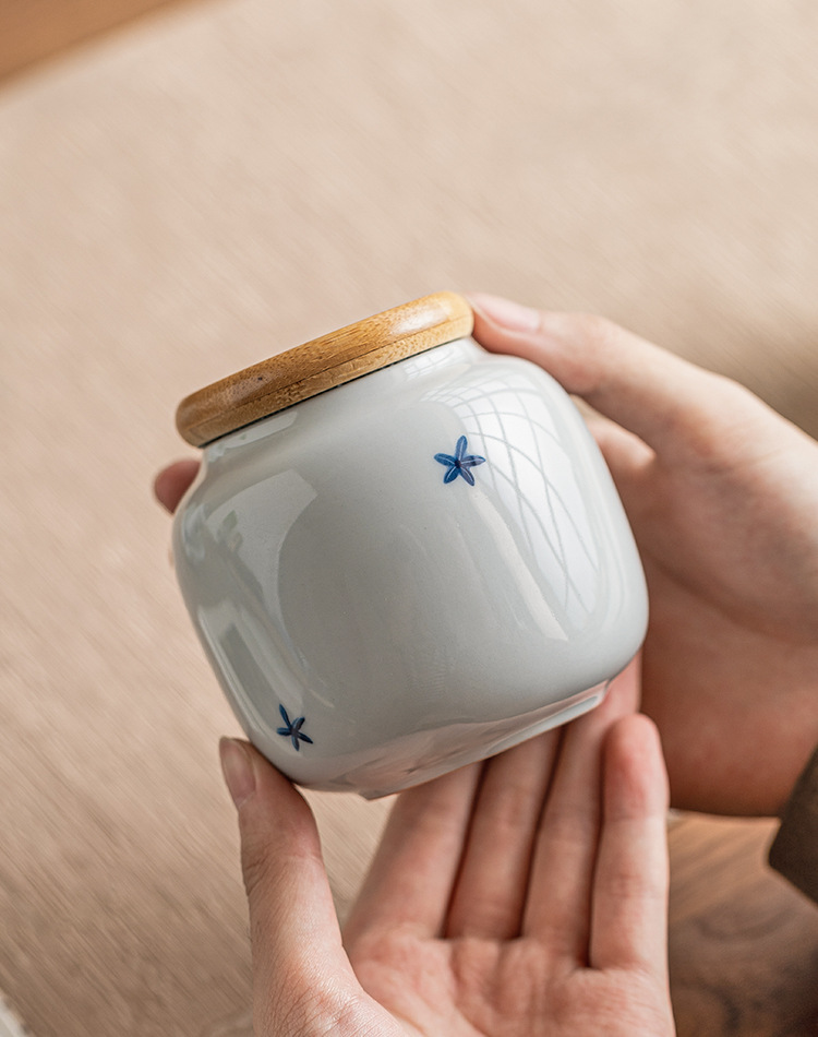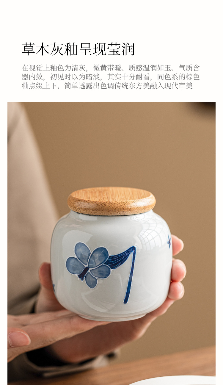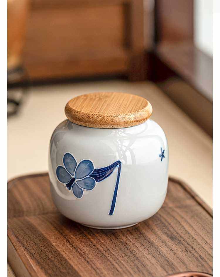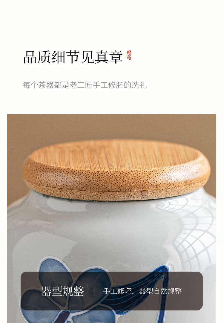 Lọ trà gốm sứ chạm nổi vẽ tay, bình rỗng cầm tay, bình đựng trà, bình kín, bình chống ẩm, bình đựng trà
