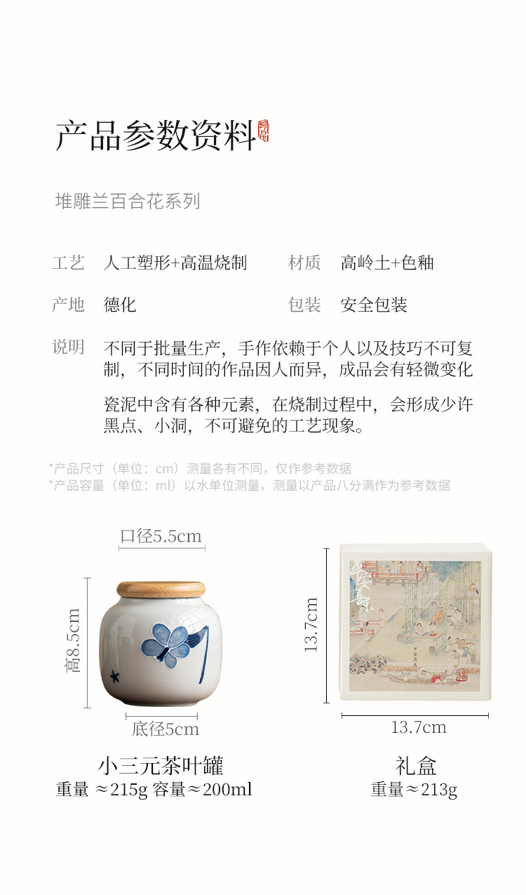 - Lọ trà gốm sứ chạm nổi vẽ tay, bình rỗng cầm tay, bình đựng trà, bình kín, bình chống ẩm, bình đựng trà