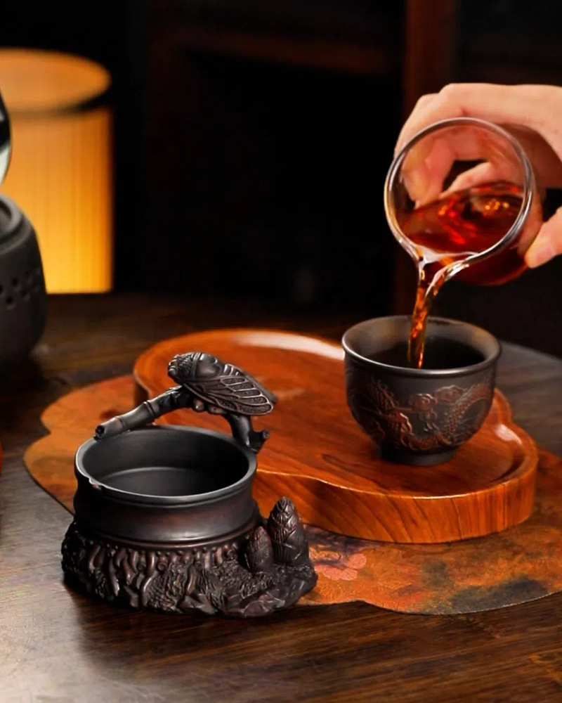 Lọc trà gốm tím lọc bã trà lưới lọc trà phụ kiện trà đạo bộ trà đồ trang trí thú vị trà sáng tạo lọc trà gia dụng