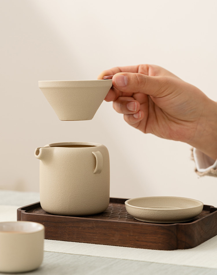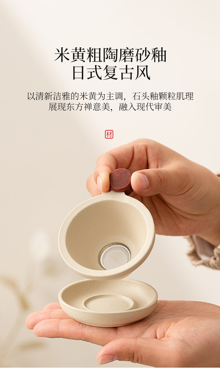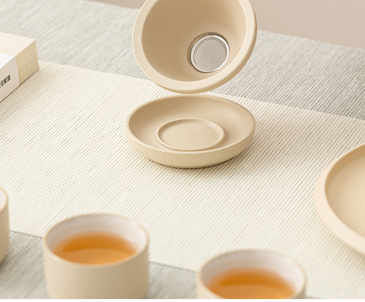 - Lọc trà màu be lọc trà lọc trà lọc lưới lọc trà cốc công tắc Tích hợp Bộ trà gốm sứ phụ kiện Phễu pha trà