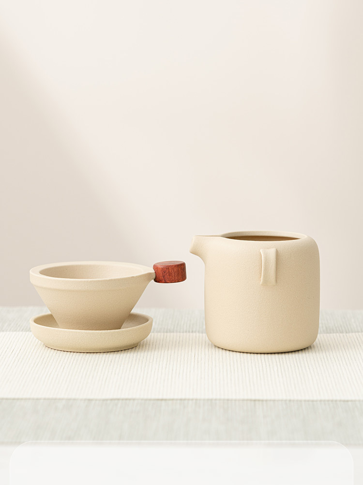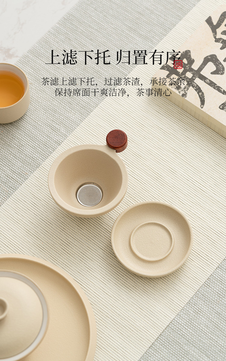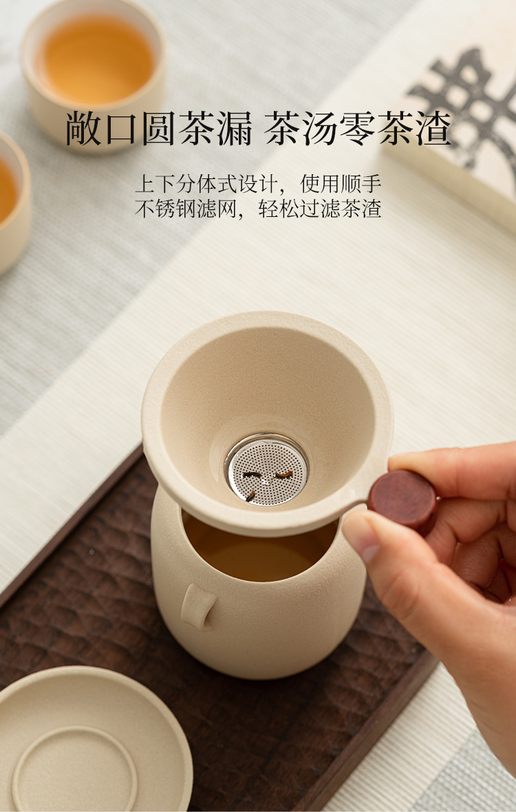 Lọc trà màu be lọc trà lọc trà lọc lưới lọc trà cốc công tắc Tích hợp Bộ trà gốm sứ phụ kiện Phễu pha trà
