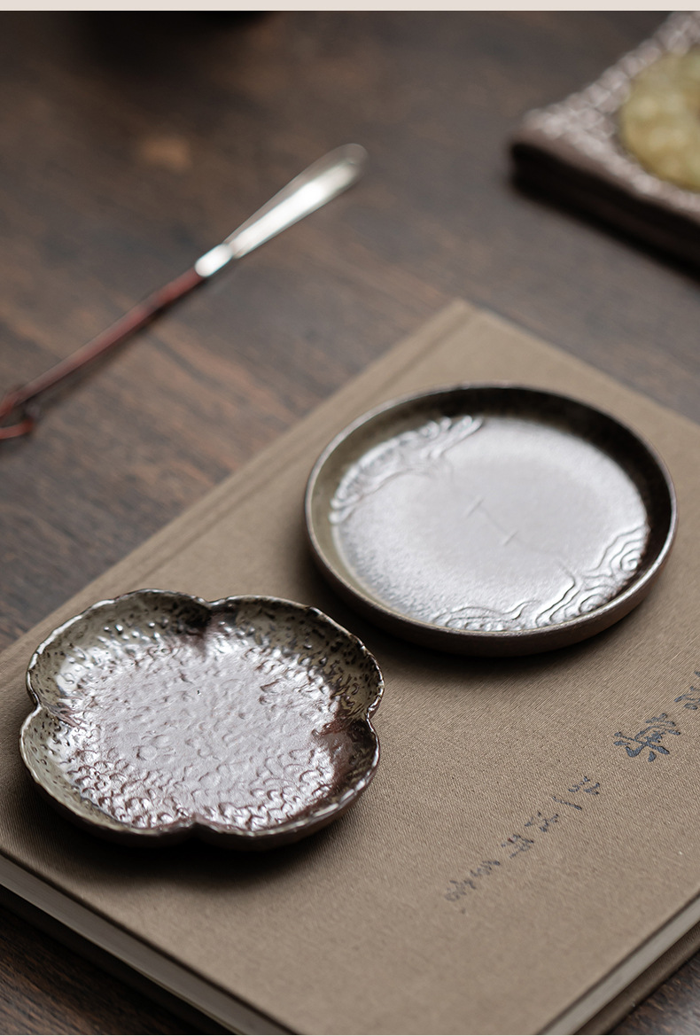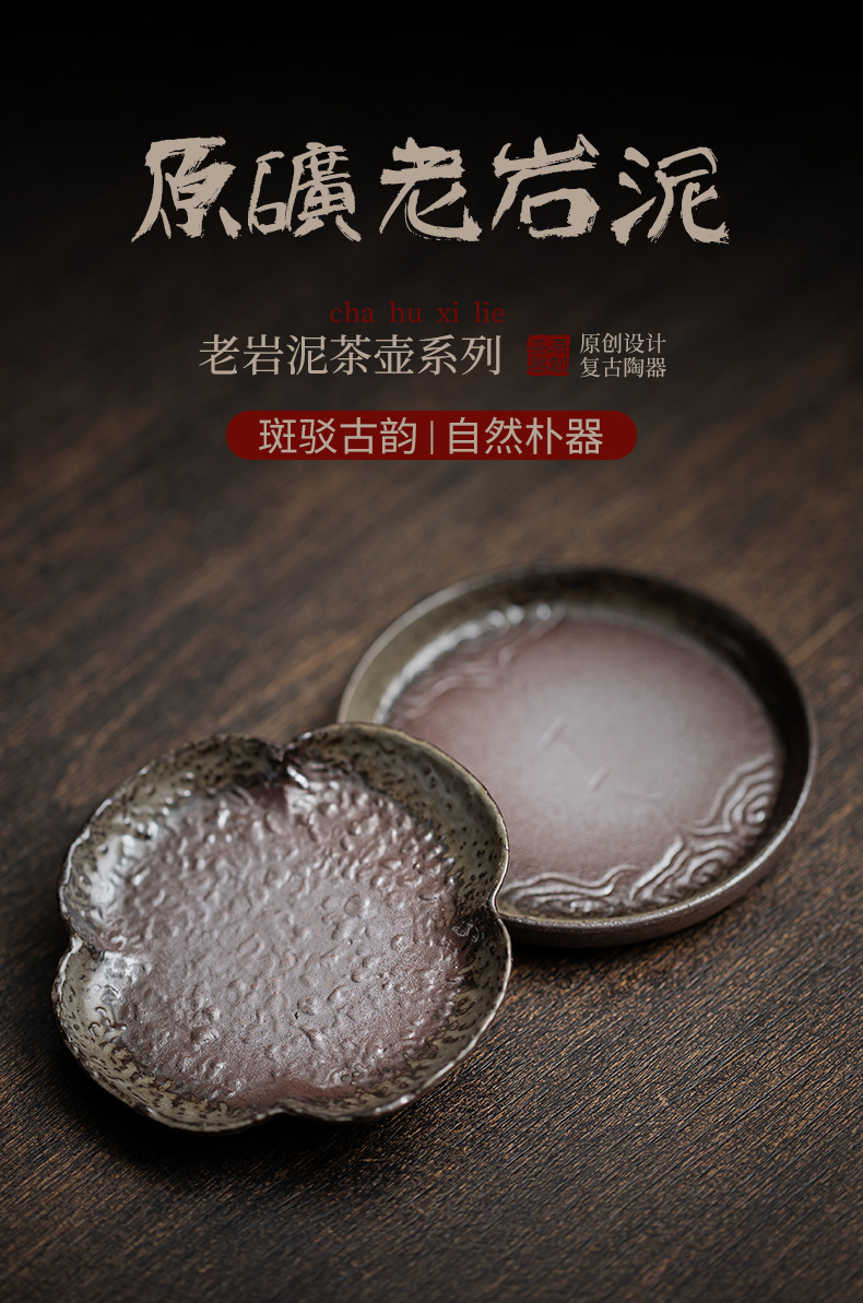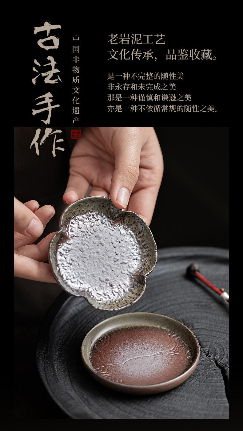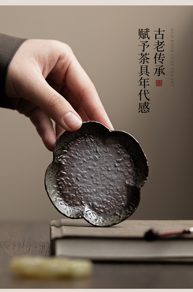 - Lót cốc cỏ bốn lá bùn đá cũ lót ly cách nhiệt đựng cốc nhỏ cổ điển thủ công lót ly đĩa gốm sứ Kung Fu phụ kiện trà