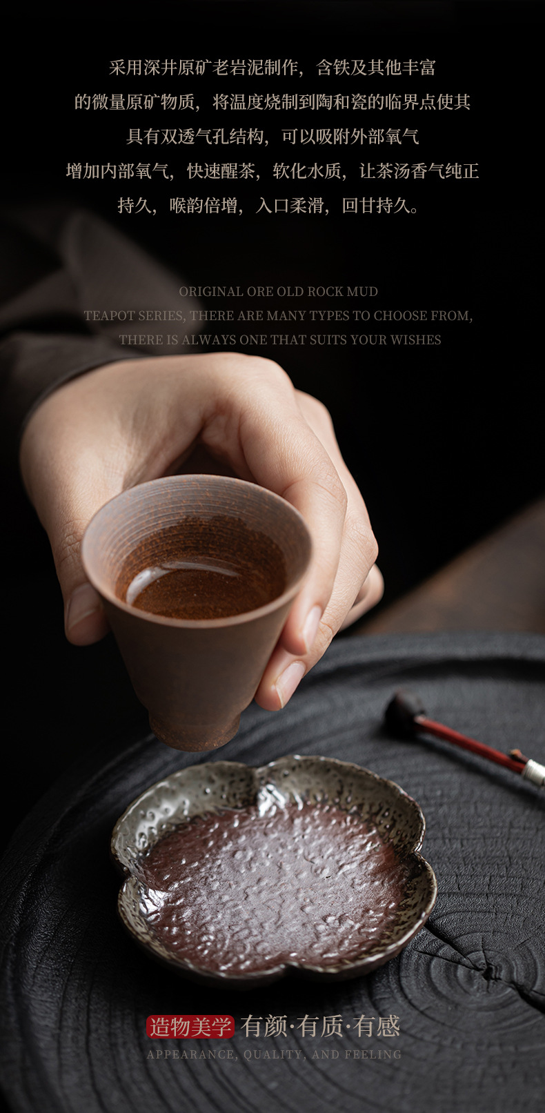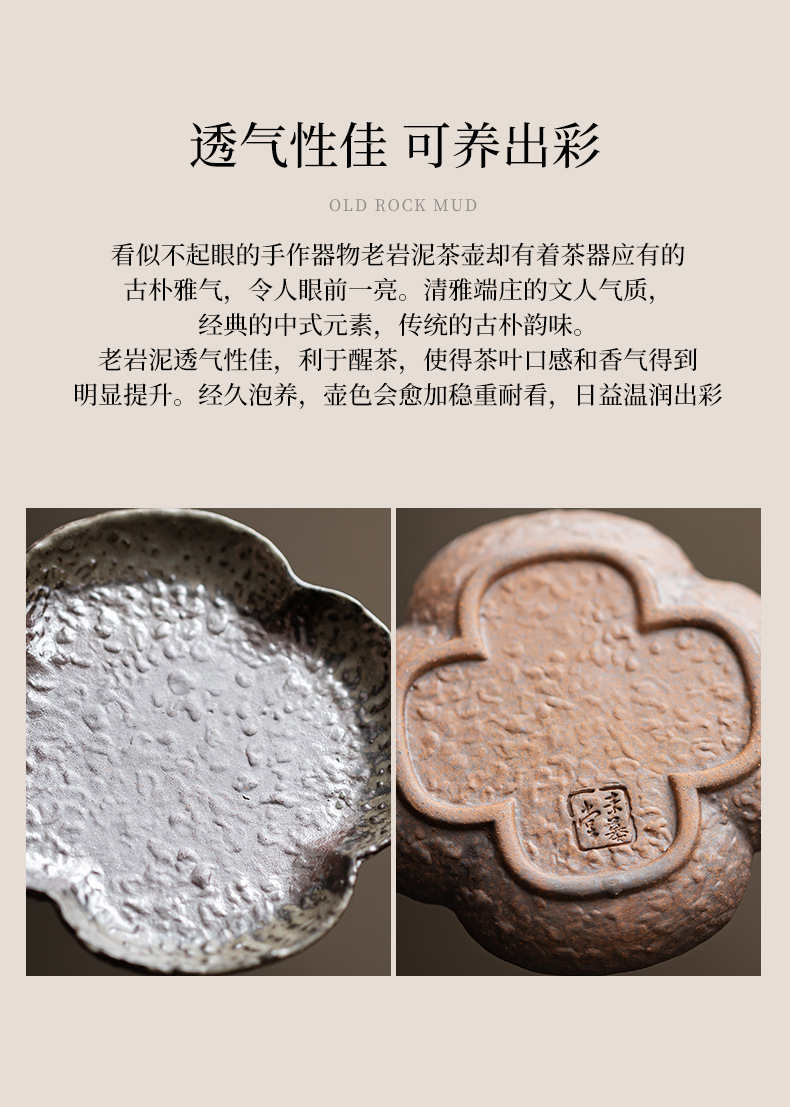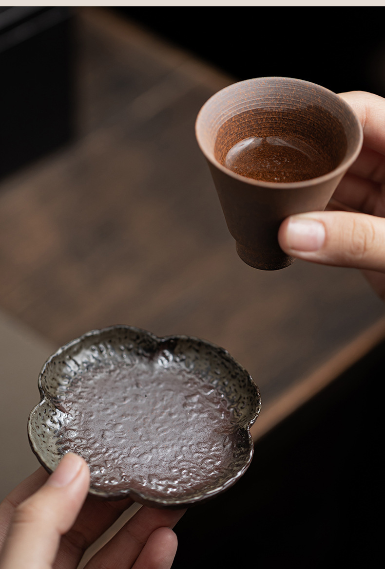 - Lót cốc cỏ bốn lá bùn đá cũ lót ly cách nhiệt đựng cốc nhỏ cổ điển thủ công lót ly đĩa gốm sứ Kung Fu phụ kiện trà