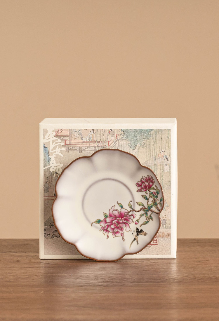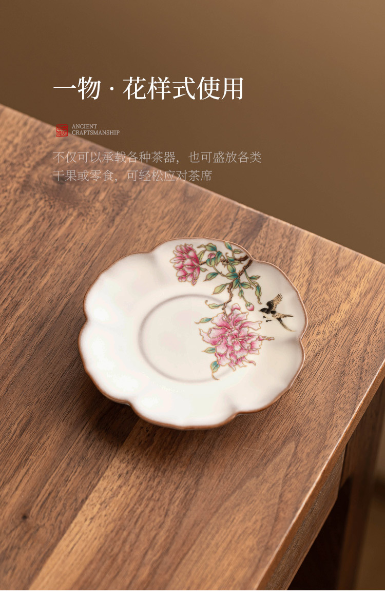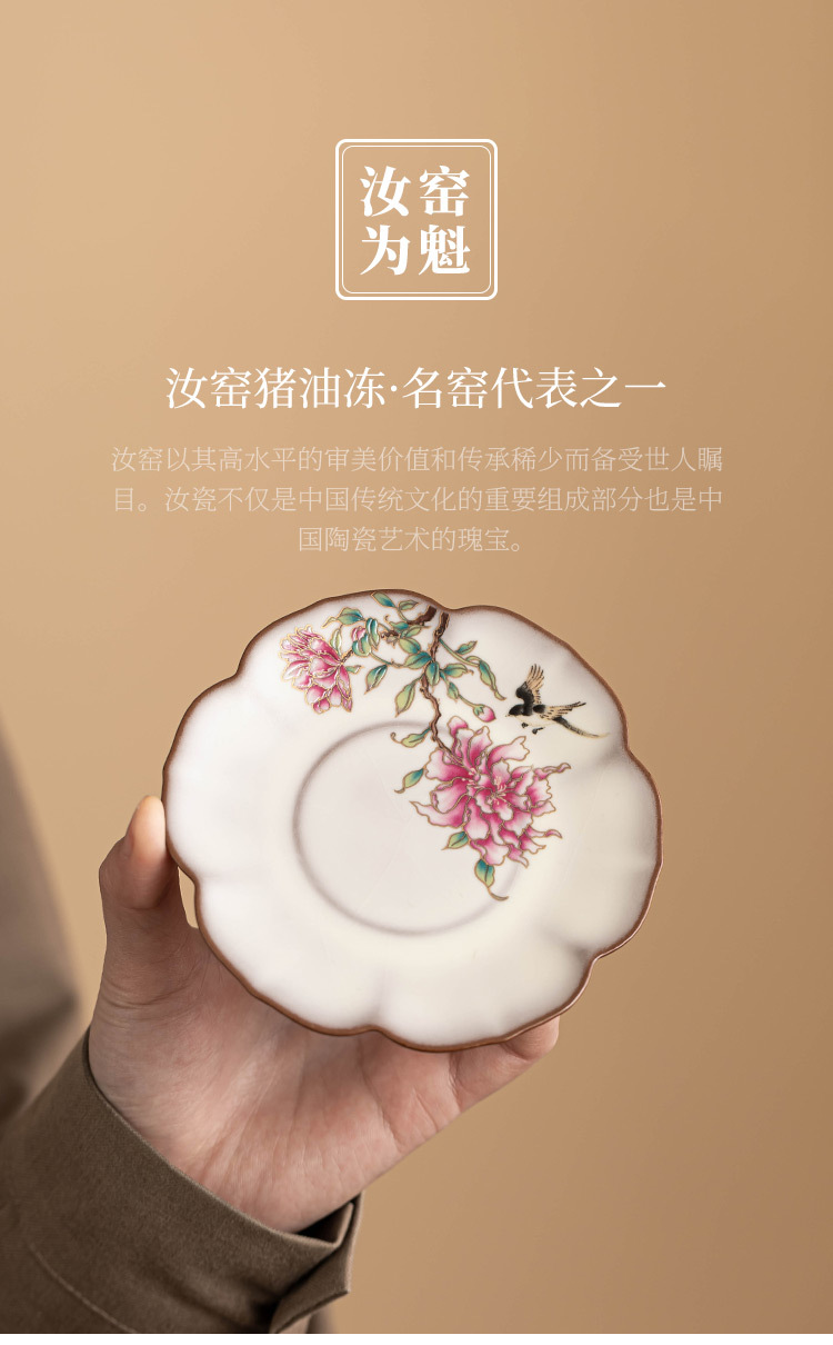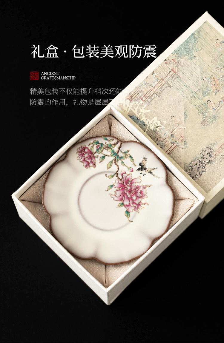 Lót cốc miệng hoa Ru Lò, thạch mỡ lợn, hoa mẫu đơn, tấm cách nhiệt chống trượt, cốc trà sứ Ru tinh tế, phụ kiện trà đạo, tấm trà