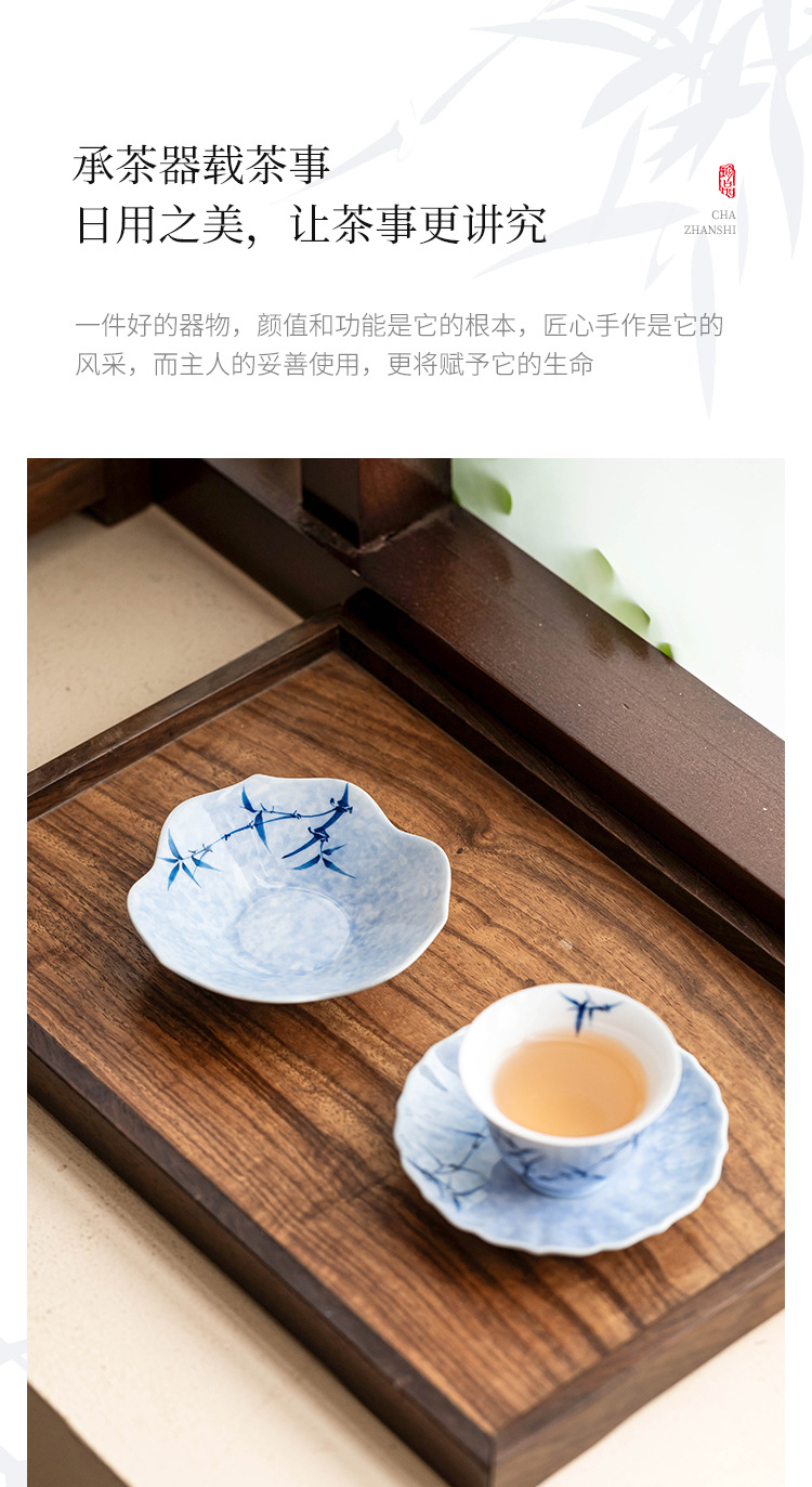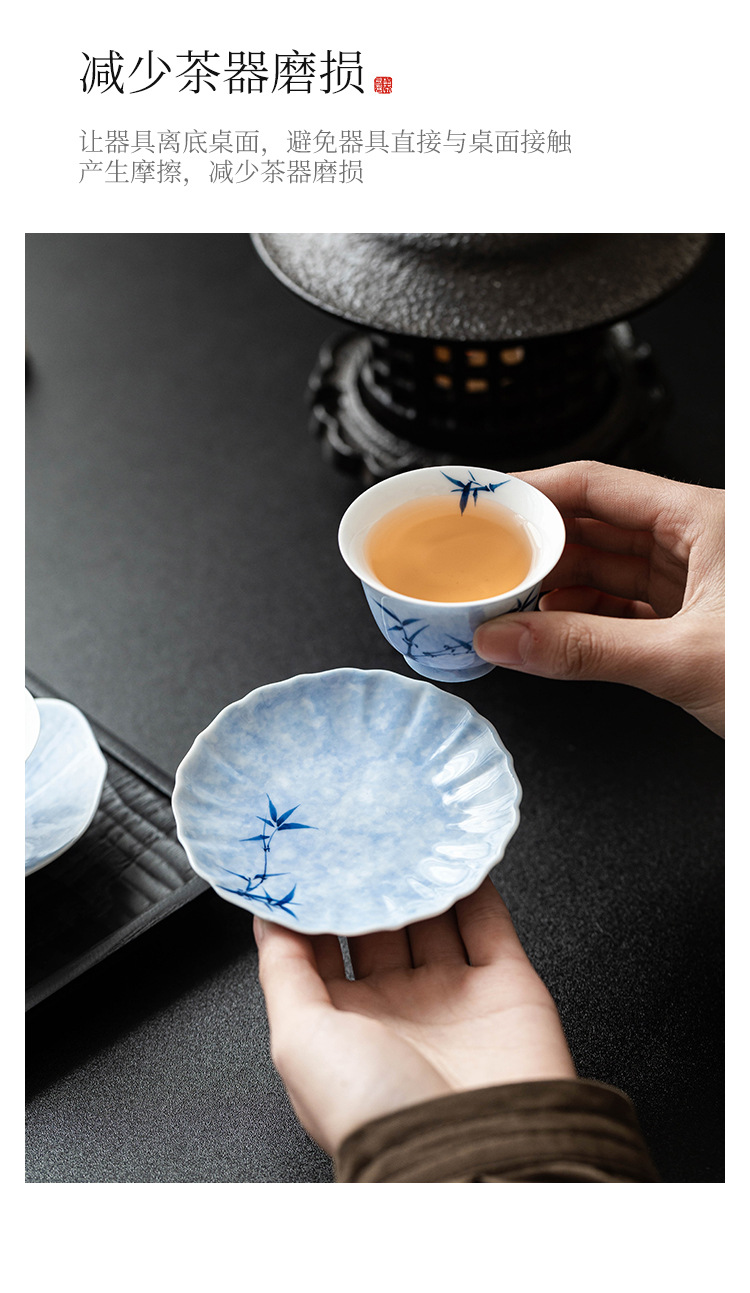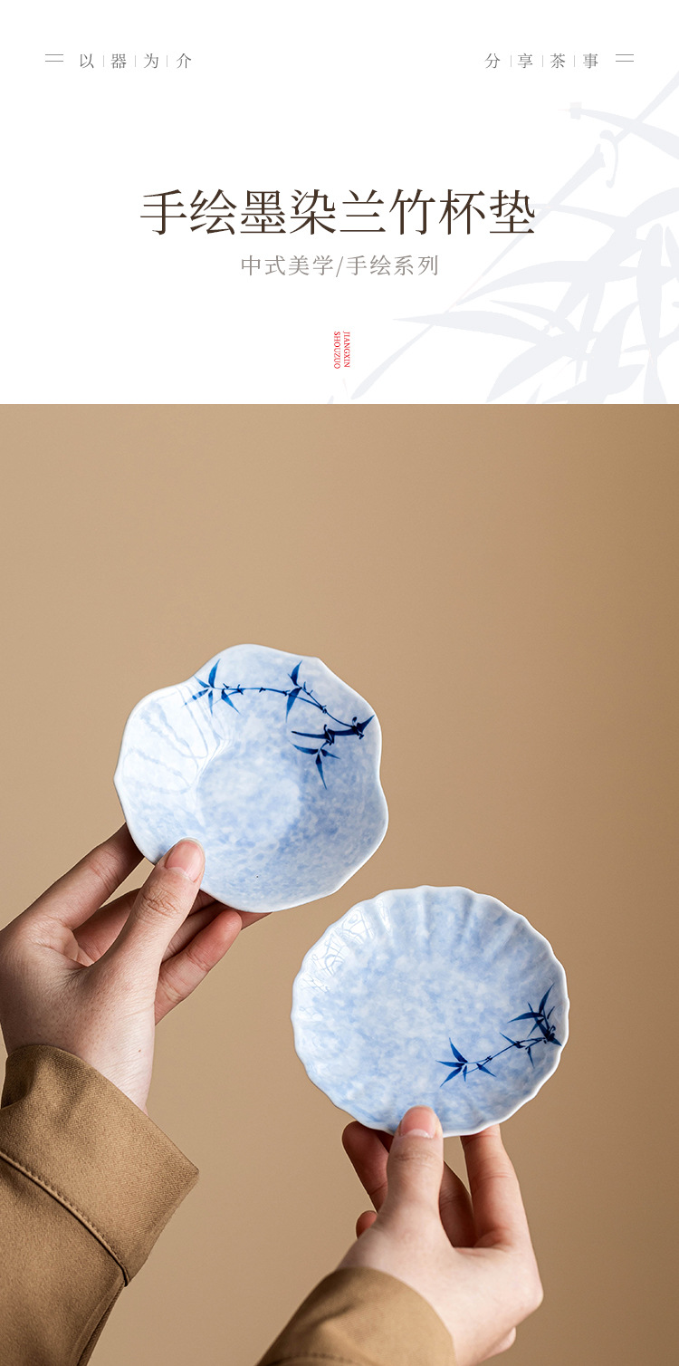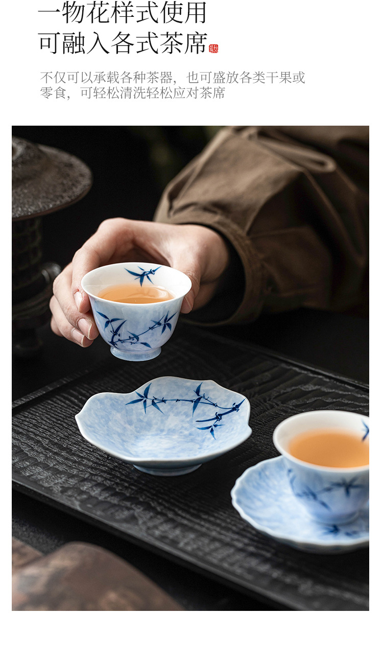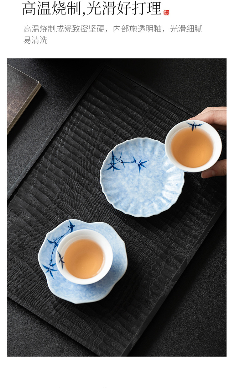 - Lót cốc miệng hoa tre mực vẽ tay, lót cách nhiệt chống trượt, khay đựng cốc gốm sứ gia dụng, khay trà, phụ kiện trà đạo Kung Fu, khay giải khát