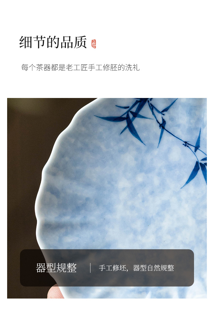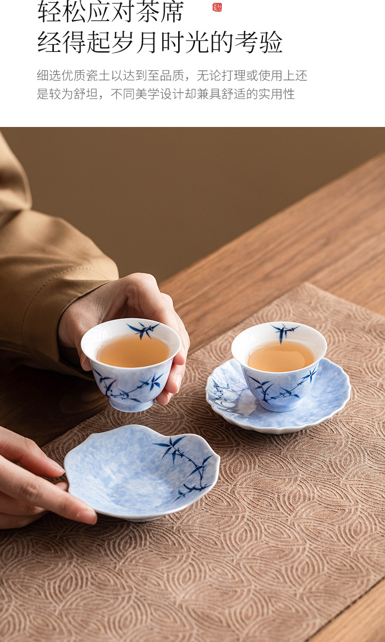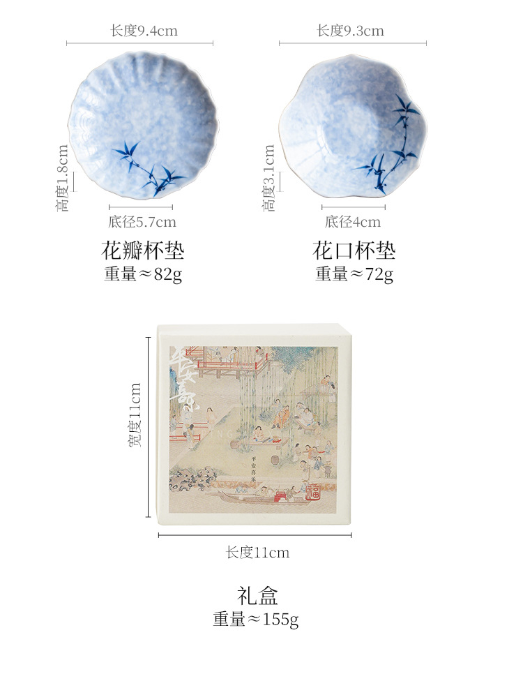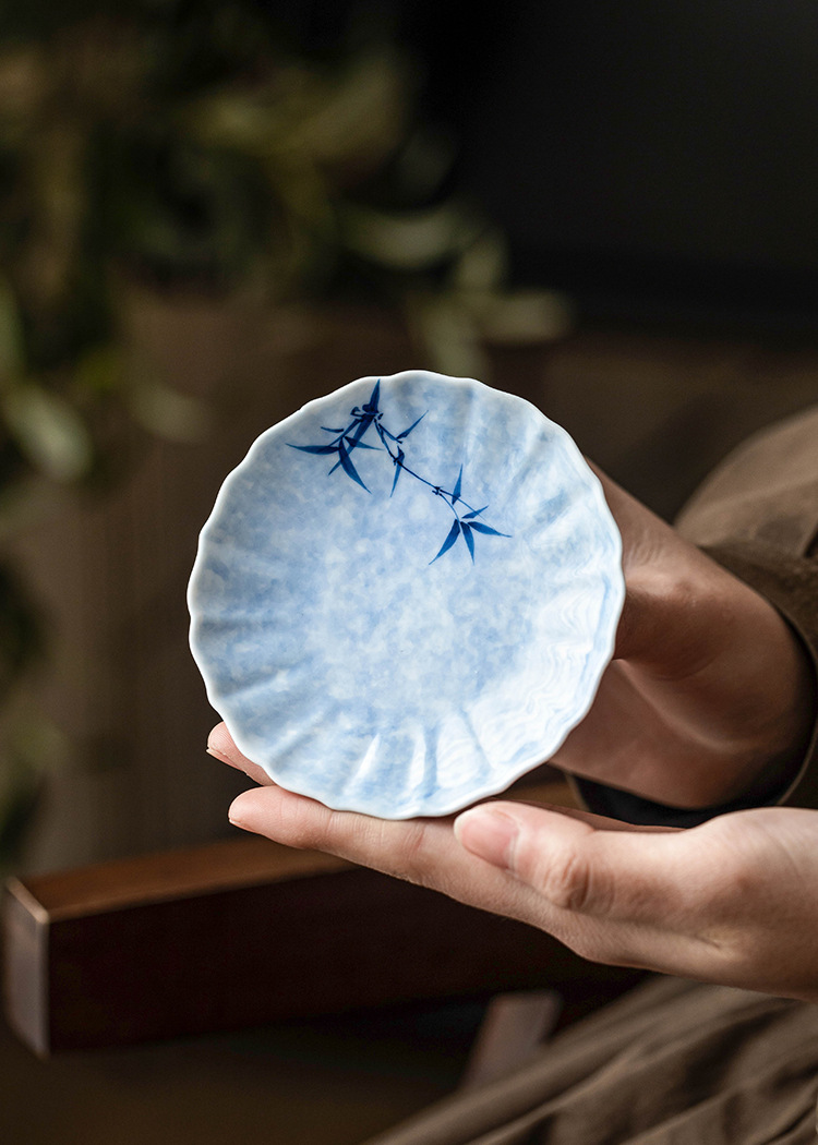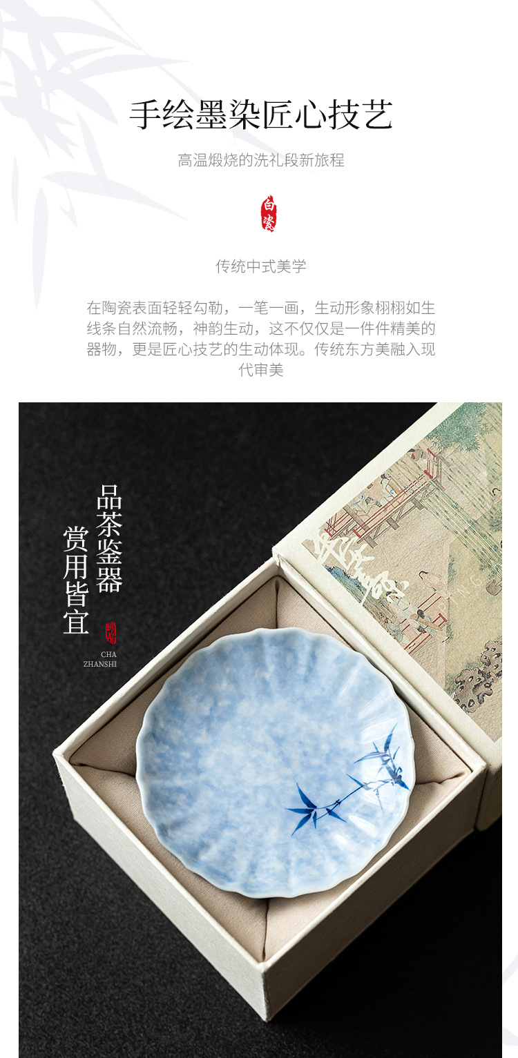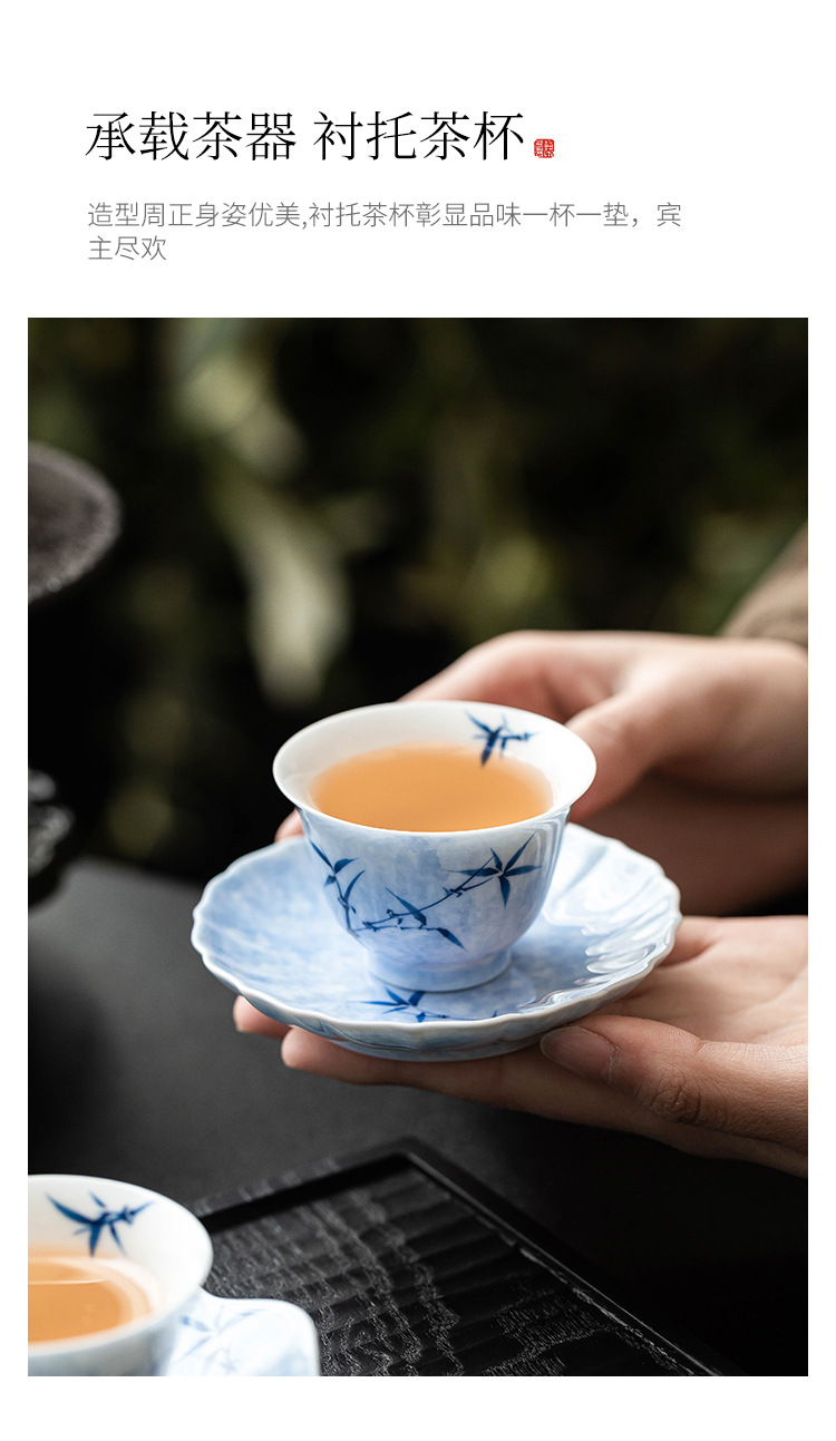 - Lót cốc miệng hoa tre mực vẽ tay, lót cách nhiệt chống trượt, khay đựng cốc gốm sứ gia dụng, khay trà, phụ kiện trà đạo Kung Fu, khay giải khát