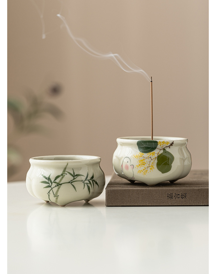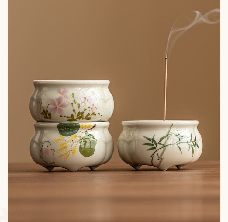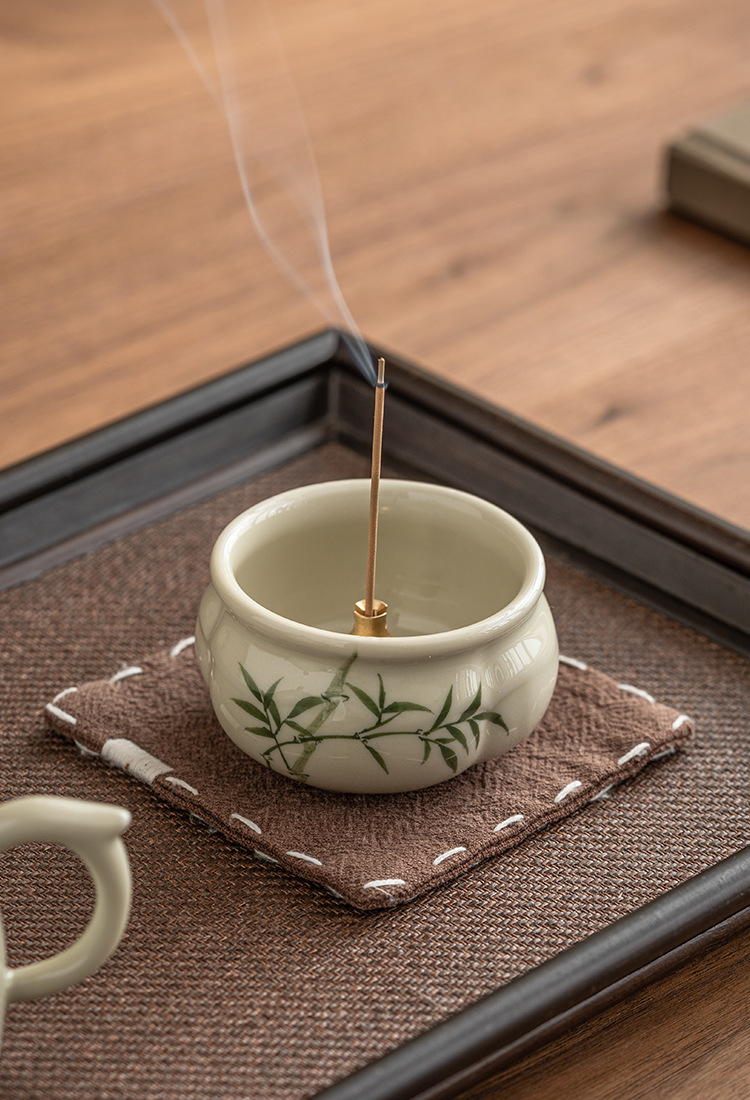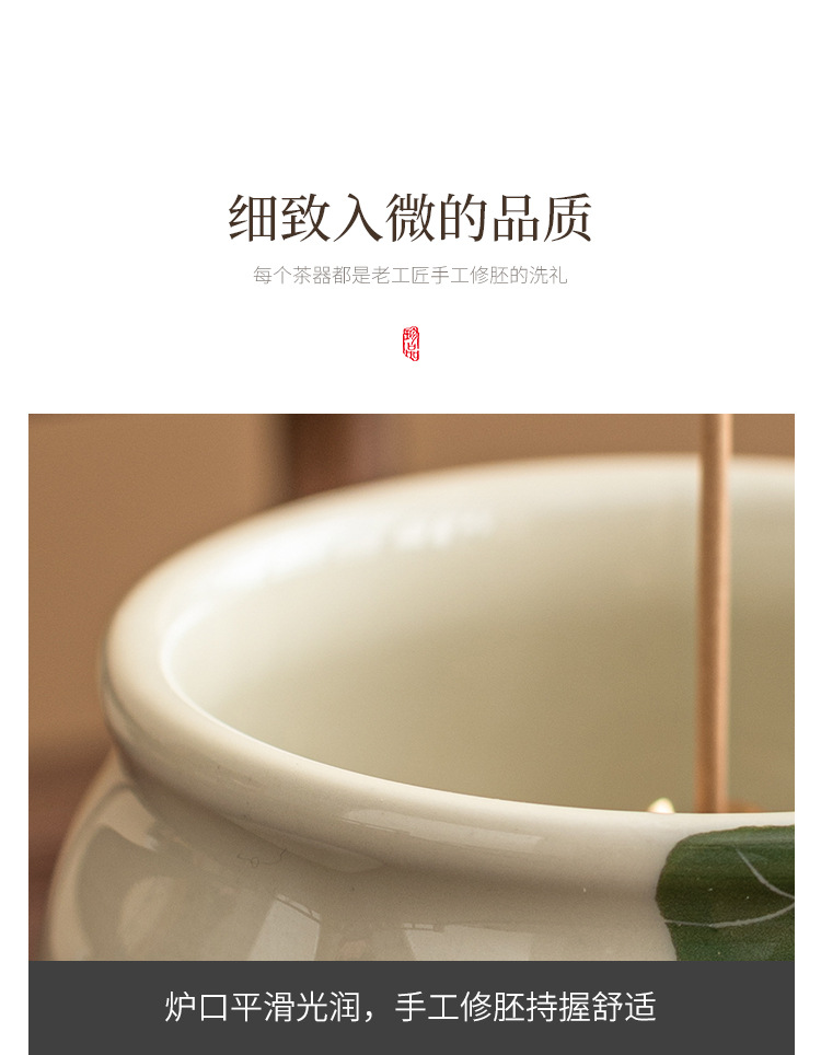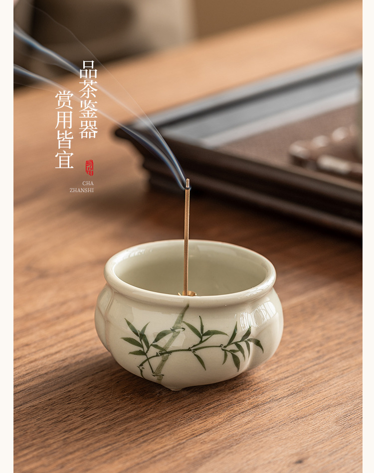 - Lư hương ba chân măng xanh ngọc gia dụng Bộ trà Thiền kiểu Trung Quốc Lư hương gốm sứ phụ kiện trà đạo