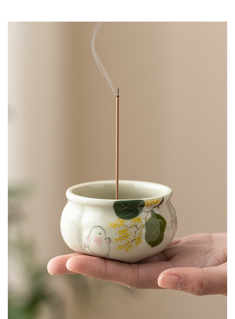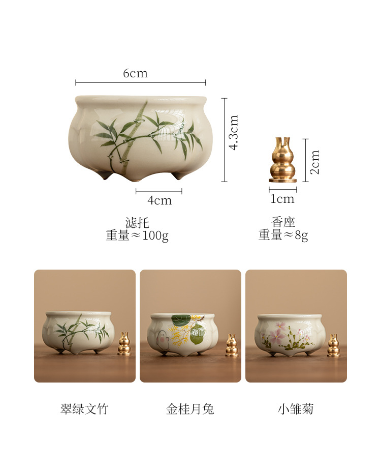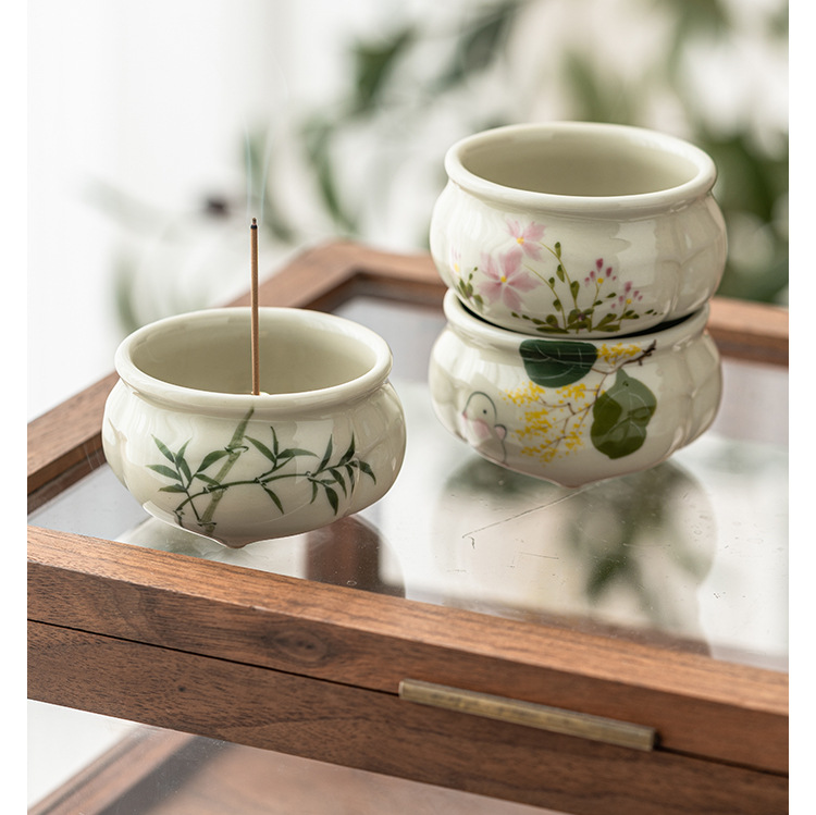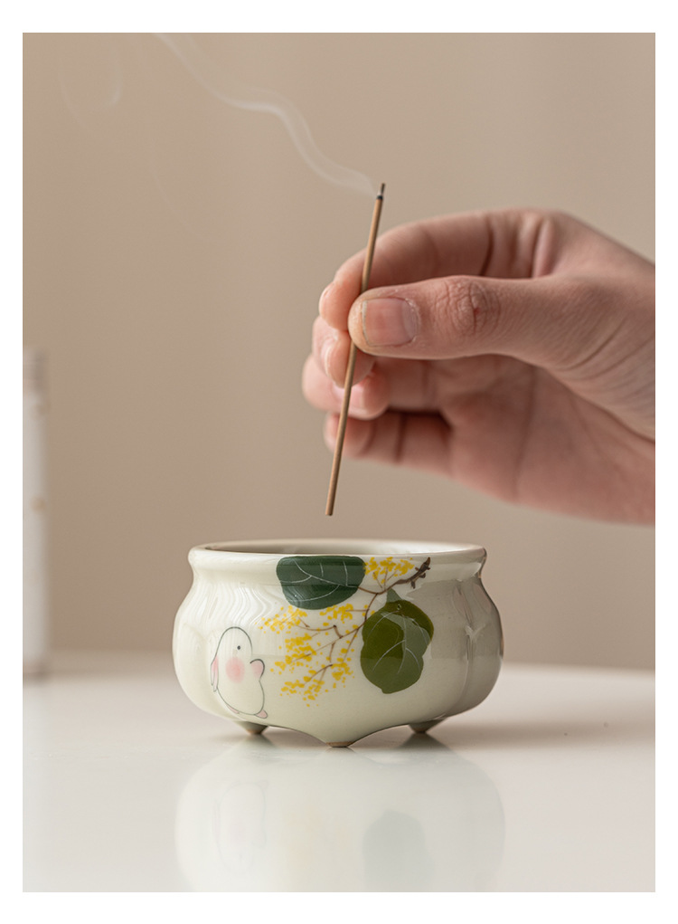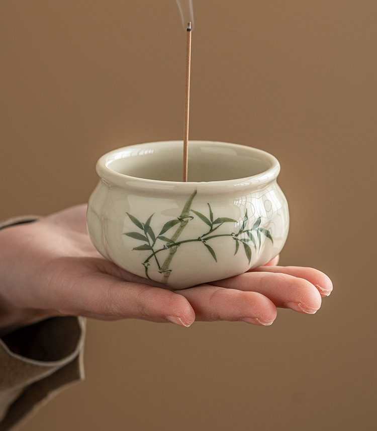 - Lư hương ba chân măng xanh ngọc gia dụng Bộ trà Thiền kiểu Trung Quốc Lư hương gốm sứ phụ kiện trà đạo