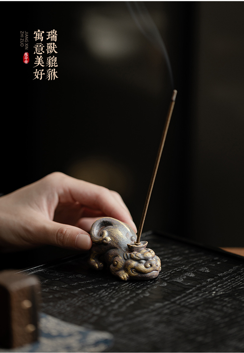 Lư hương đất đá cũ, lư hương gốm sứ kiểu Trung Quốc, lư hương, đồ trang trí trà đạo, phụ kiện trang trí để bàn