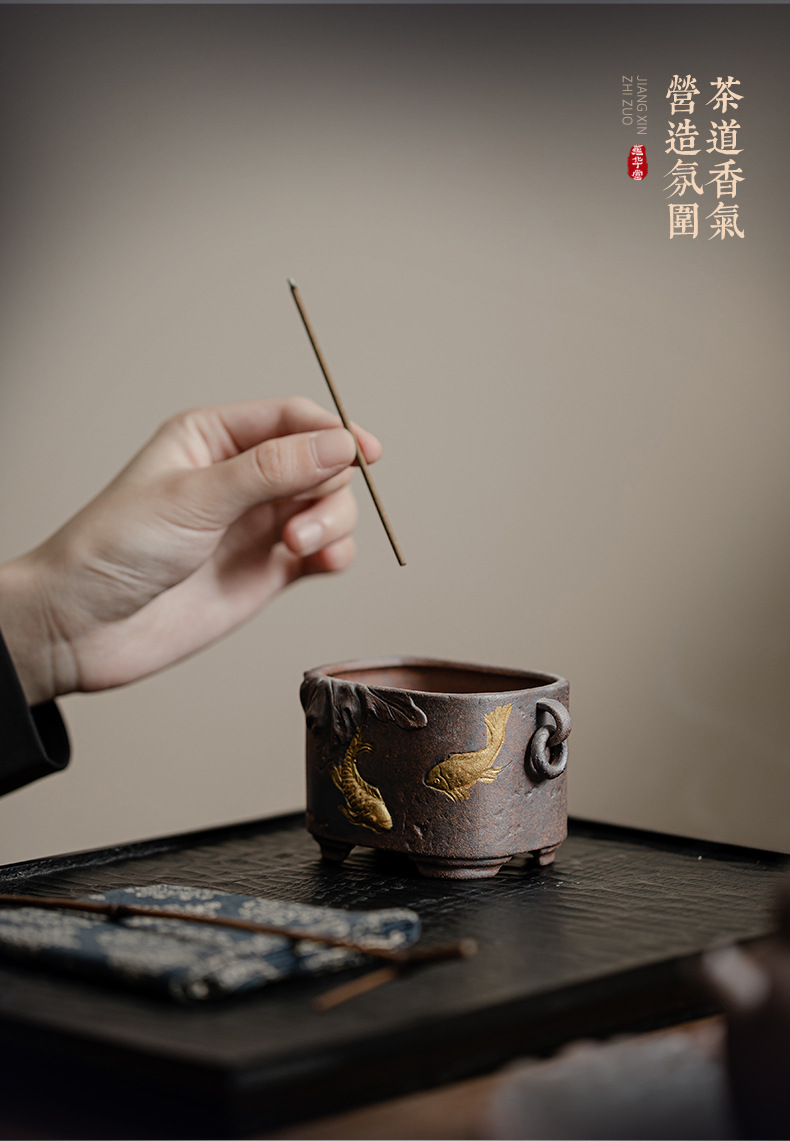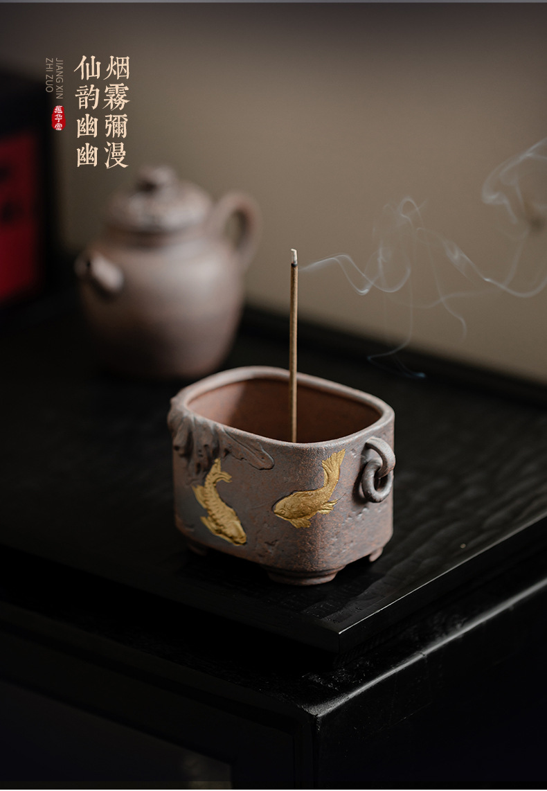 Lư hương Koi, lư hương kiểu Trung Quốc, lư hương bốn chân, lư hương, đồ trang trí để bàn phòng khách gia dụng, phụ kiện bộ trà Kung Fu