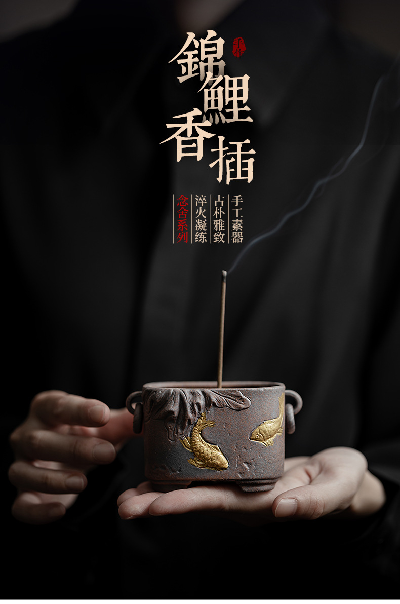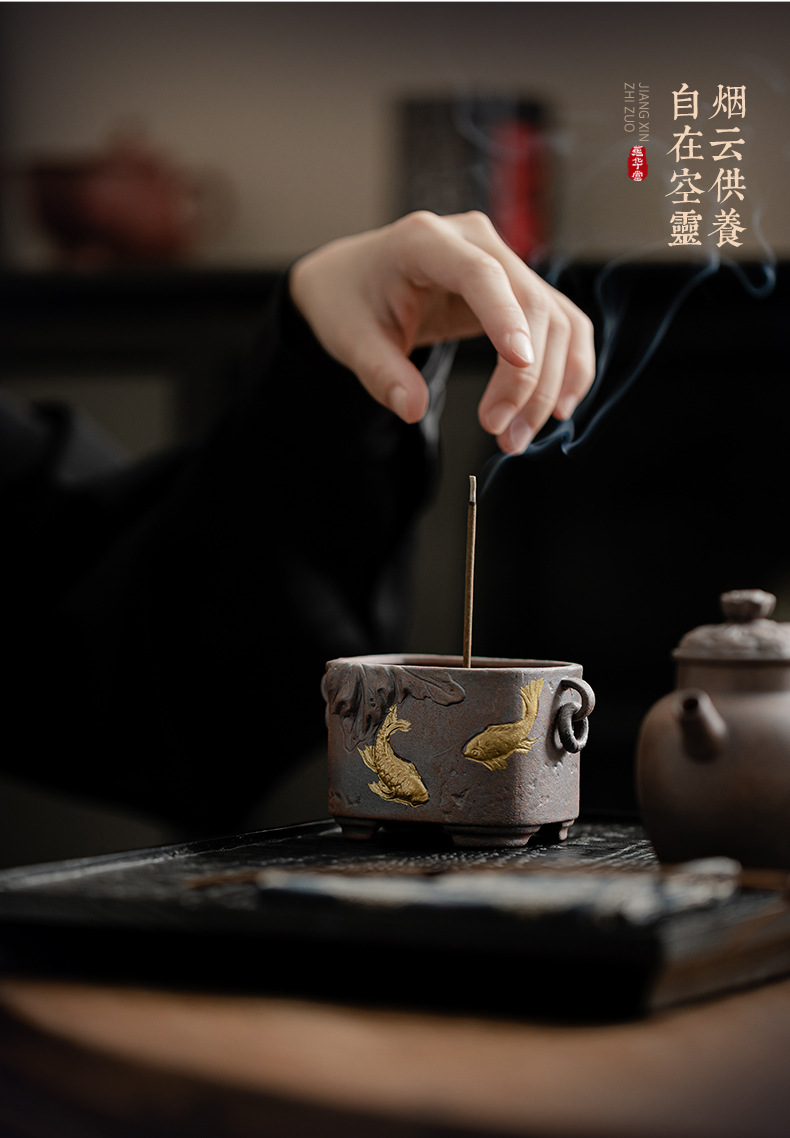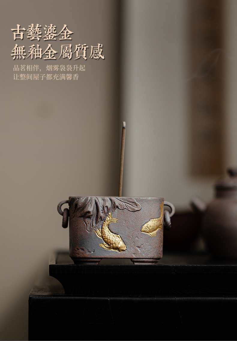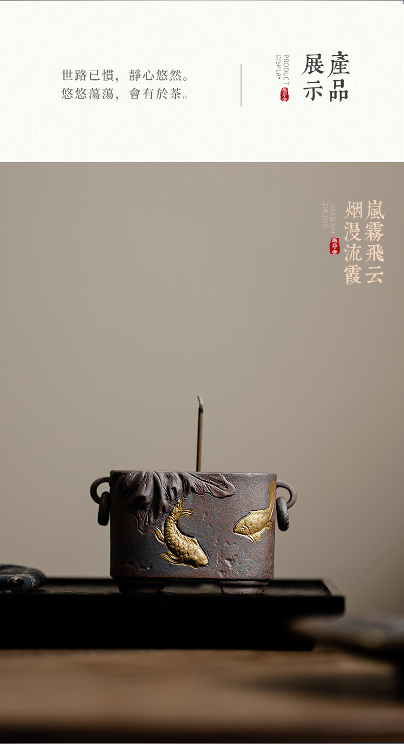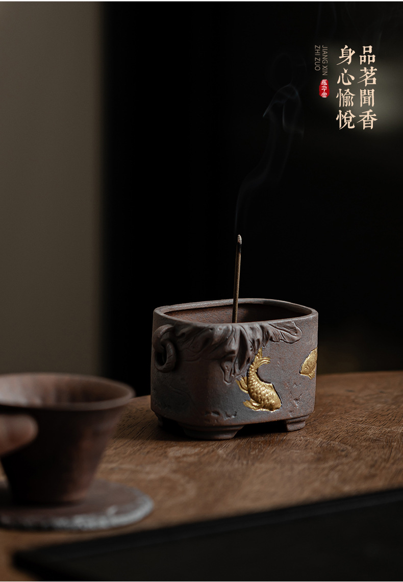- Lư hương Koi, lư hương kiểu Trung Quốc, lư hương bốn chân, lư hương, đồ trang trí để bàn phòng khách gia dụng, phụ kiện bộ trà Kung Fu