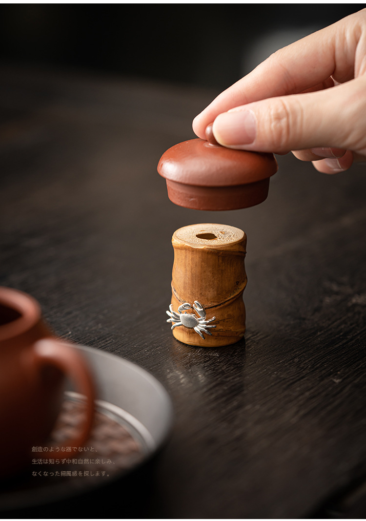 Luo Han tre gốc tre Nắp ấm nắp ấm trà nắp nhỏ màu bạc bàn trà cao cấp đồ trang trí cao cấp