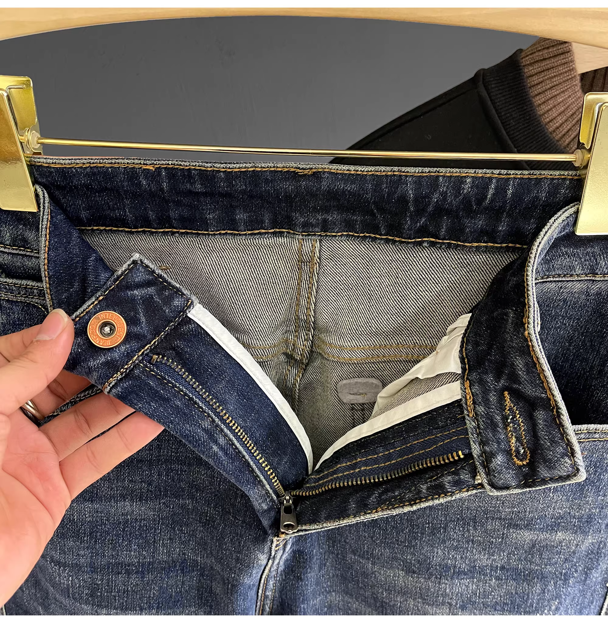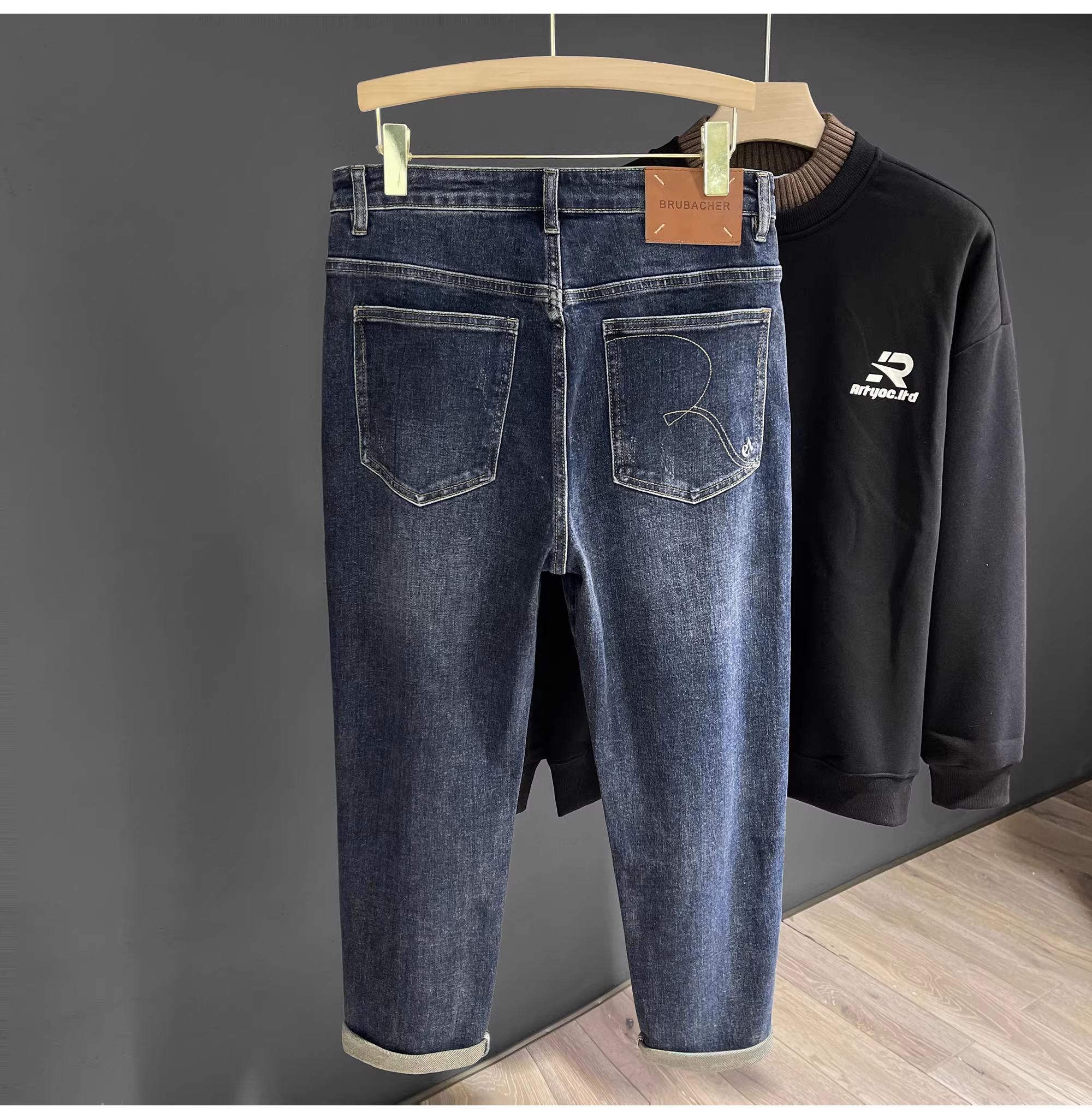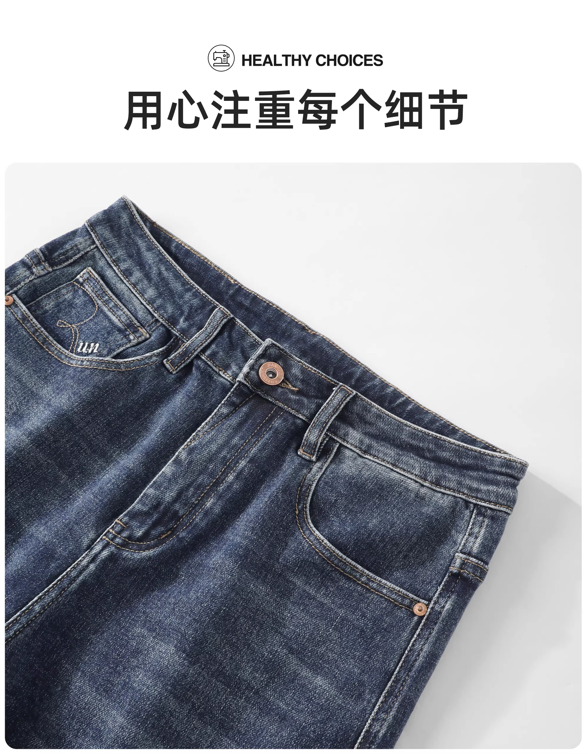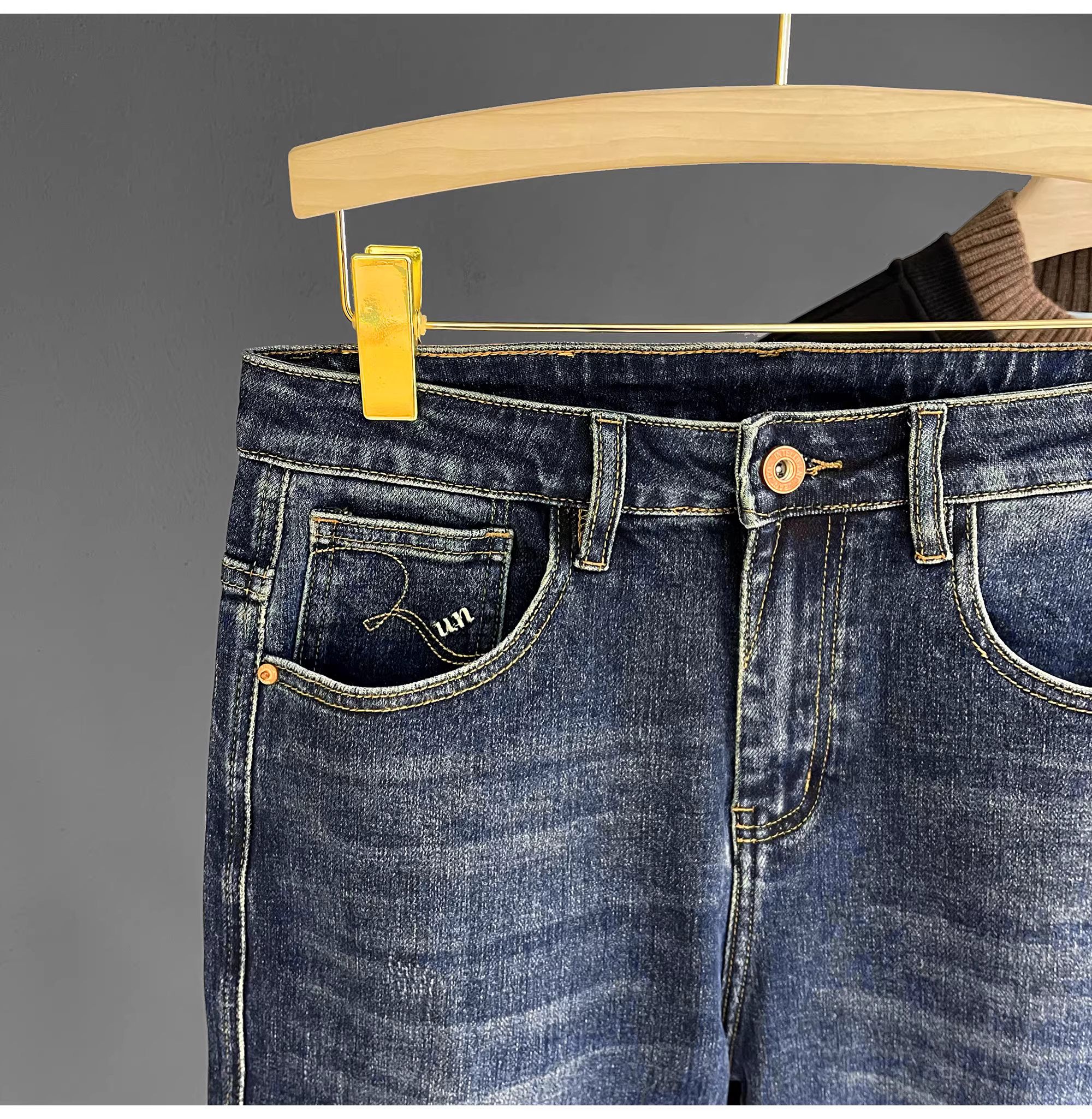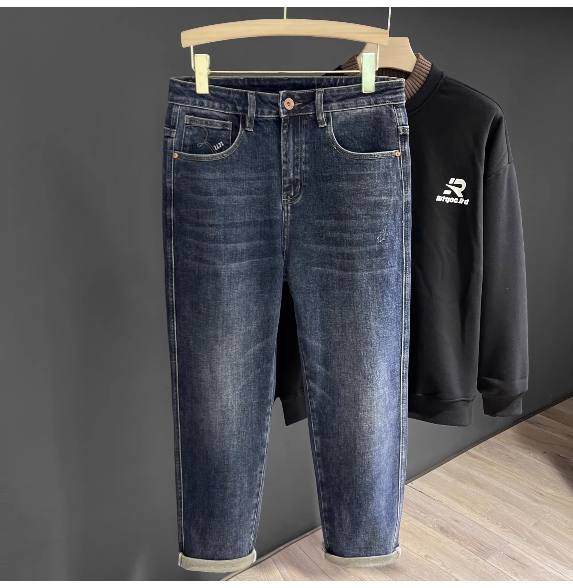 - LUUD Mùa Thu Mới Giặt Cotton Feel Thẳng Quần Âu Nam Đơn Giản Đa Năng Quần Jean Thêu Màu Xanh