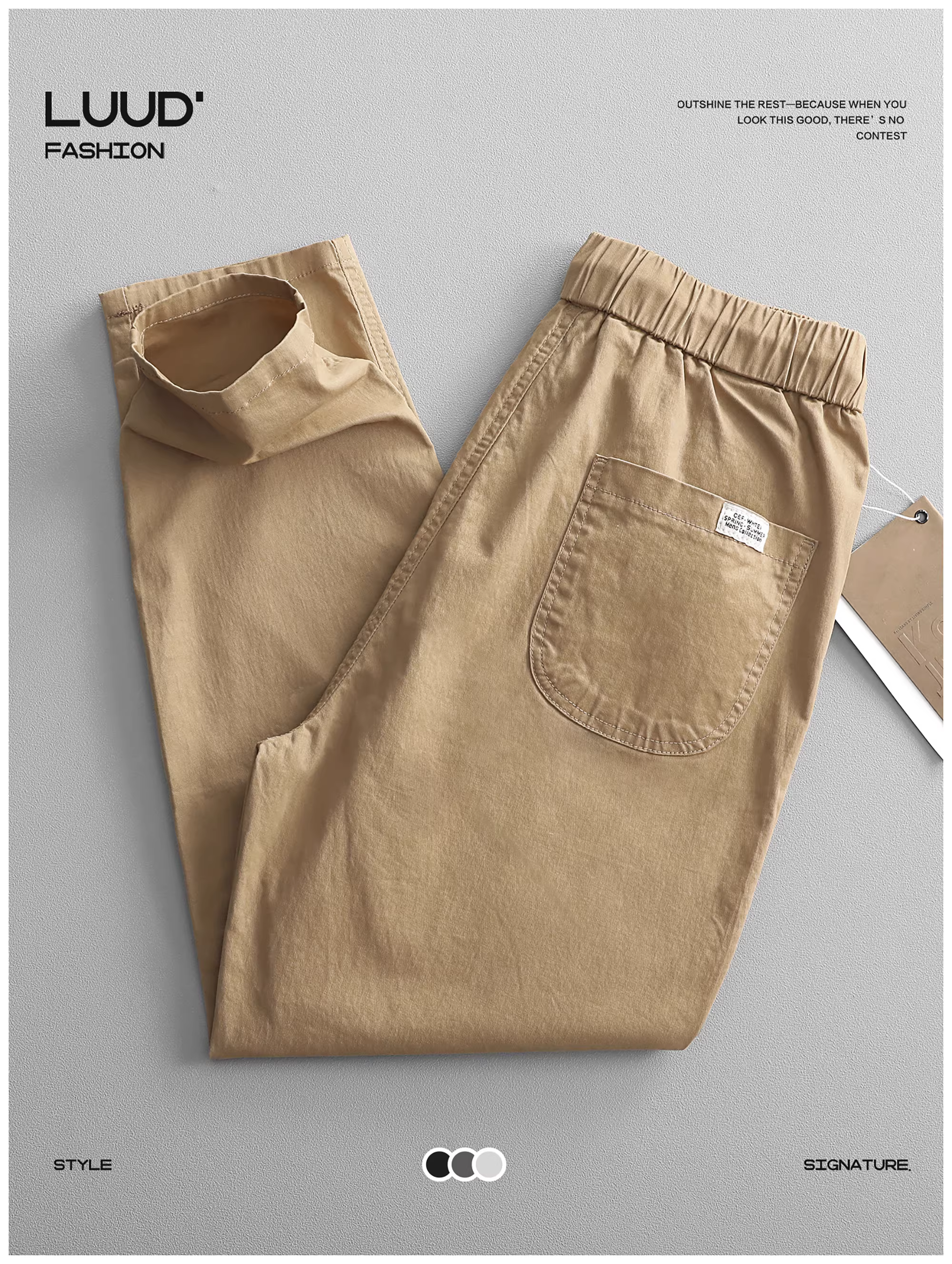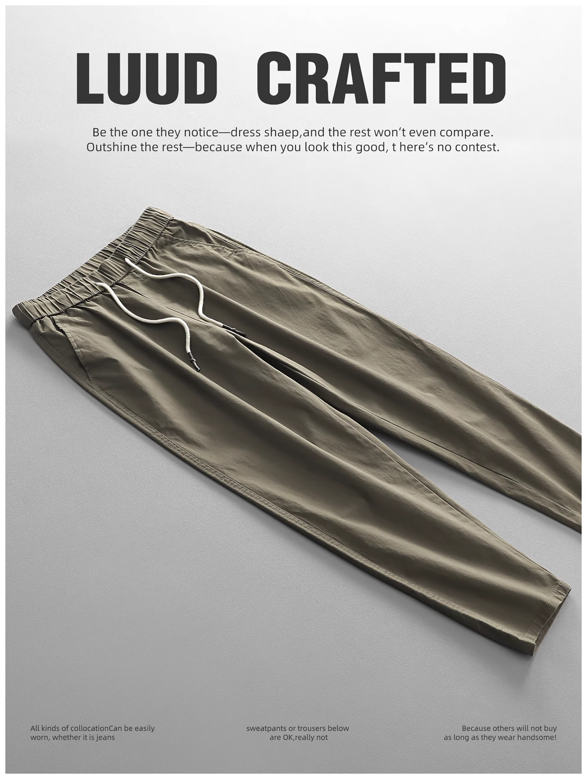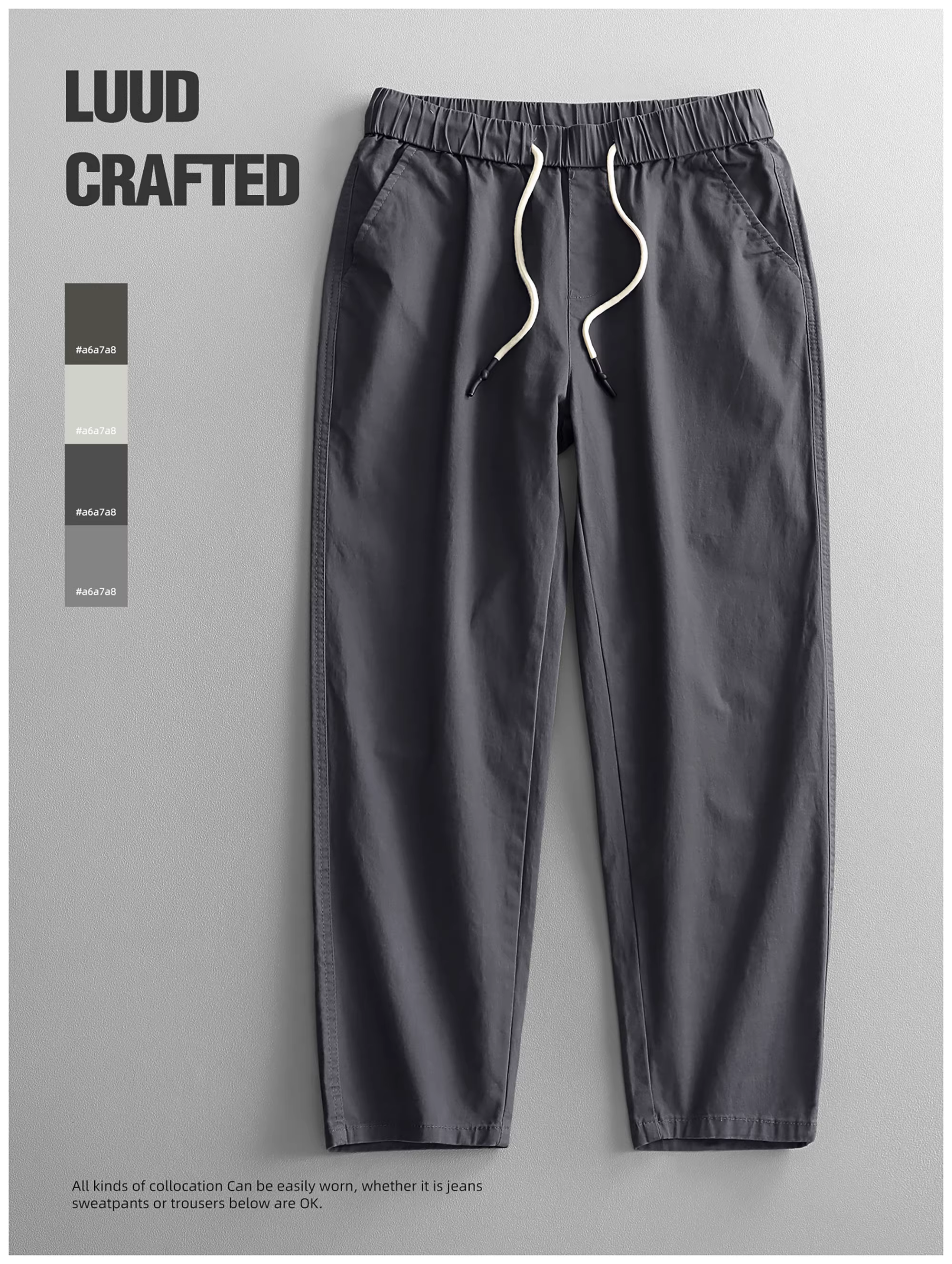 - LUUD Quần cotton thân thiện với da phong cách Nhật Bản dành cho nam giới thương hiệu thời trang đa năng quần ống côn đa năng quần công sở cổ điển có dây rút quần cắt ngắn dành cho nam