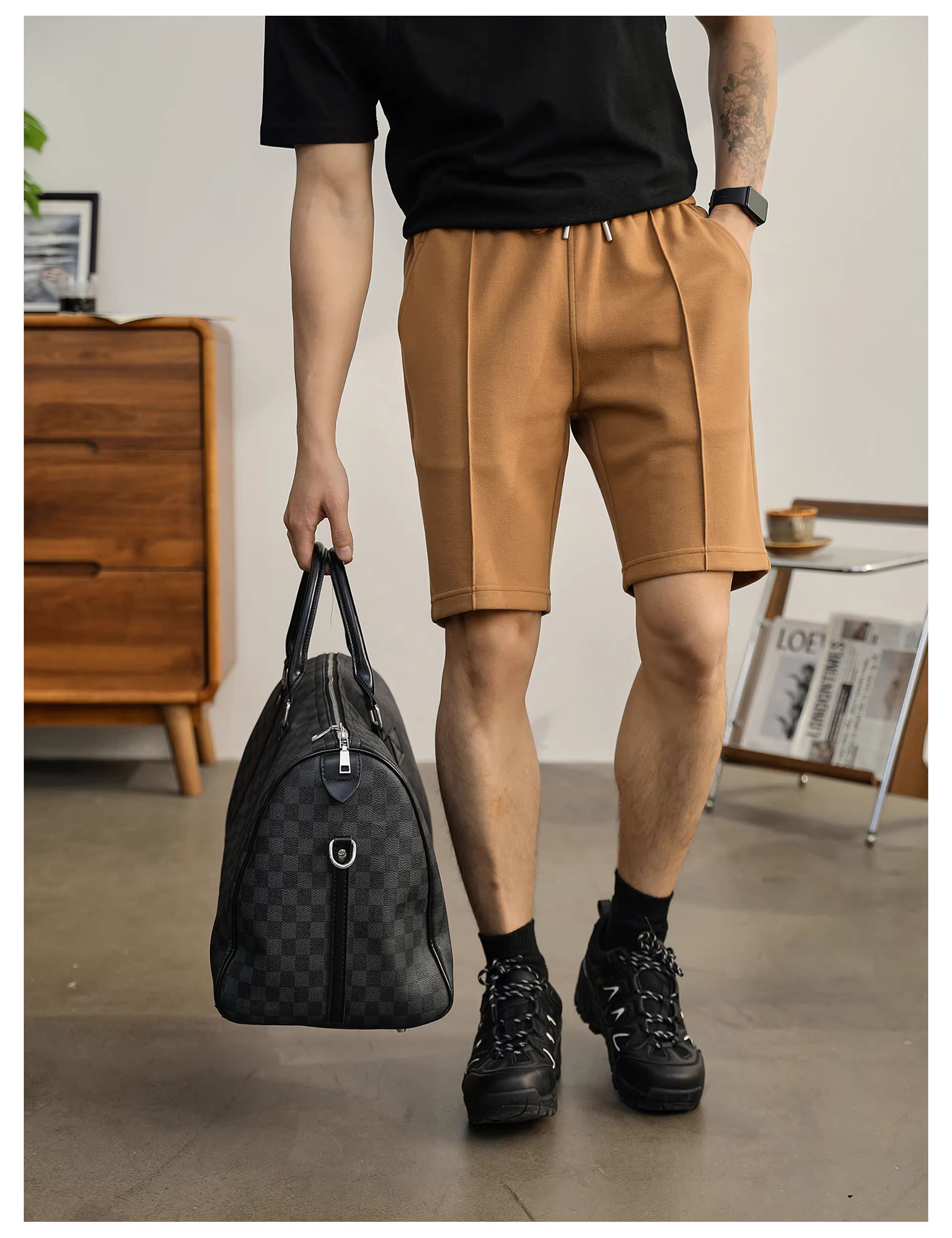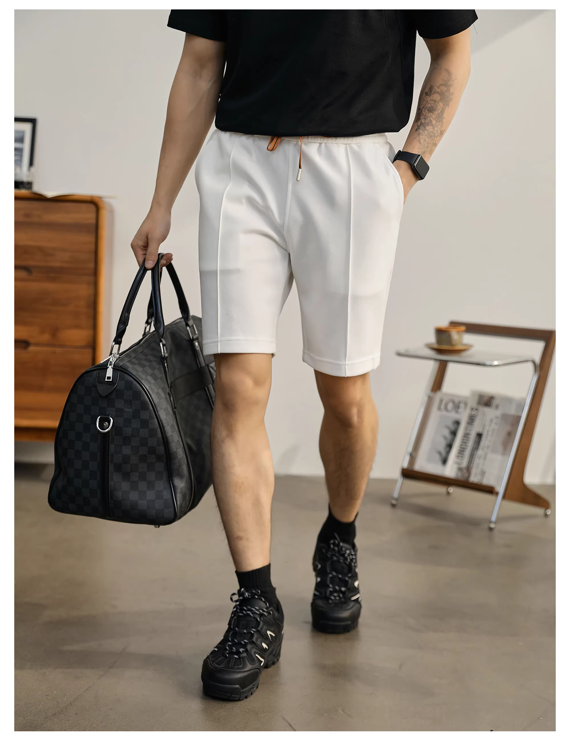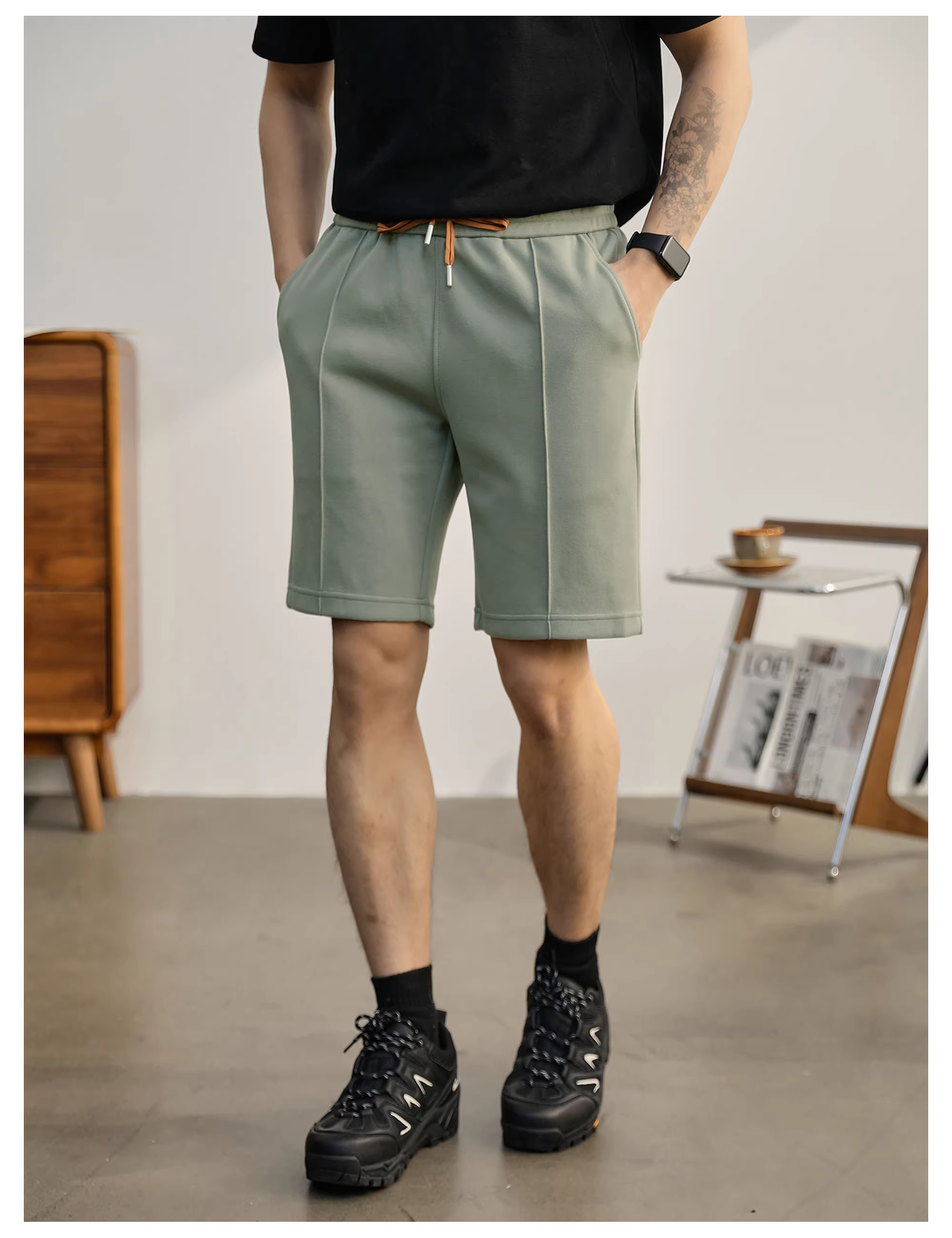 - LUUD Quần short nam thiết kế theo phong cách Nhật Bản cao cấp mùa hè quần short thẳng có dây rút thun co giãn nặng