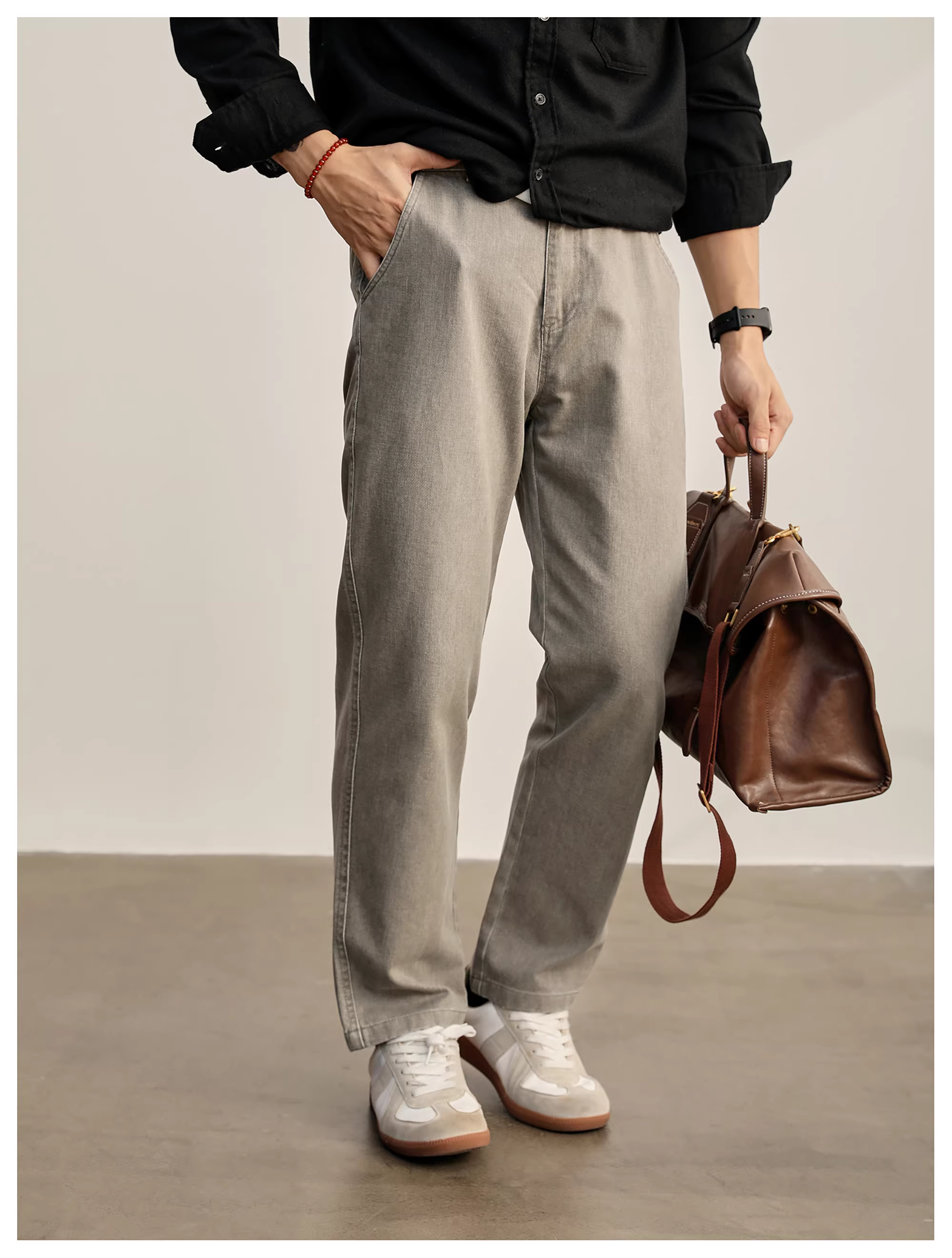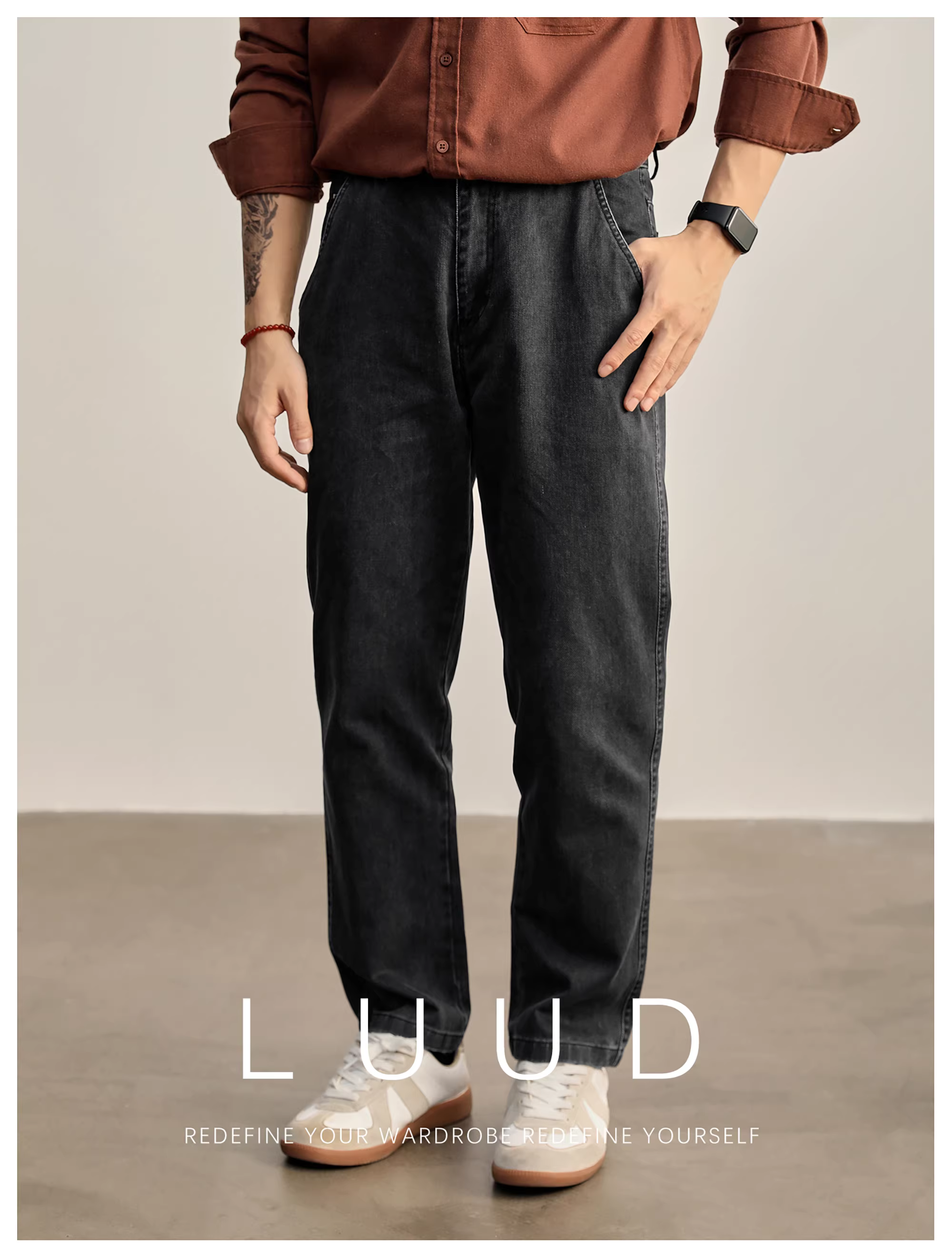 - LUUD Thu Đông Nam Thời Trang Giặt Đa Năng Quần Jean Thẳng Vintage Đau Khổ 100% Cotton Quần Dài