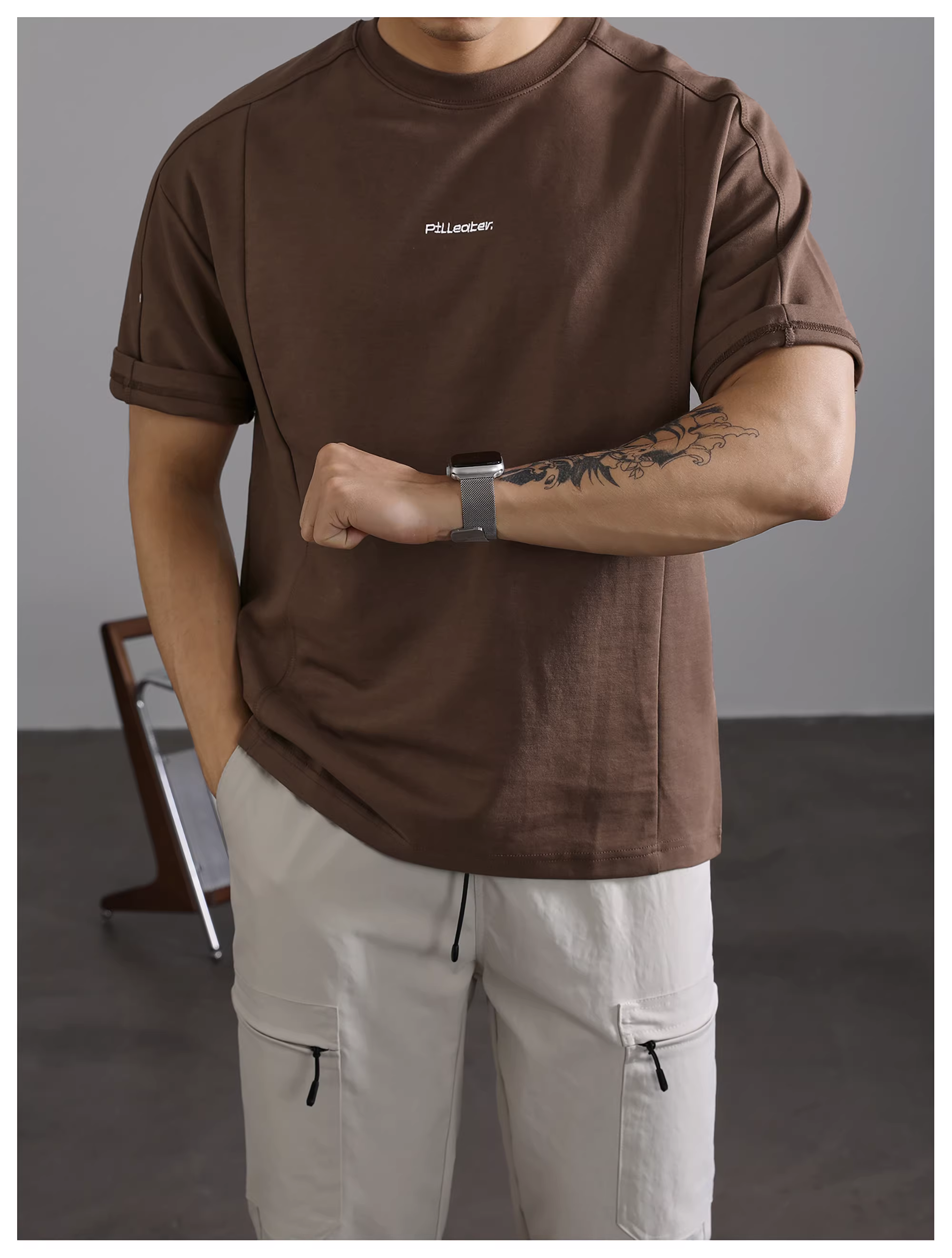 - LUUD thương hiệu hợp thời trang, sành điệu, thêu họa tiết, áo thun nam ngắn tay, chất liệu dày dặn, đa năng, mặc thường ngày, thiết kế phối màu và cổ tròn