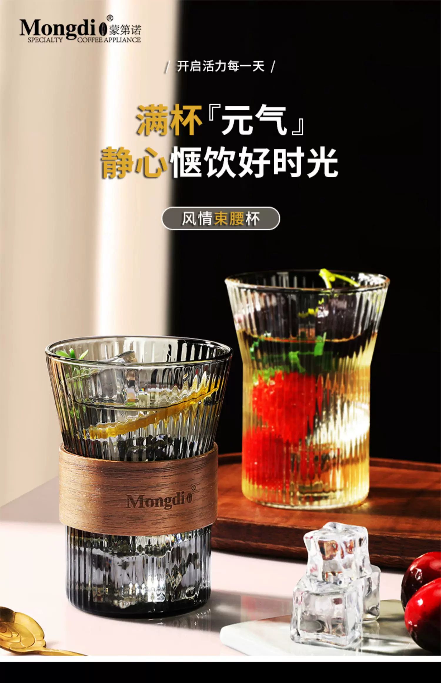 Ly cà phê Mongdio, ly đá Mỹ cao cấp, kiểu dáng tinh tế, phong cách mạng xã hội, ly latte trong suốt dùng trong gia đình