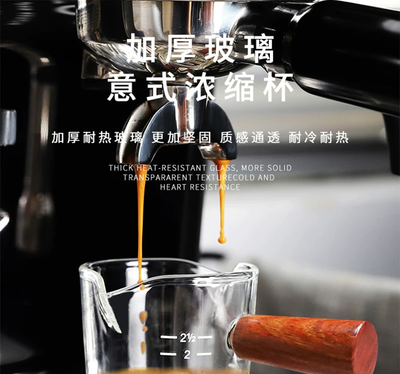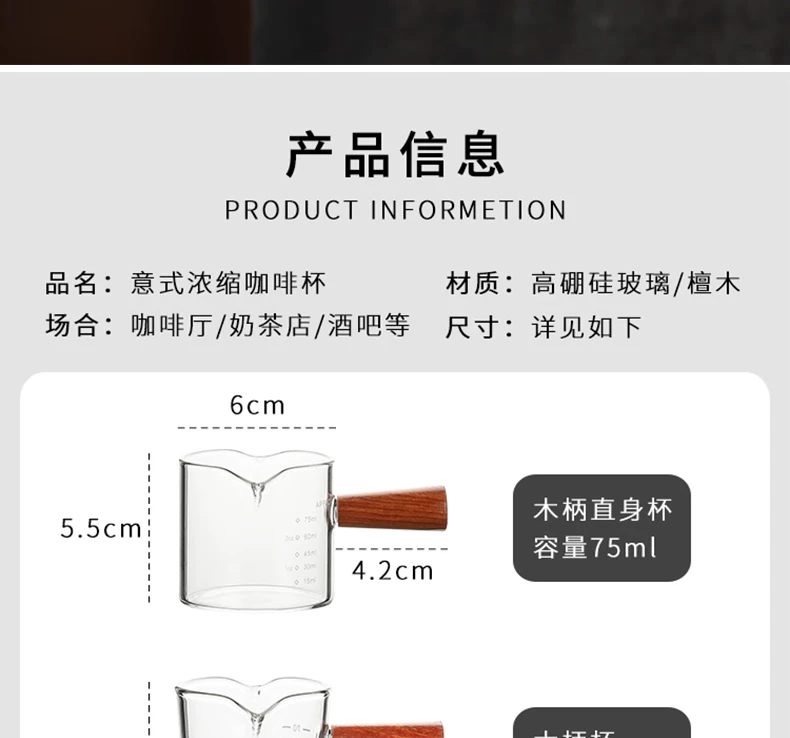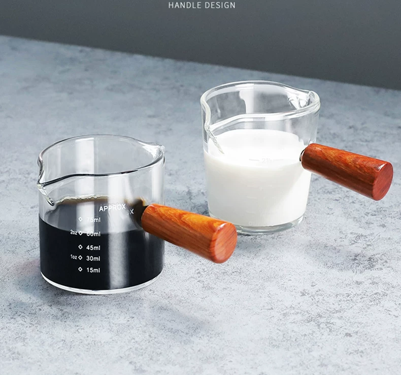 - Ly cà phê thủy tinh borosilicate cao cấp, cốc pha cà phê espresso di động có vạch chia, bình sữa có tay cầm bằng gỗ chịu nhiệt cao