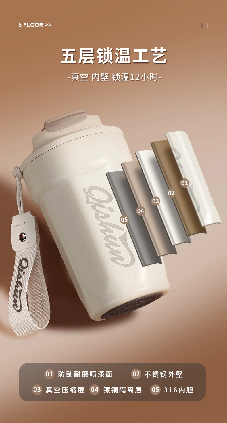 Ly giữ nhiệt cà phê Mongdio, cốc cà phê du lịch, cốc nước mang đi tiện lợi, thép không gỉ 316, mẫu mới 2025