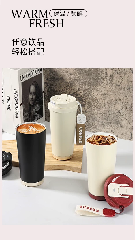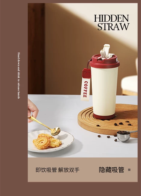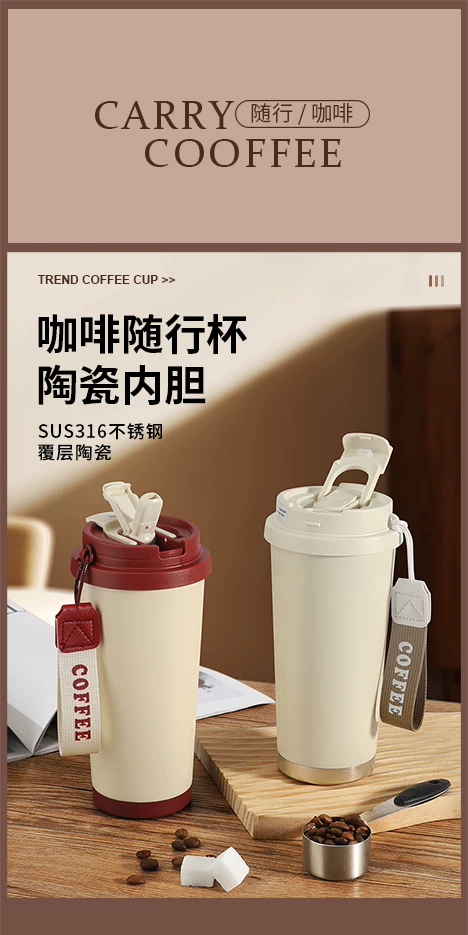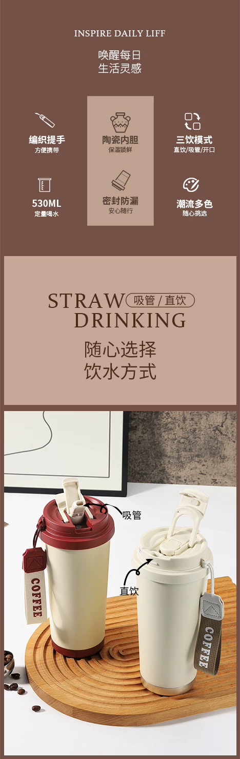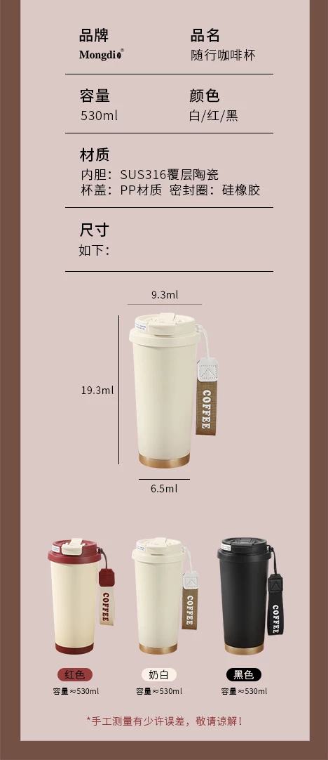 Ly giữ nhiệt Mongdio có lớp lót gốm, mẫu mới 2024, ly cà phê dành cho nữ, ly du lịch có ống hút thẩm mỹ cao