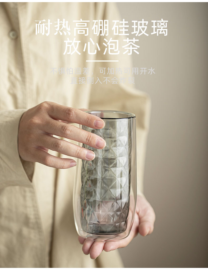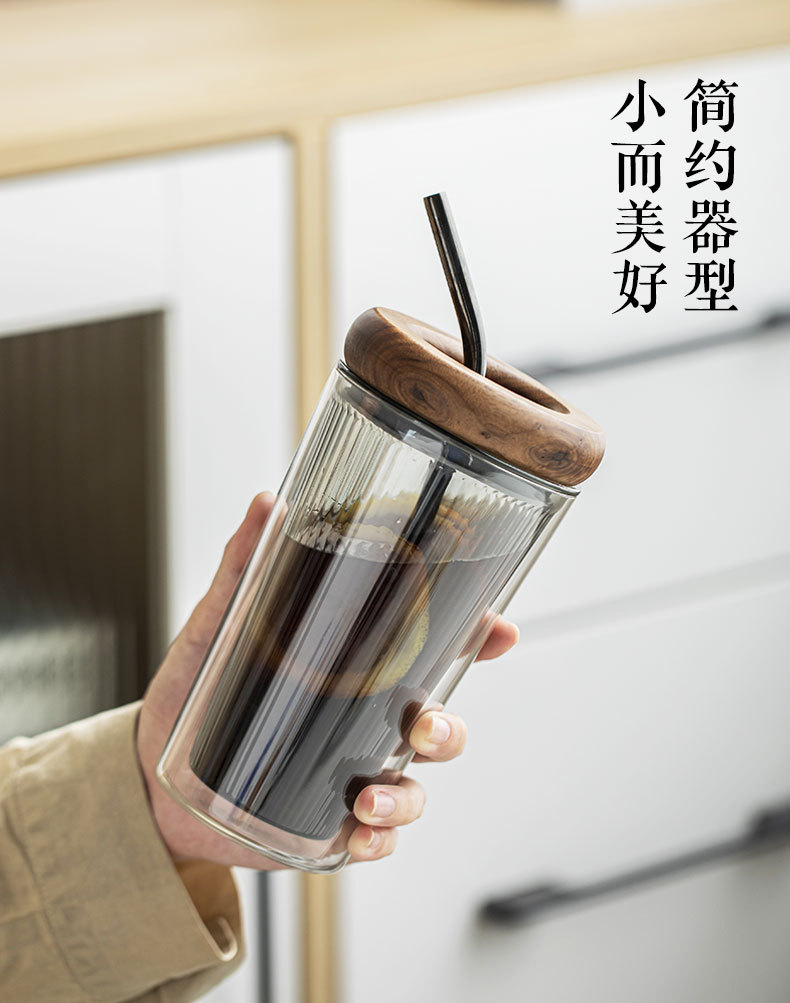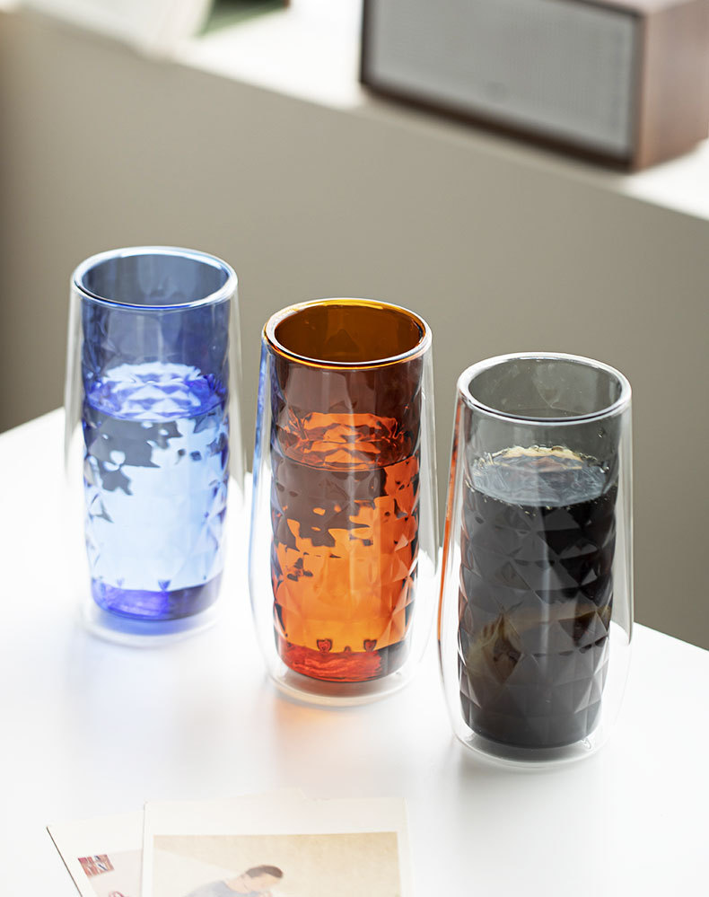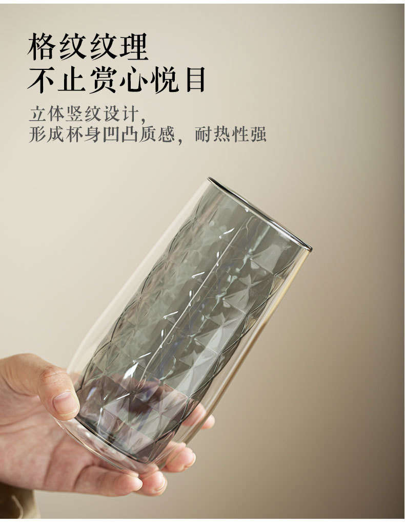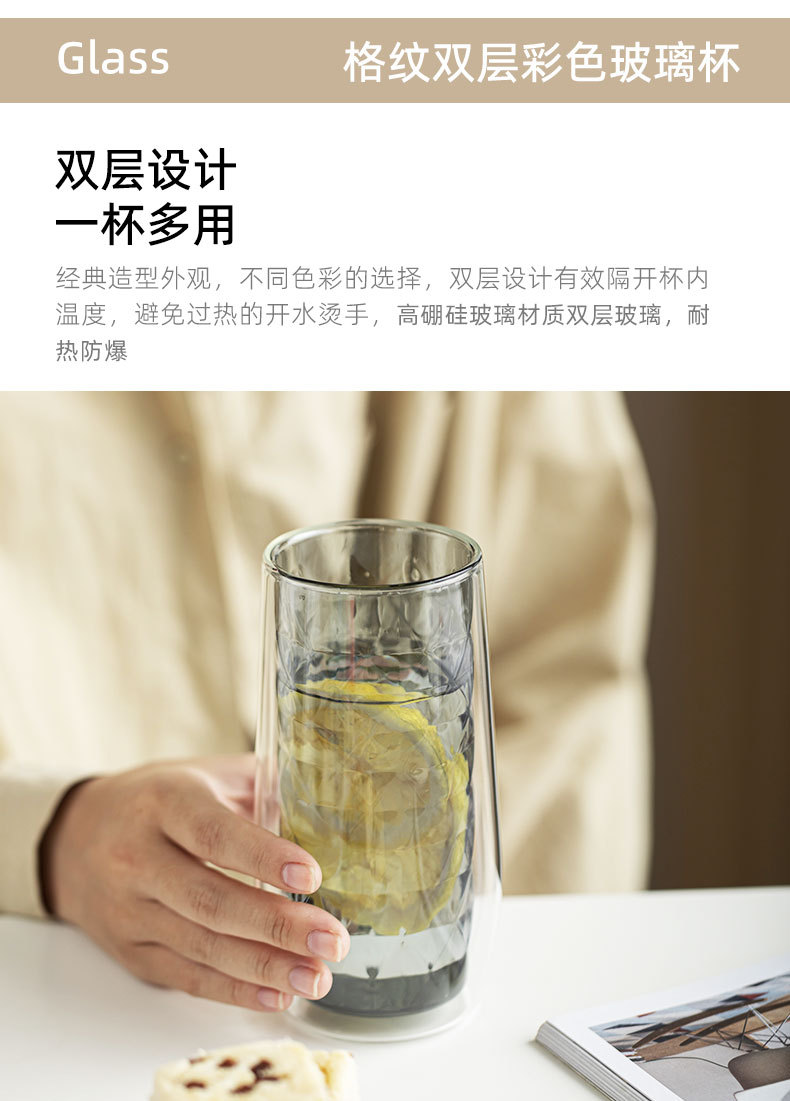 Ly nước thủy tinh hai lớp kẻ sọc, ly cola, ly cà phê chịu nhiệt độ cao, ly nước trái cây, ly đồ uống, đơn giản