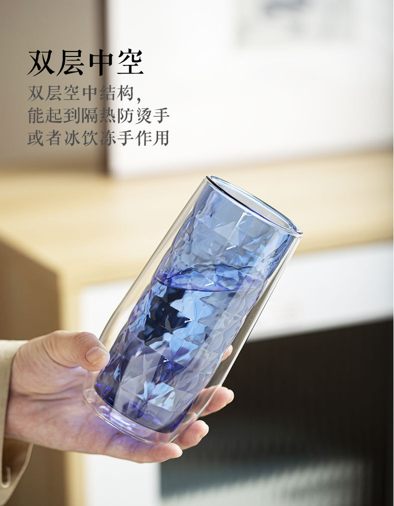 - Ly nước thủy tinh hai lớp kẻ sọc, ly cola, ly cà phê chịu nhiệt độ cao, ly nước trái cây, ly đồ uống, đơn giản