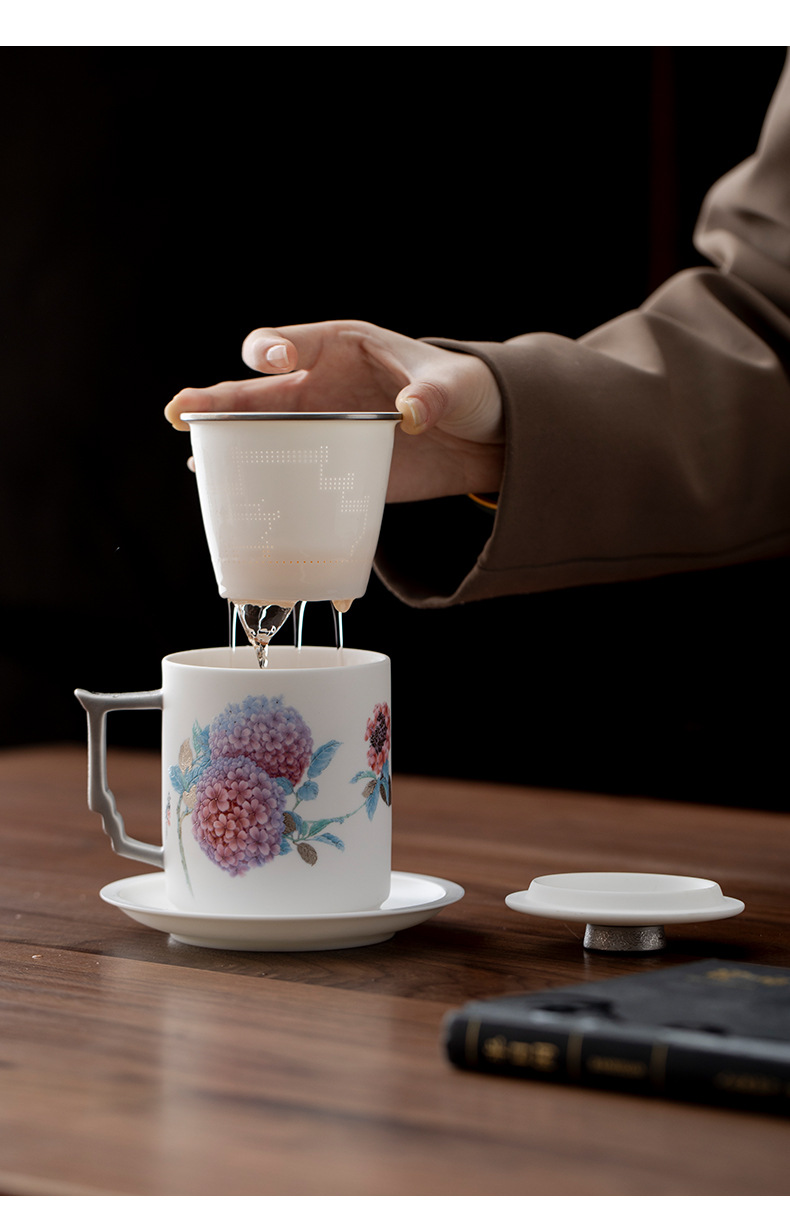 Ly sứ ngọc cao cấp dành cho nữ, tách trà nước, ly trà sang trọng nhẹ nhàng, có thể làm quà tặng cao cấp cho người lớn tuổi