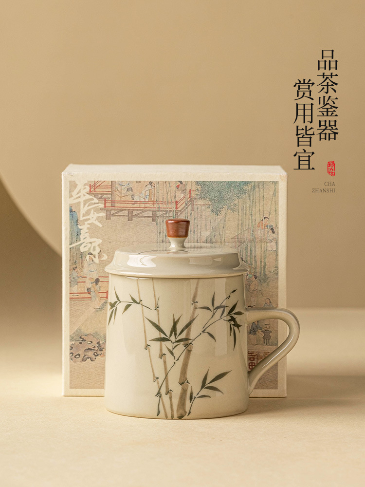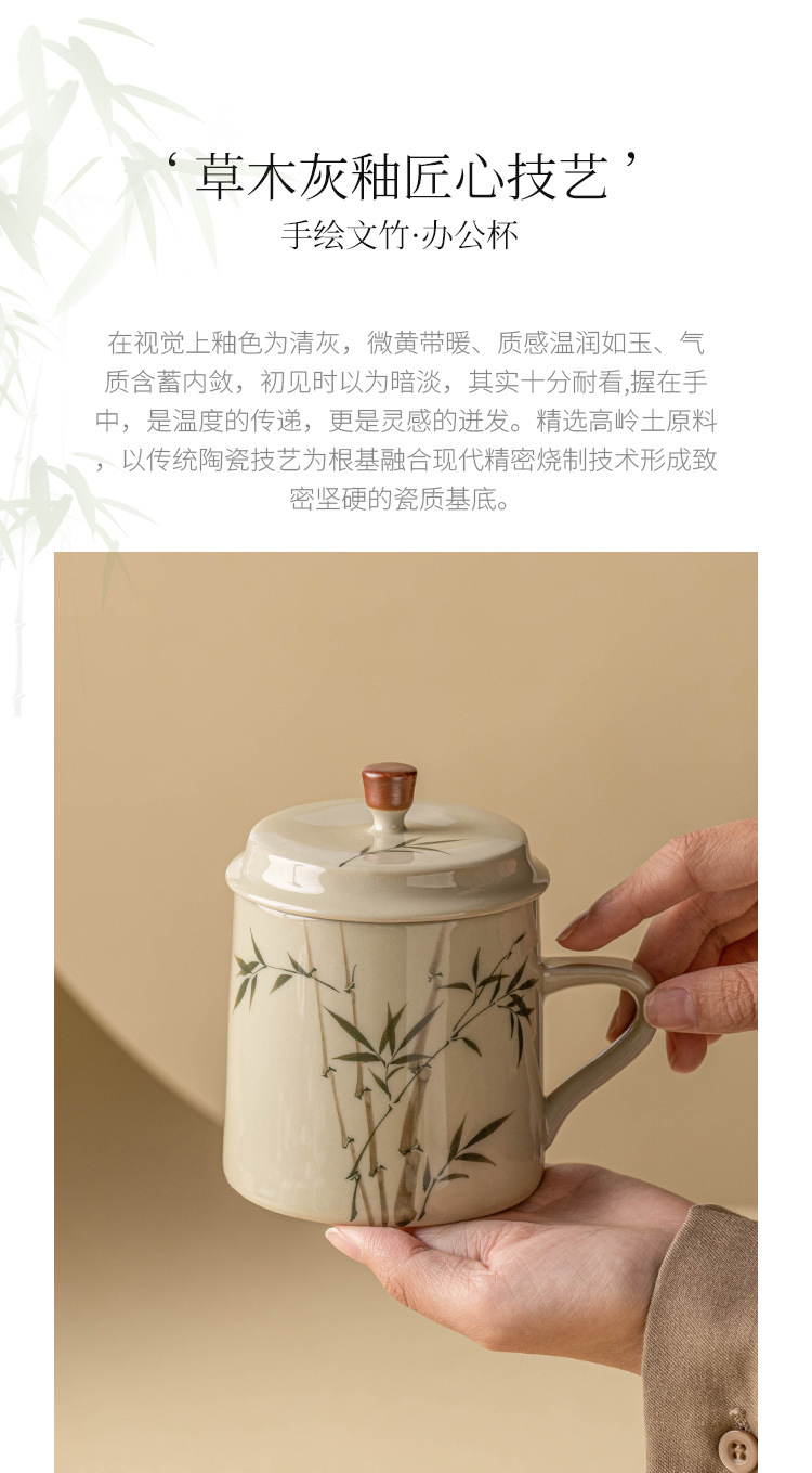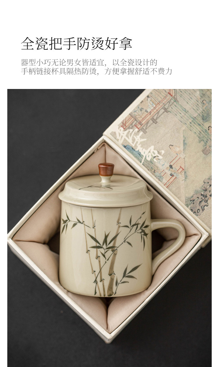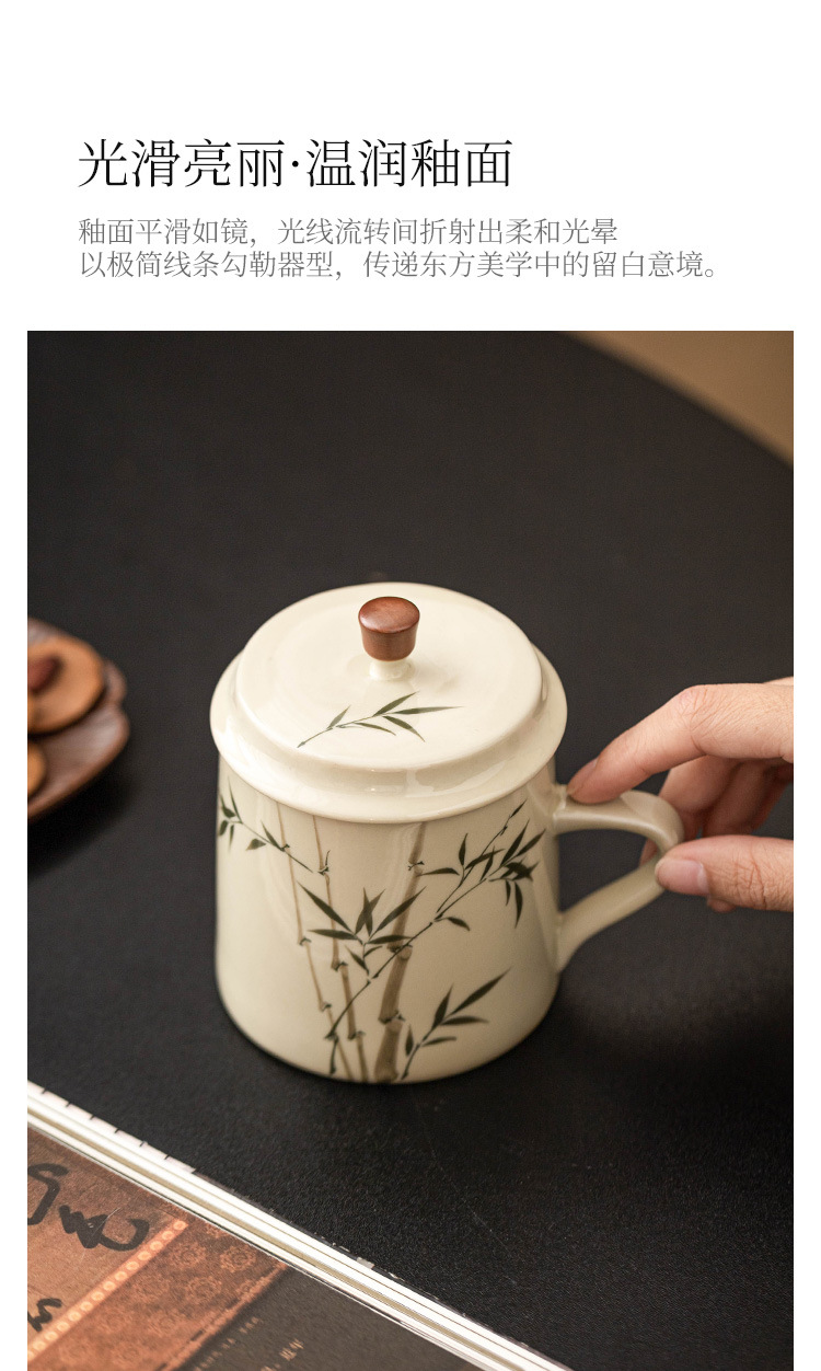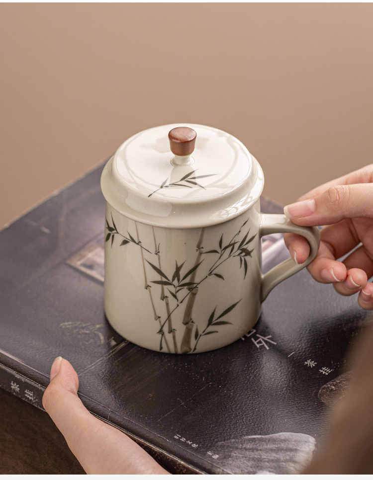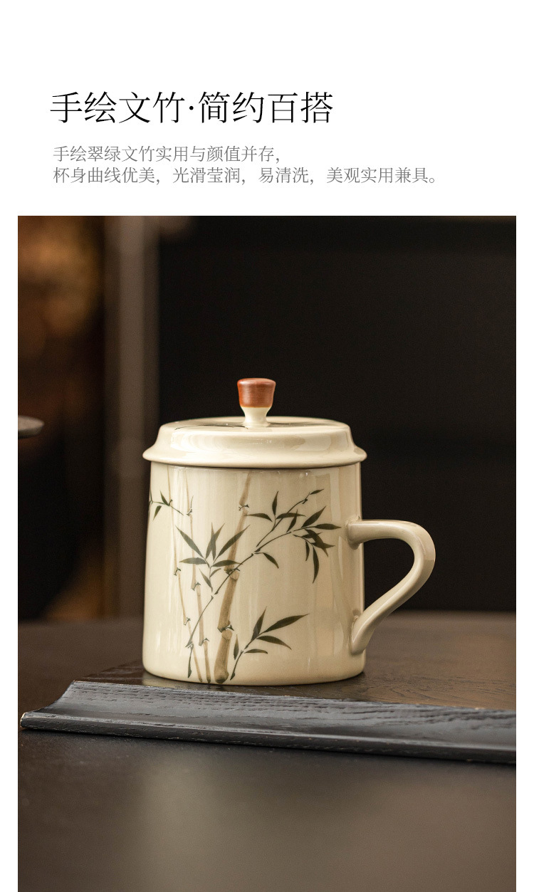 Ly sứ uống trà, cốc nước văn phòng hình măng tây xanh ngọc vẽ tay, cốc uống nước gia dụng dung tích lớn