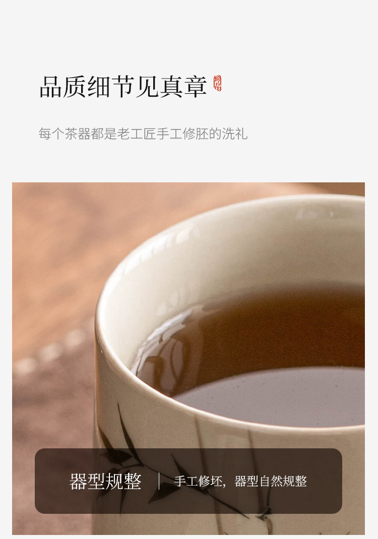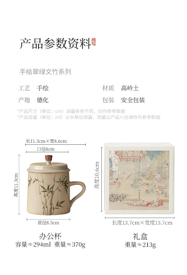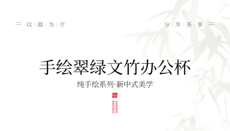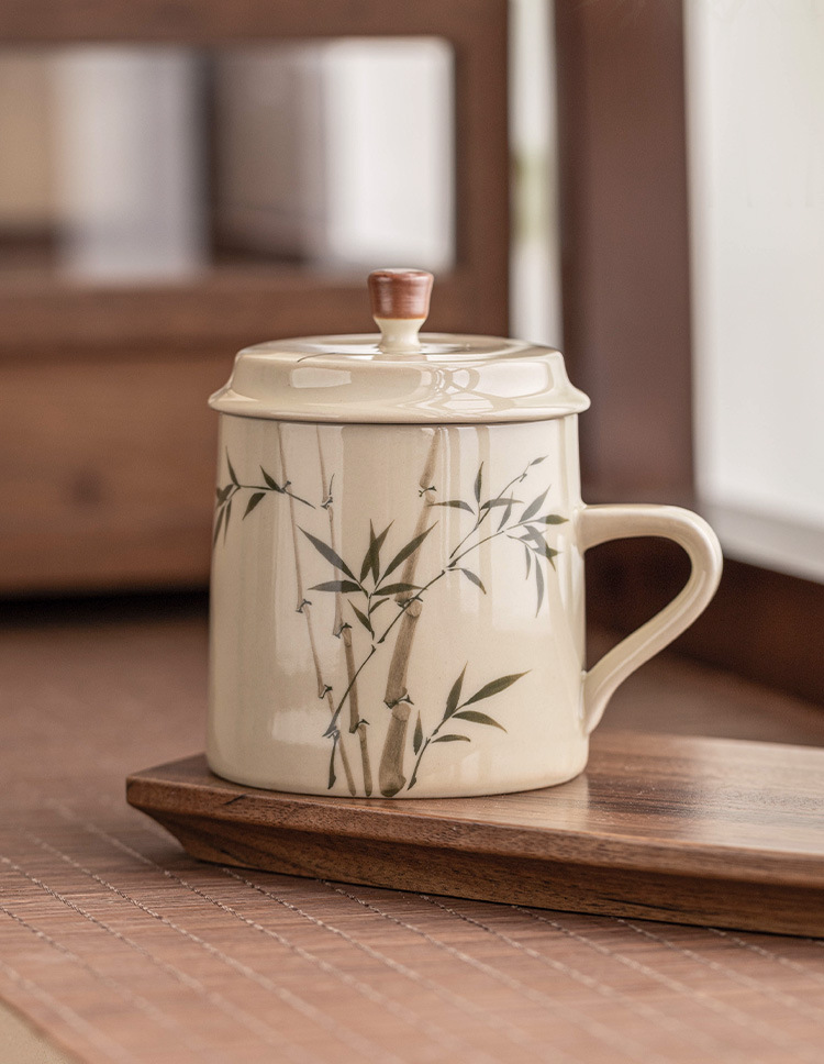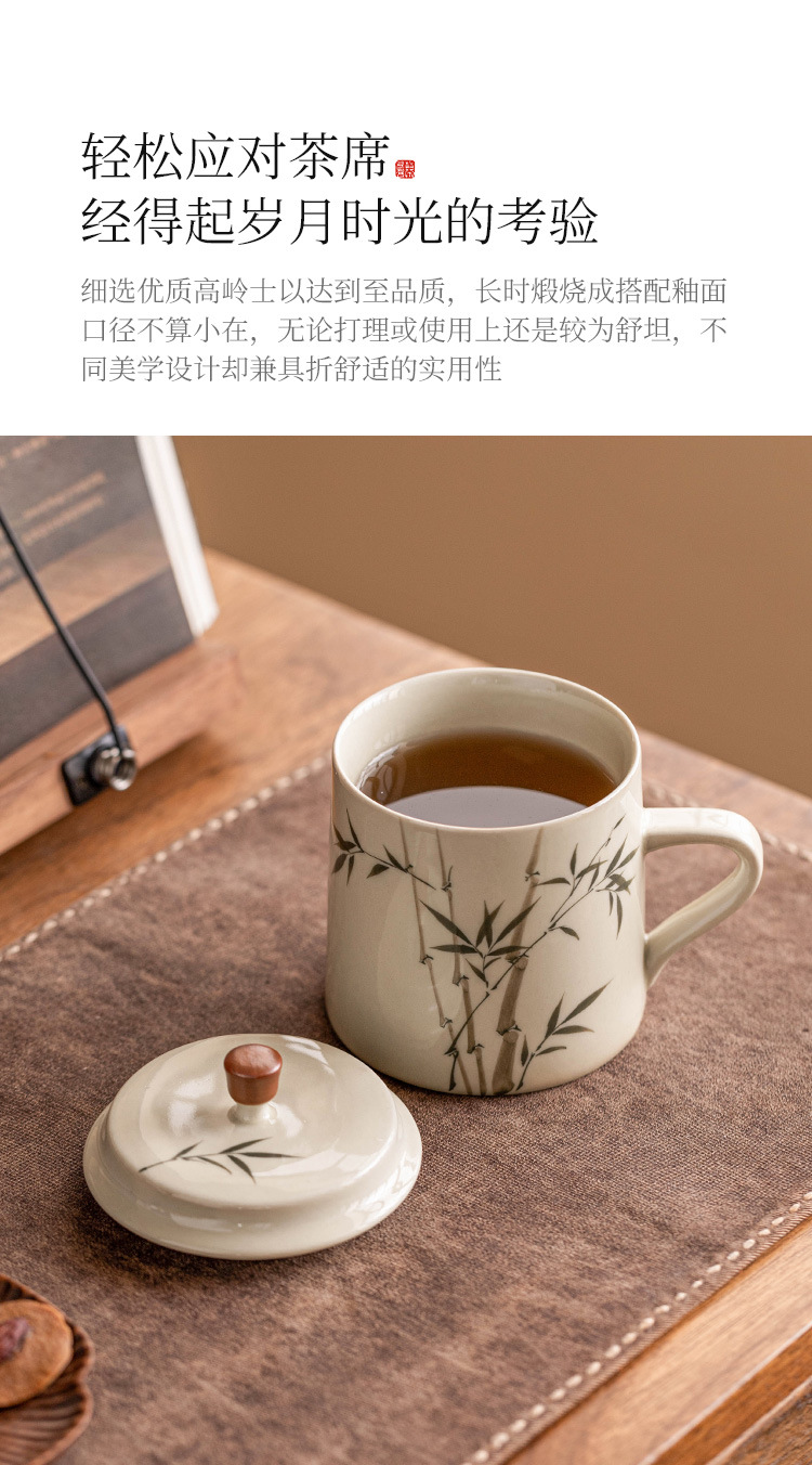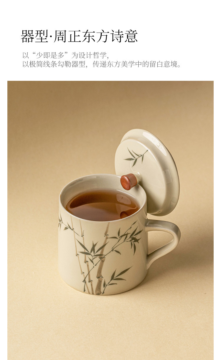 Ly sứ uống trà, cốc nước văn phòng hình măng tây xanh ngọc vẽ tay, cốc uống nước gia dụng dung tích lớn