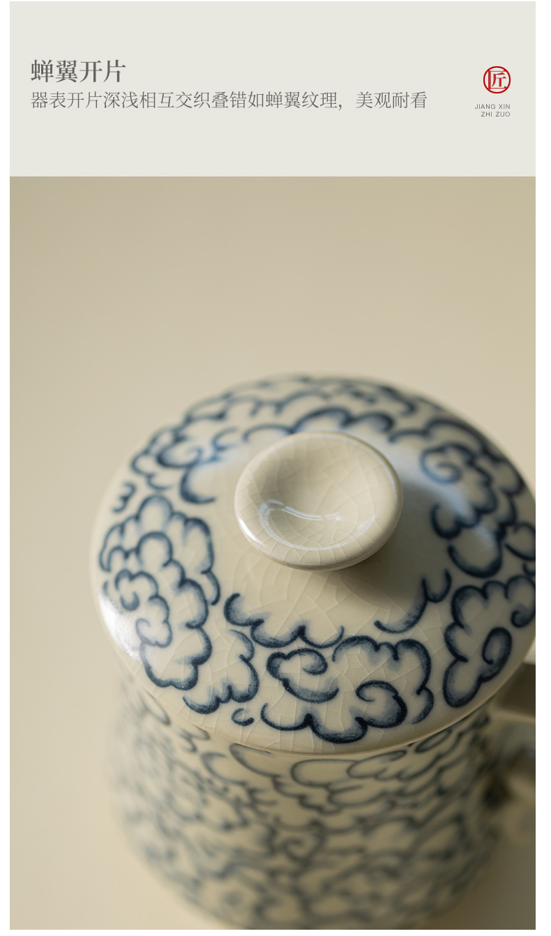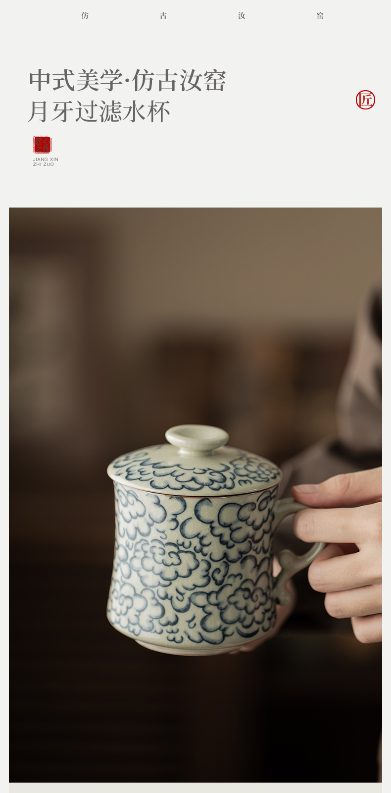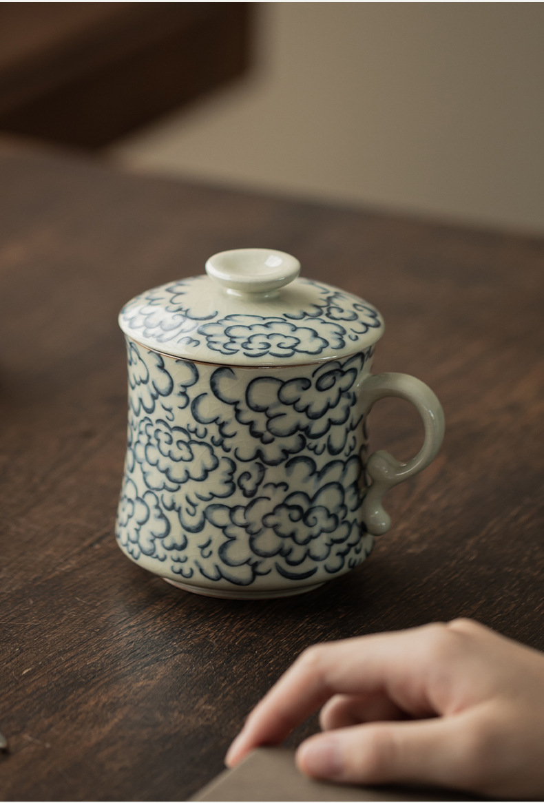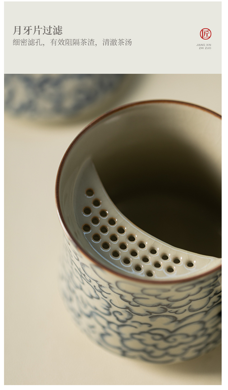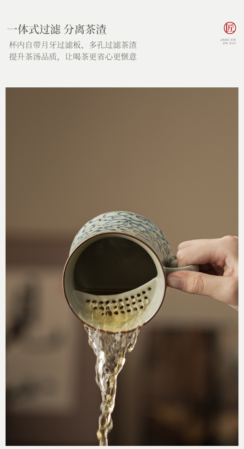 - Ly sứ uống trà kiểu cổ Ru Kiln hình mặt trăng lưỡi liềm, có nắp, tách trà nước rời, có thể tháo rời.