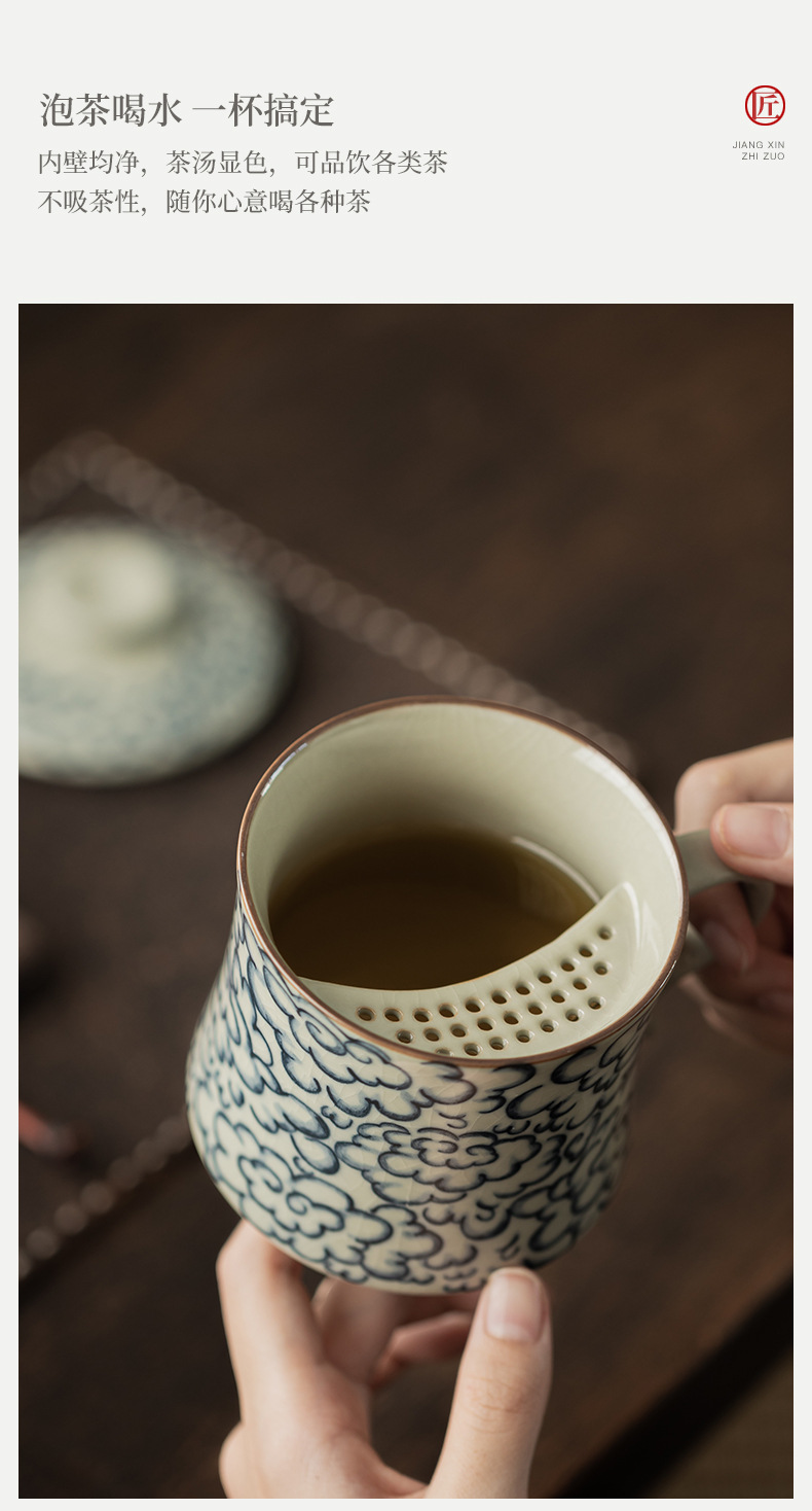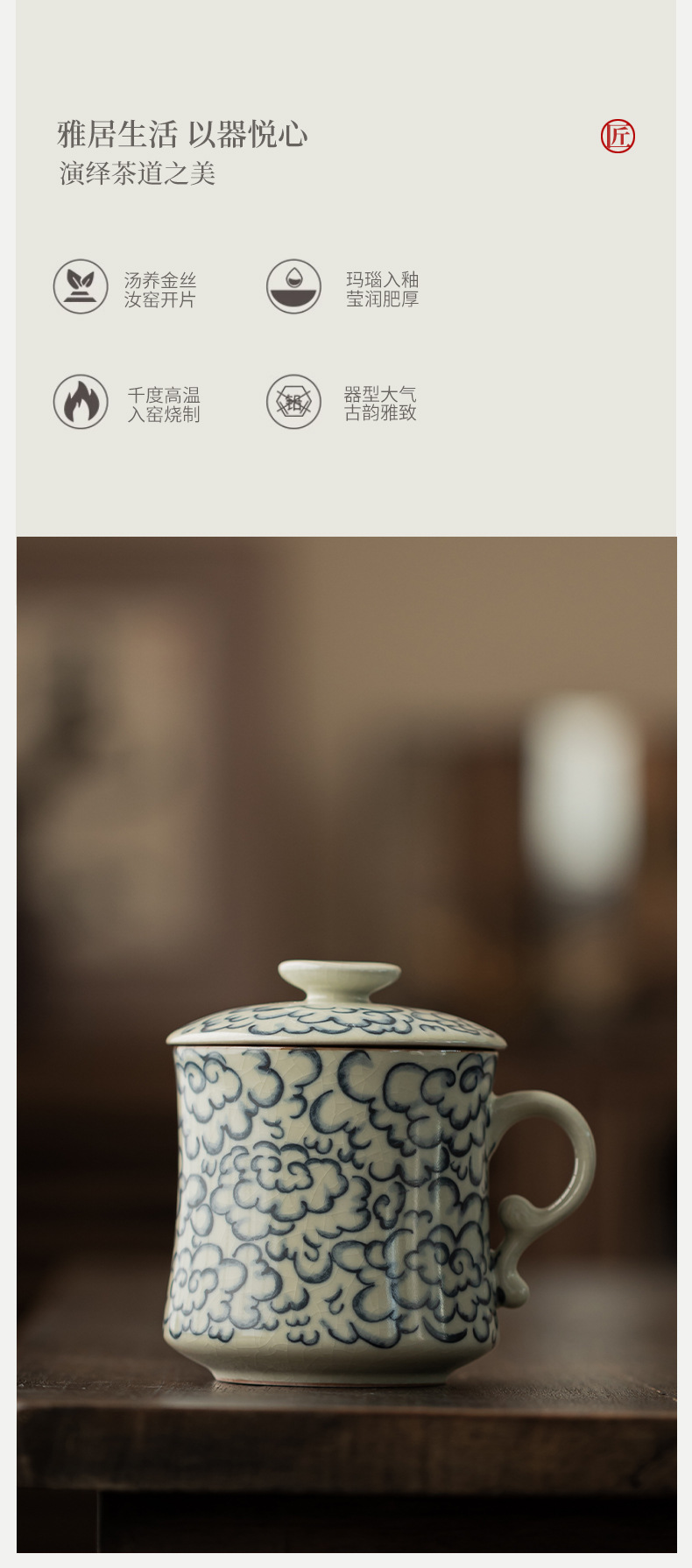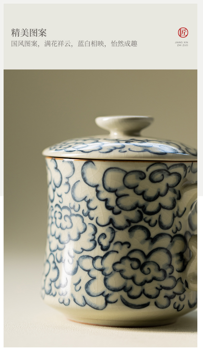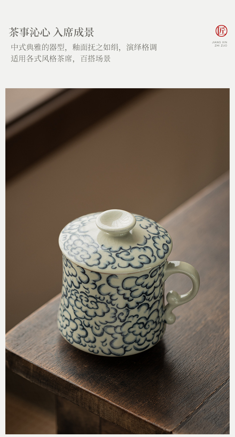 - Ly sứ uống trà kiểu cổ Ru Kiln hình mặt trăng lưỡi liềm, có nắp, tách trà nước rời, có thể tháo rời.