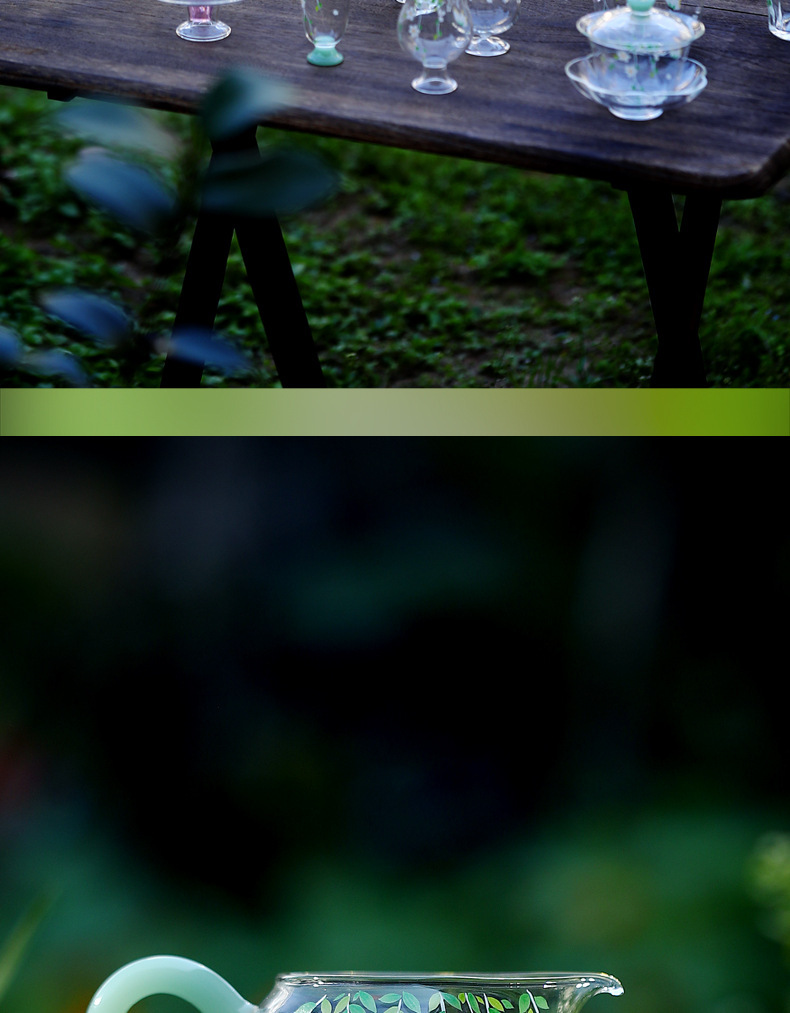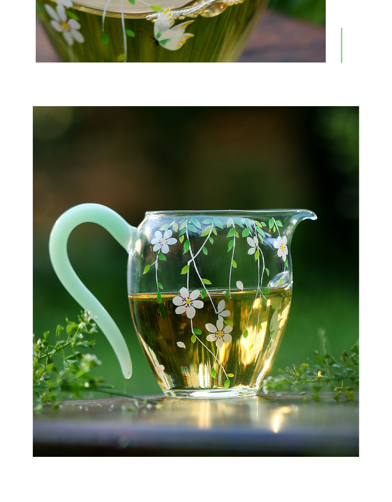 Ly trà công cộng, bộ chia trà Kung Fu, ly thủy tinh borosilicat cao cấp thủ công, dày dặn, chịu nhiệt, họa tiết cỏ.