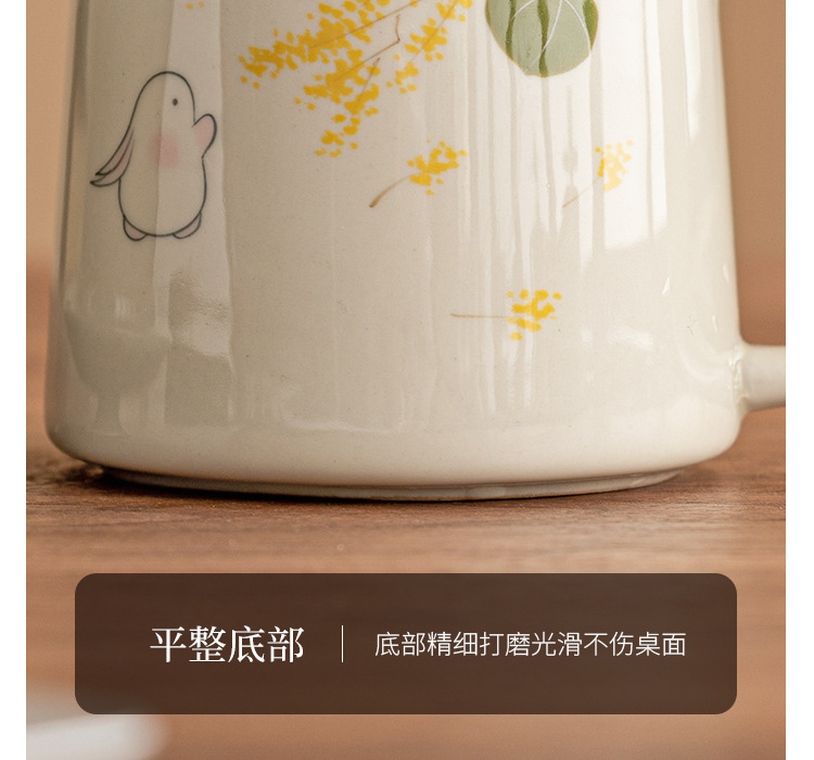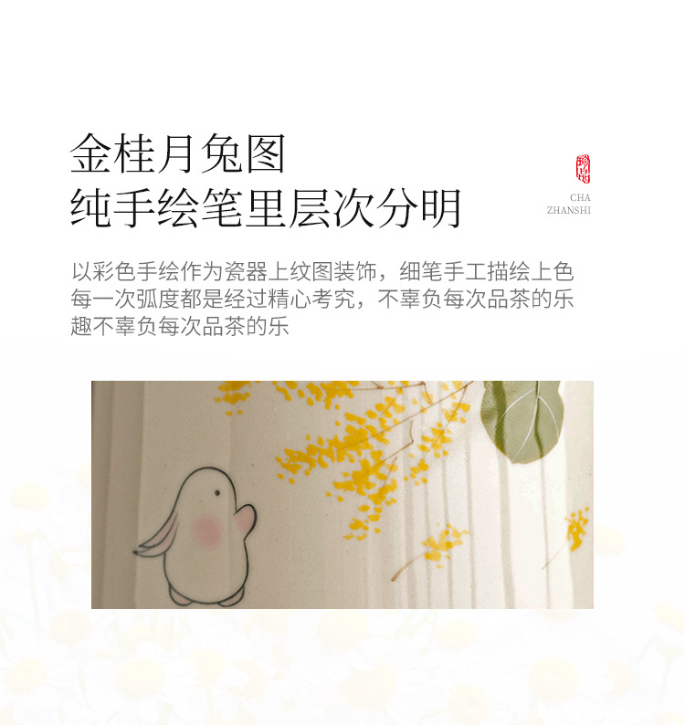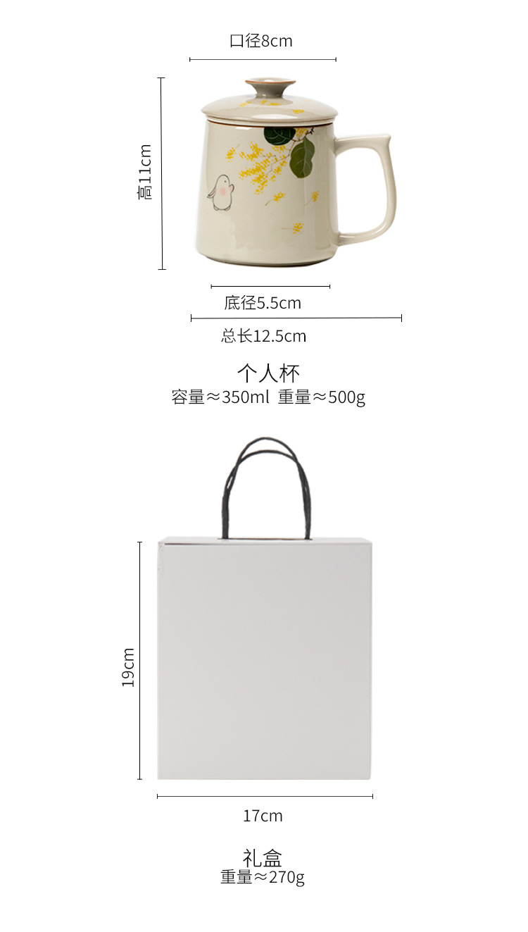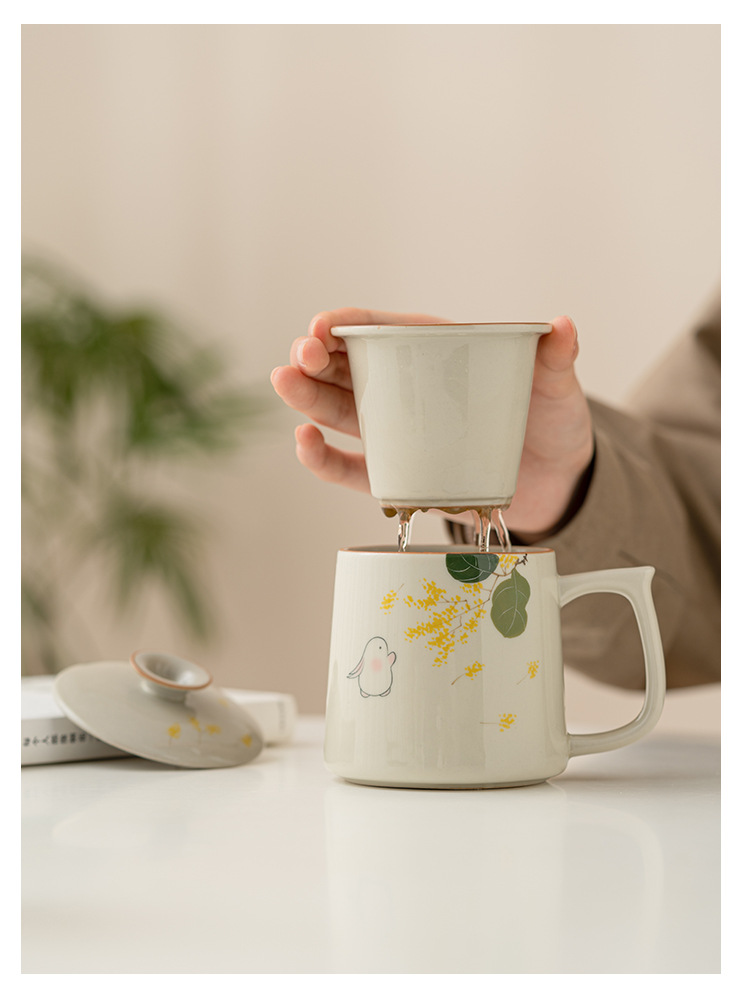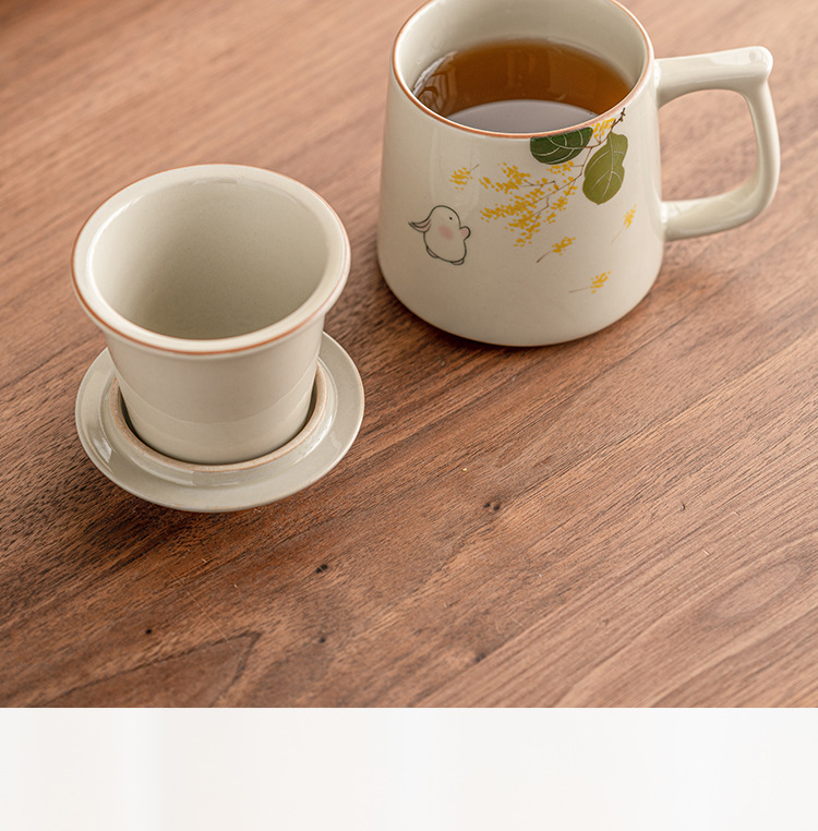 - Ly trà sứ họa tiết hoa quế vàng vẽ tay, tách nước trà, có nắp, dùng làm cốc văn phòng