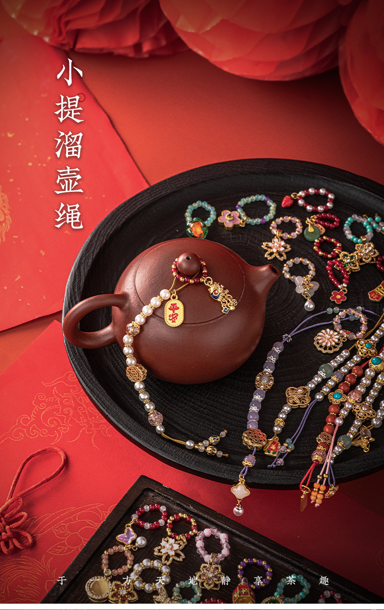 - Mặt dây chuyền nhỏ xách tay kiểu Trung Quốc mới mặt dây chuyền ấm trà có nắp gia dụng ấm trà dây trà đồ trang trí phụ kiện trà đạo
