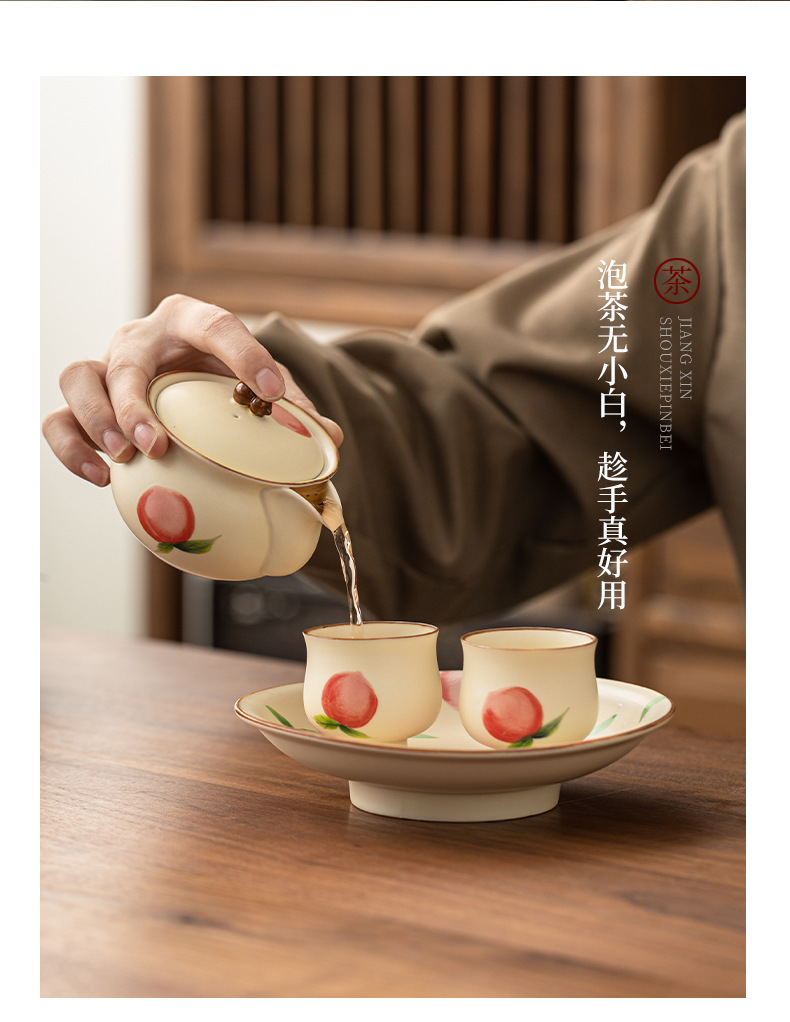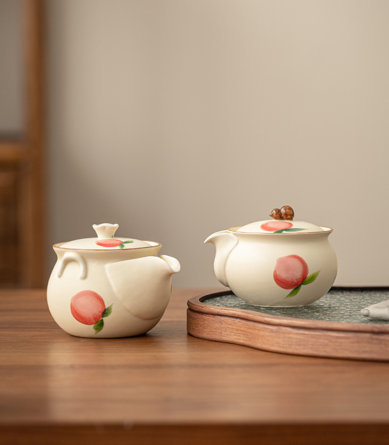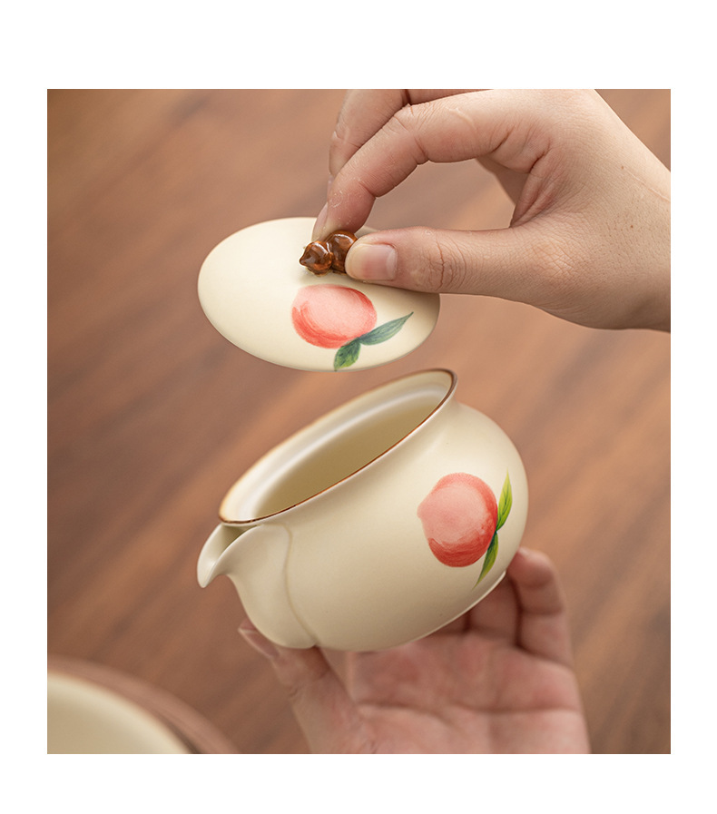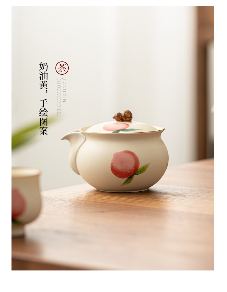 - Màu hồng vẽ tay gốm sứ màu be nước đào nắm tay ấm chén cá nhân bộ trà Kung Fu bộ quà tặng bán buôn