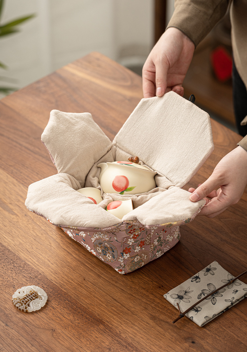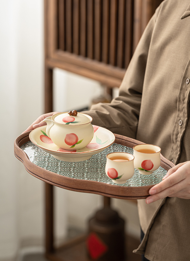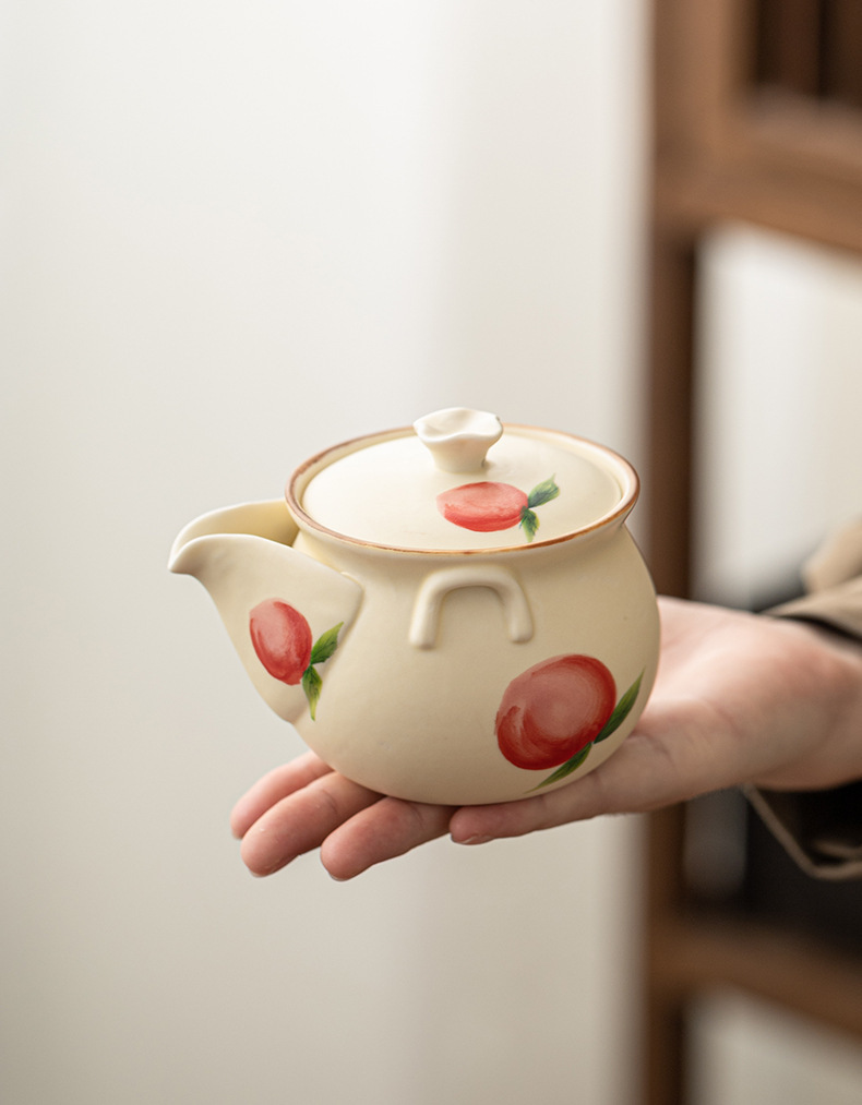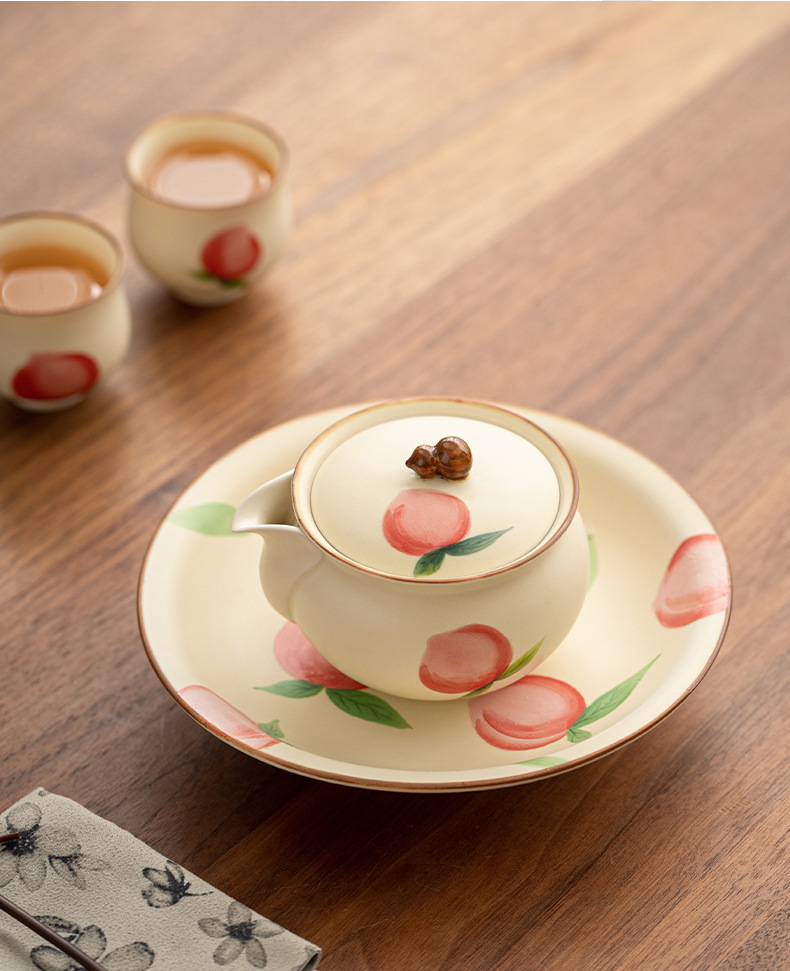 - Màu hồng vẽ tay gốm sứ màu be nước đào nắm tay ấm chén cá nhân bộ trà Kung Fu bộ quà tặng bán buôn