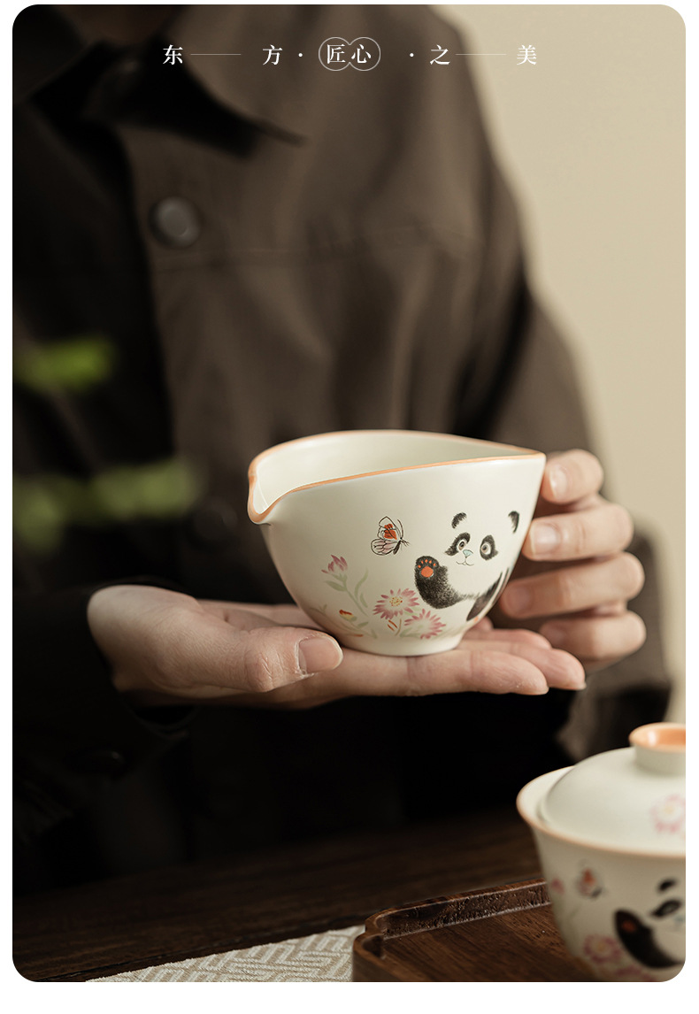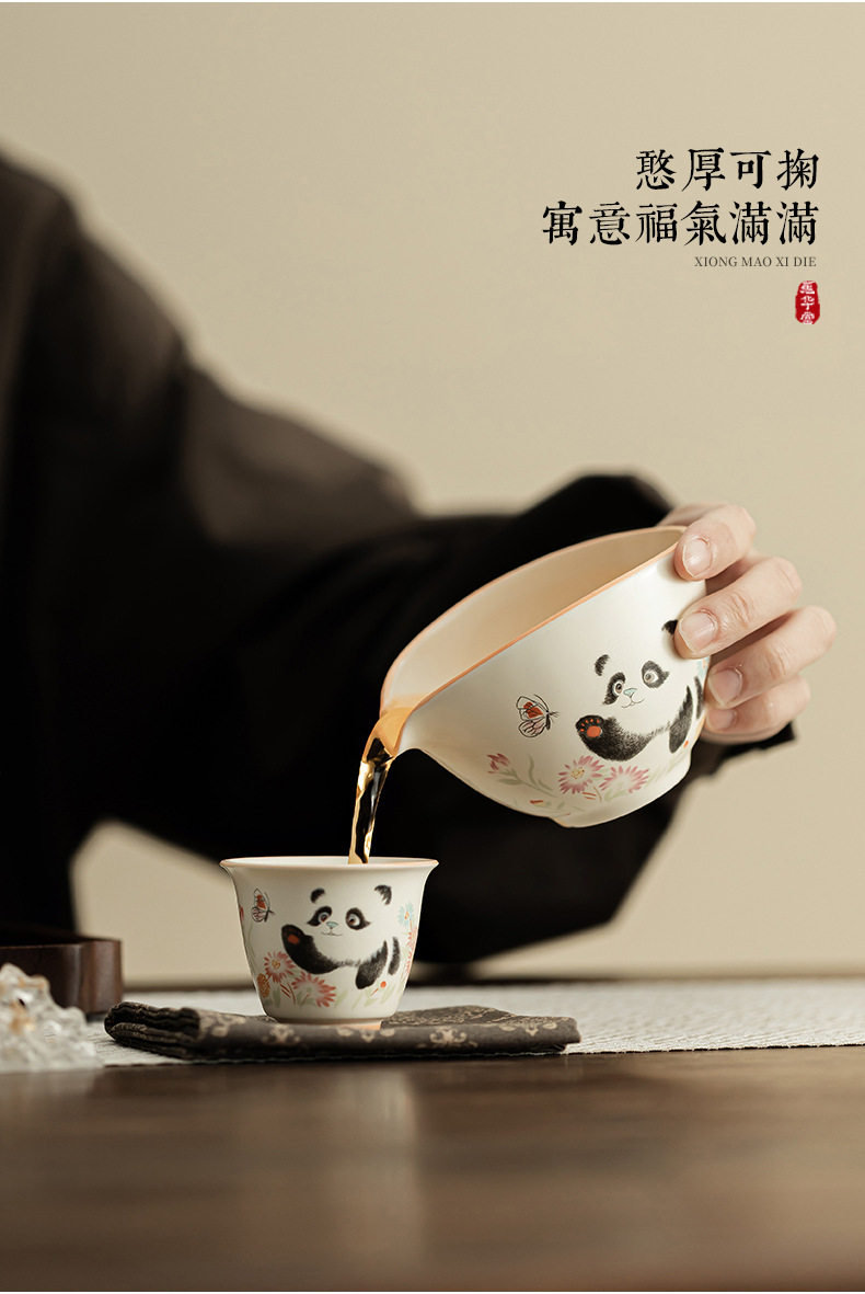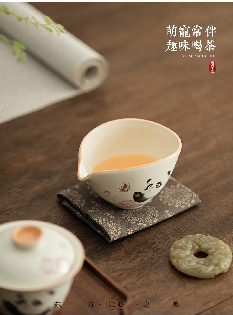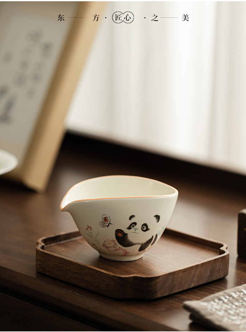 Màu vàng gạo Dingyao gấu trúc chơi bướm phẳng thuyền cốc công cộng gốm sứ Kung Fu bộ trà phụ kiện trà biển cốc chia trà cốc đồng nhất
