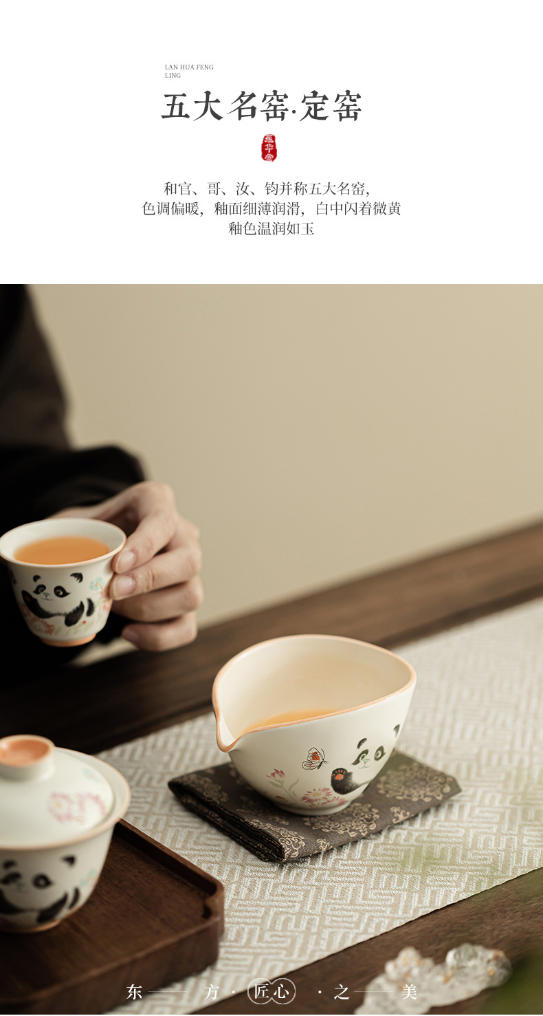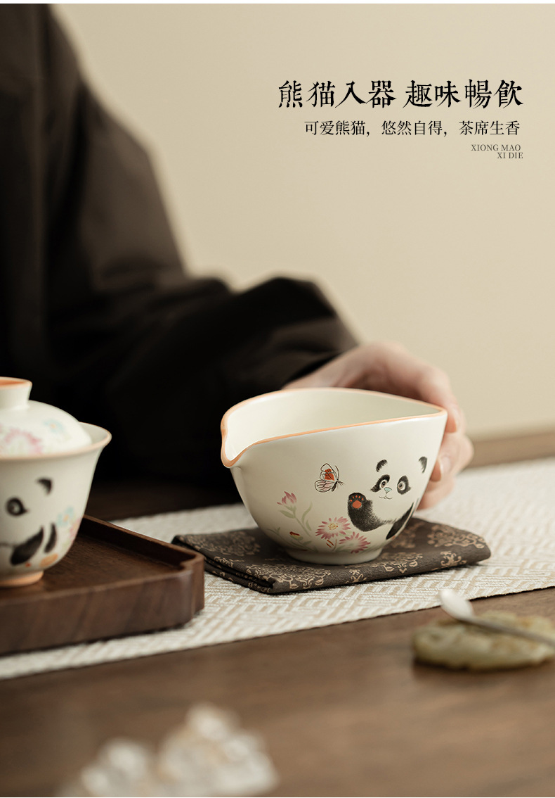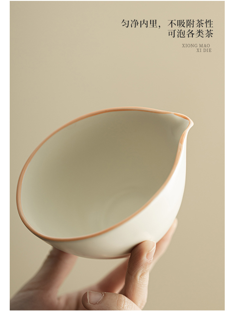 Màu vàng gạo Dingyao gấu trúc chơi bướm phẳng thuyền cốc công cộng gốm sứ Kung Fu bộ trà phụ kiện trà biển cốc chia trà cốc đồng nhất