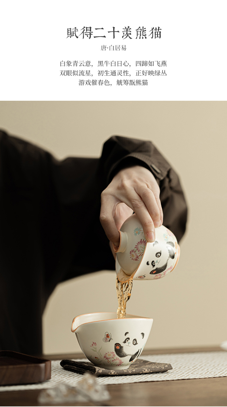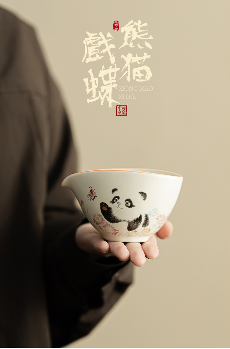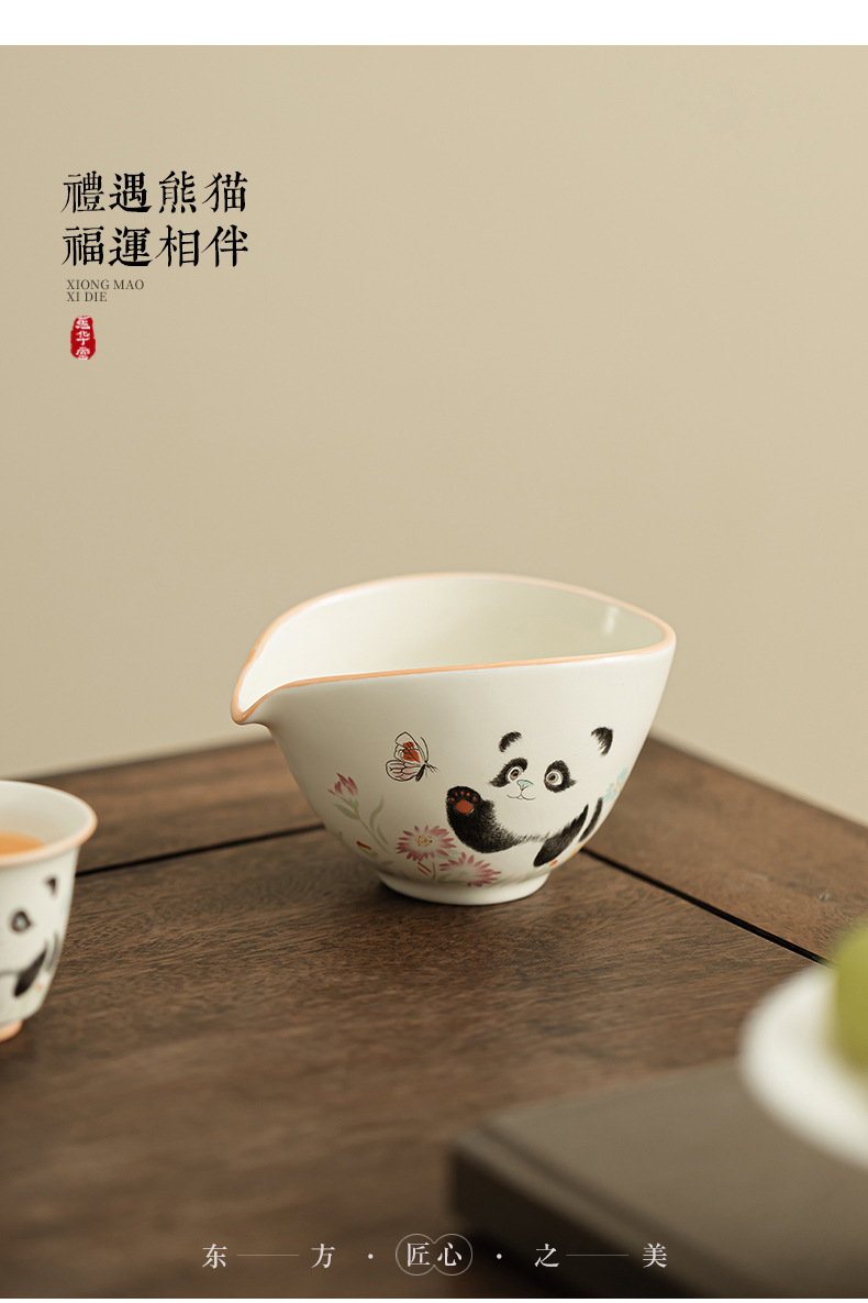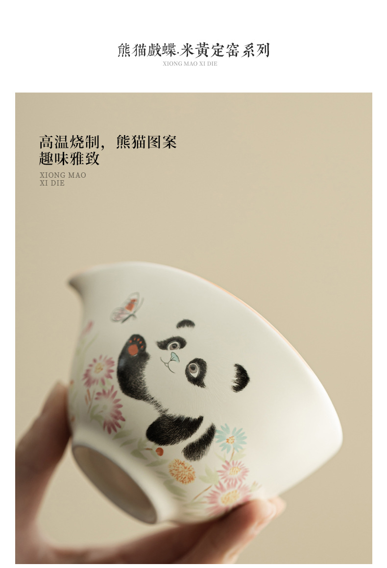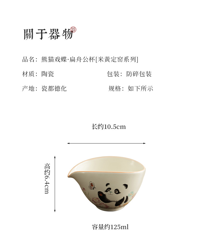 - Màu vàng gạo Dingyao gấu trúc chơi bướm phẳng thuyền cốc công cộng gốm sứ Kung Fu bộ trà phụ kiện trà biển cốc chia trà cốc đồng nhất