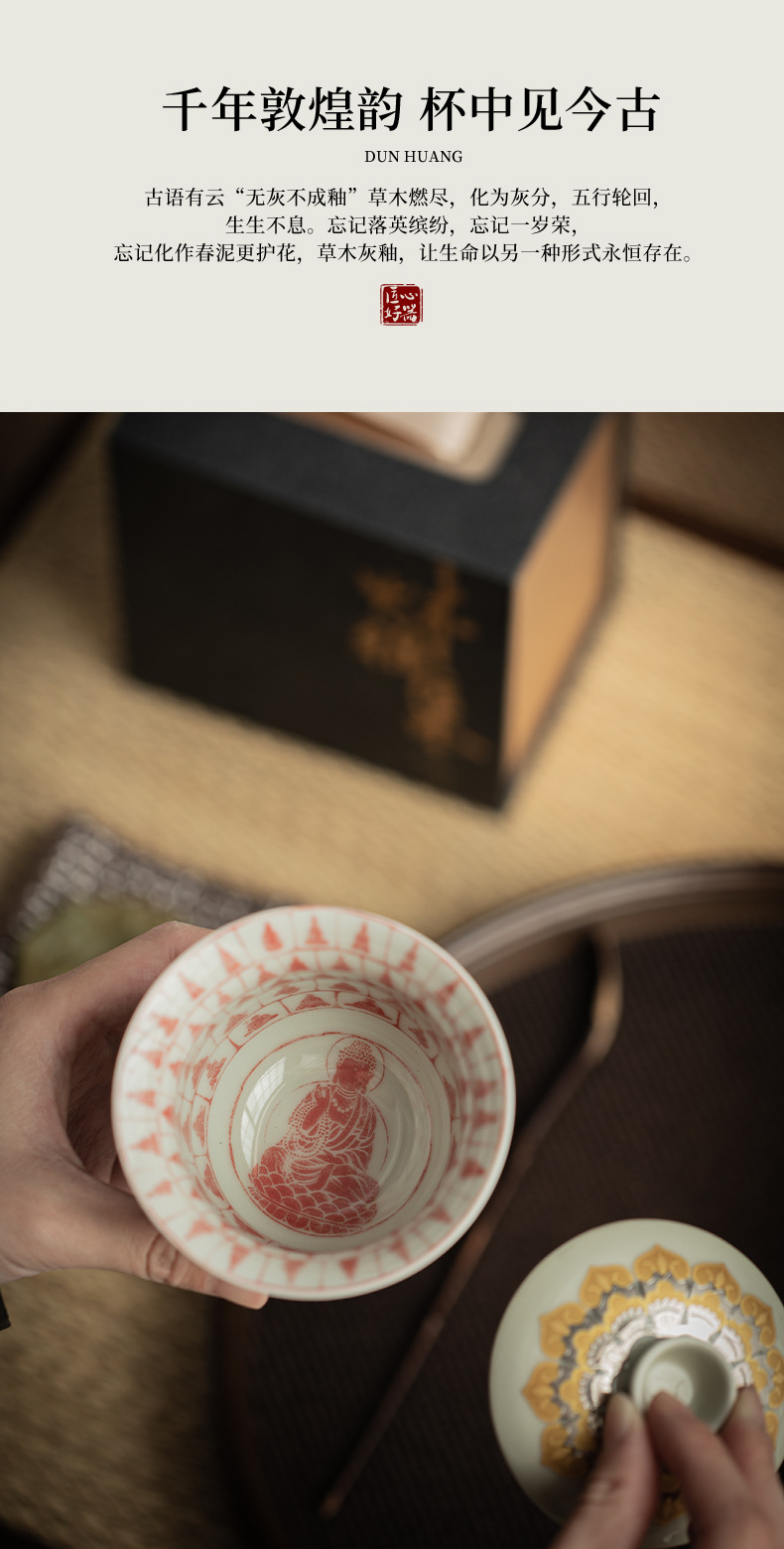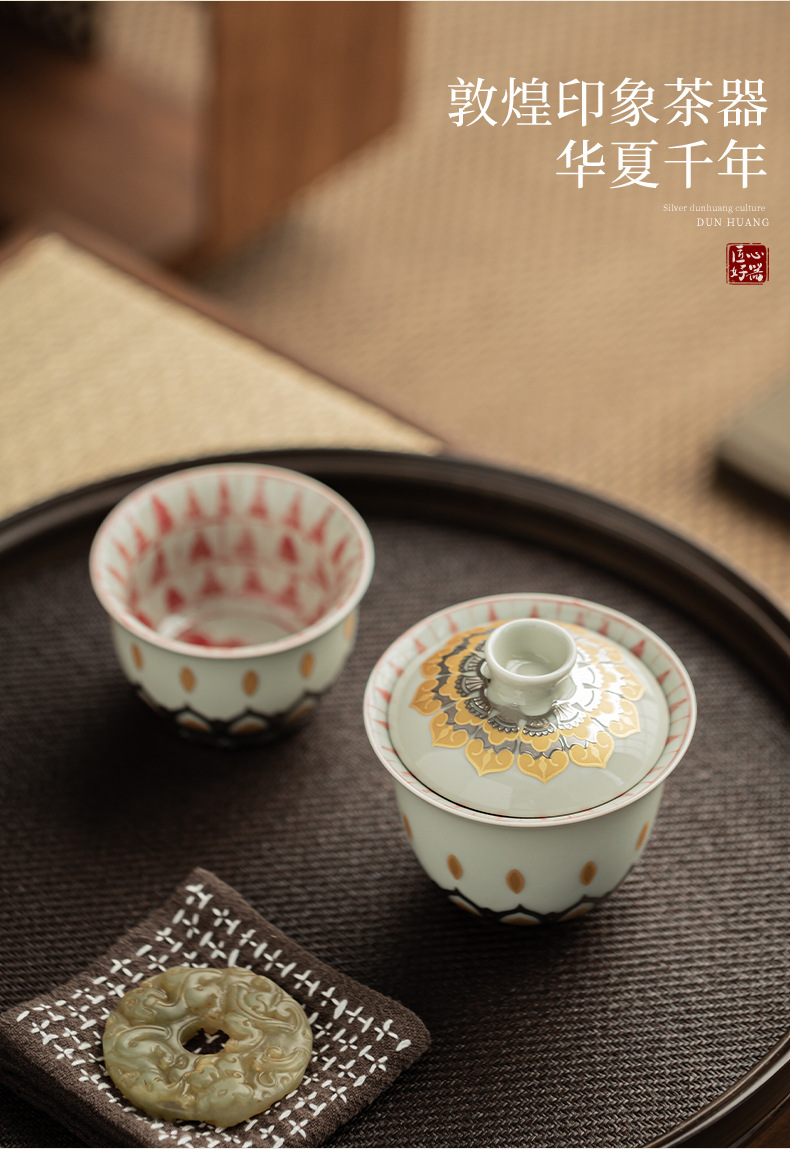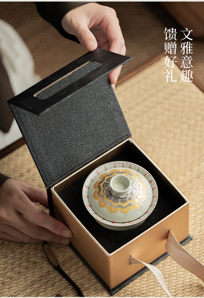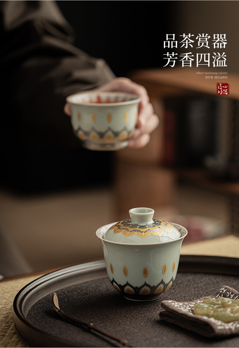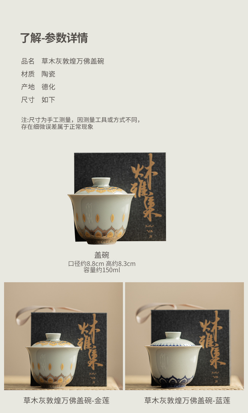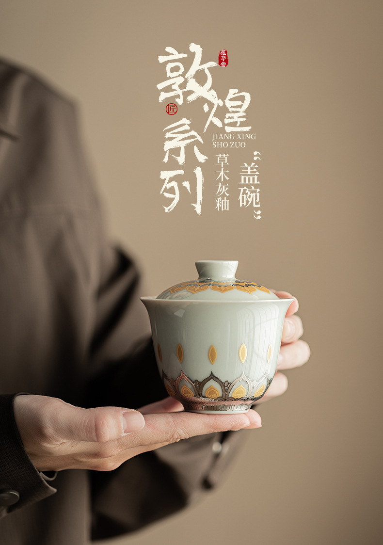 - Màu xám thực vật Đôn Hoàng Vạn Phật Nắp bát gốm sứ văn hóa và sáng tạo chén trà có nắp Hộp quà tặng dụng cụ trà Kung Fu