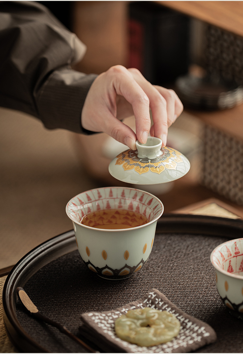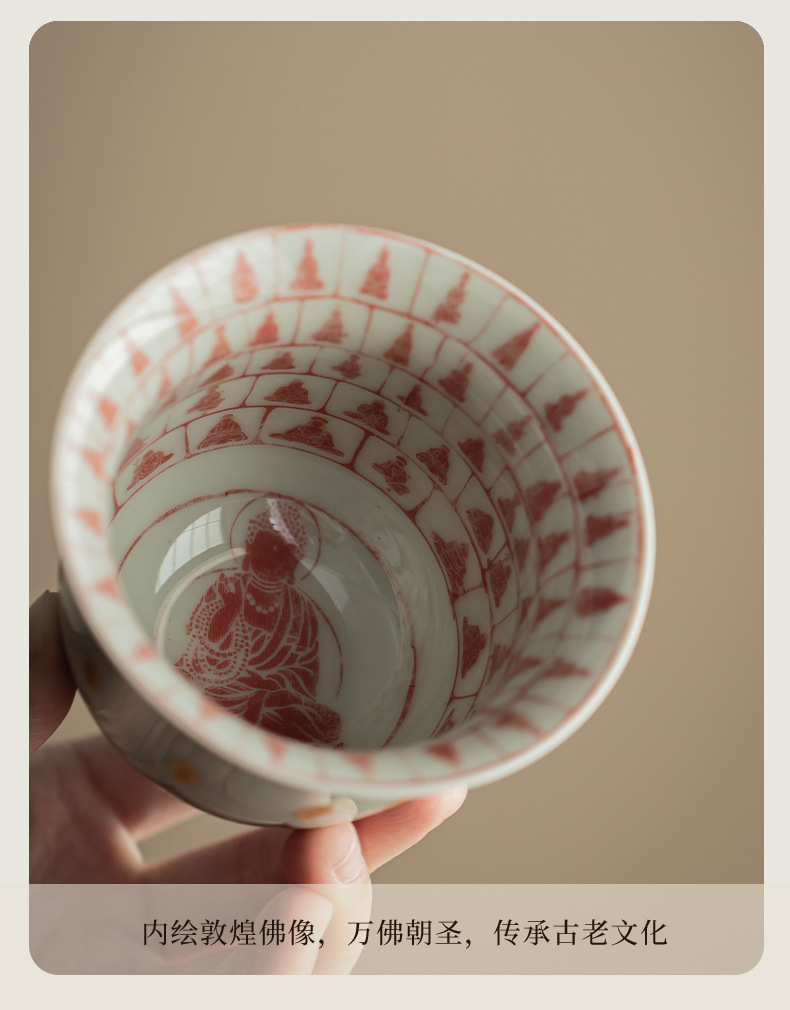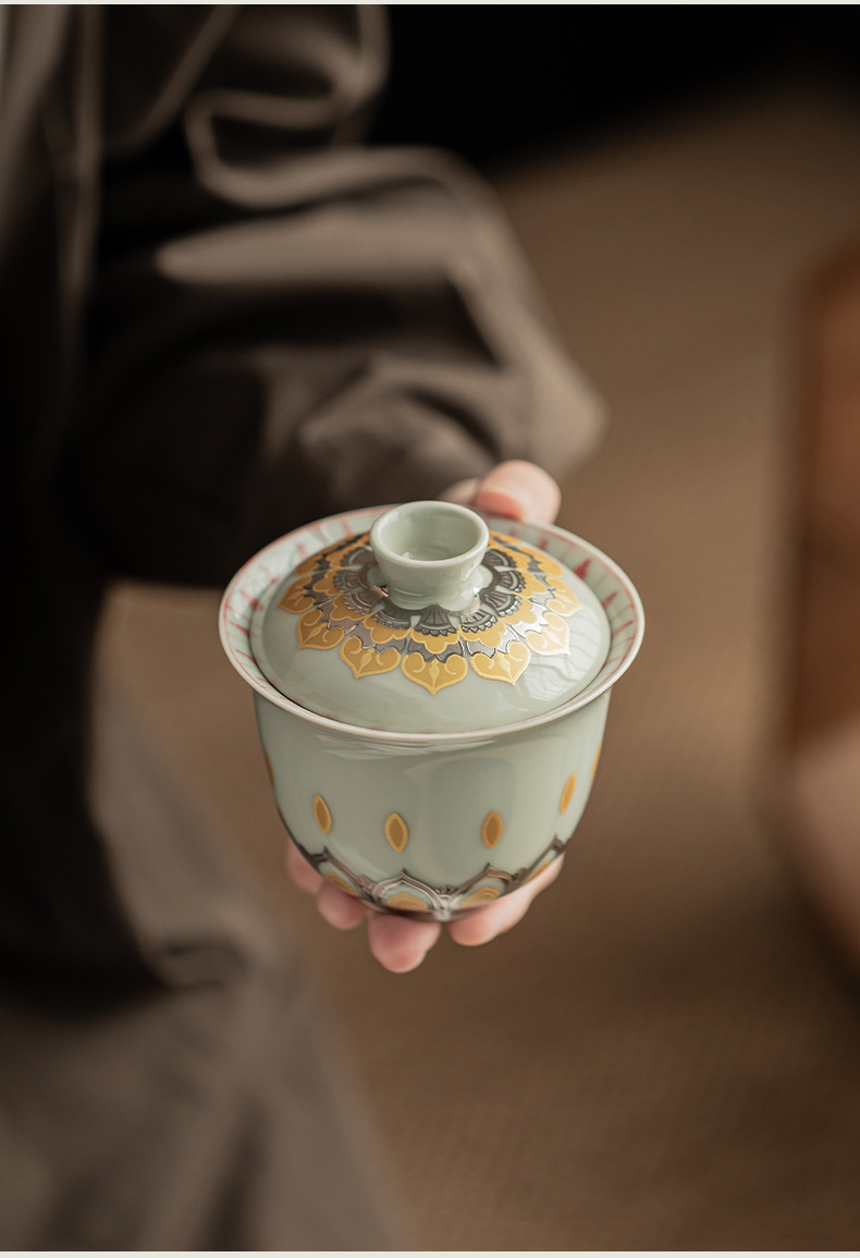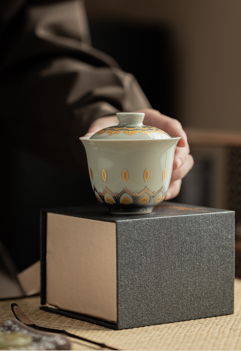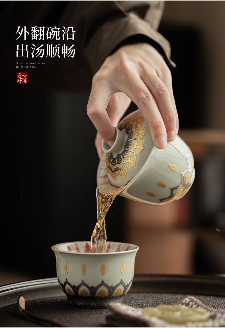 - Màu xám thực vật Đôn Hoàng Vạn Phật Nắp bát gốm sứ văn hóa và sáng tạo chén trà có nắp Hộp quà tặng dụng cụ trà Kung Fu
