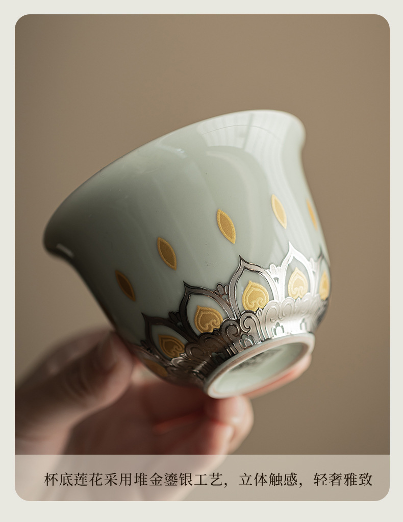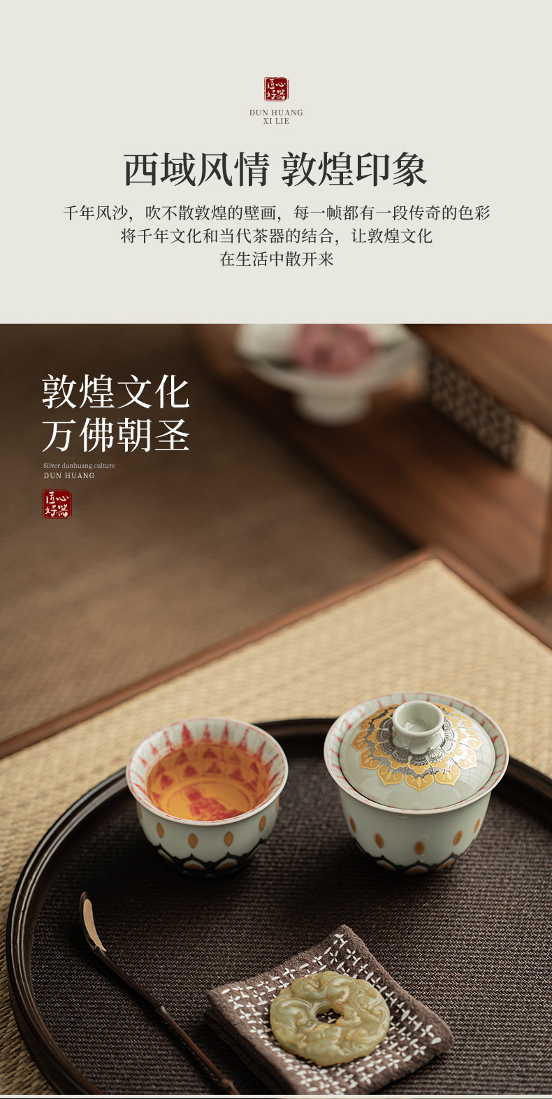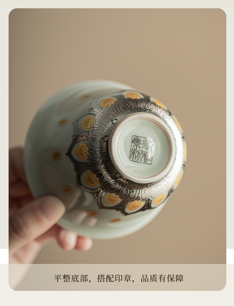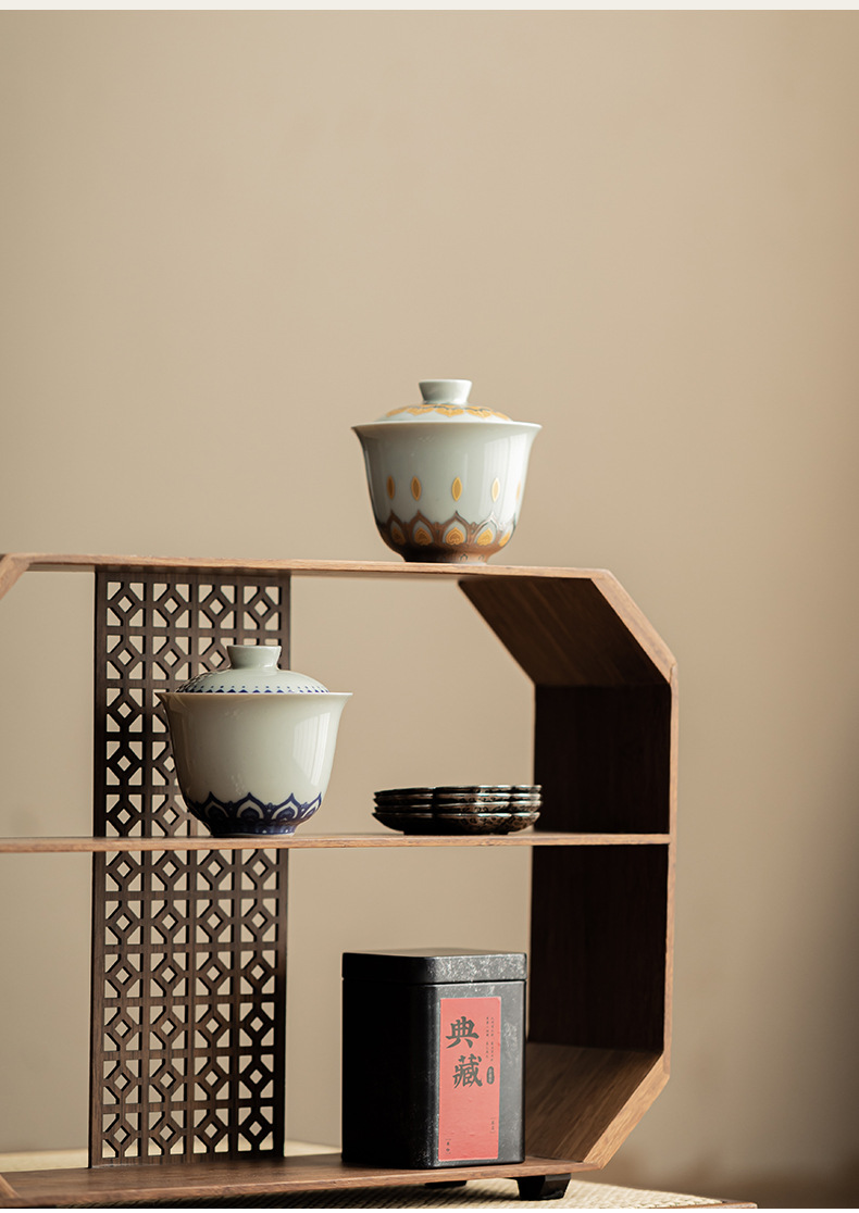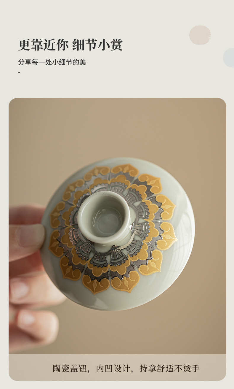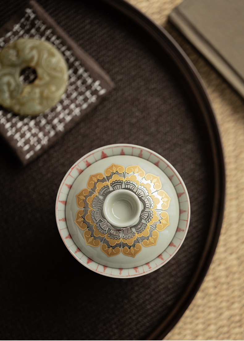 - Màu xám thực vật Đôn Hoàng Vạn Phật Nắp bát gốm sứ văn hóa và sáng tạo chén trà có nắp Hộp quà tặng dụng cụ trà Kung Fu