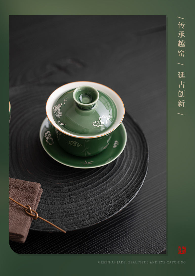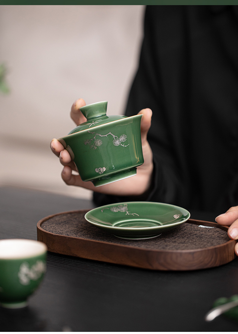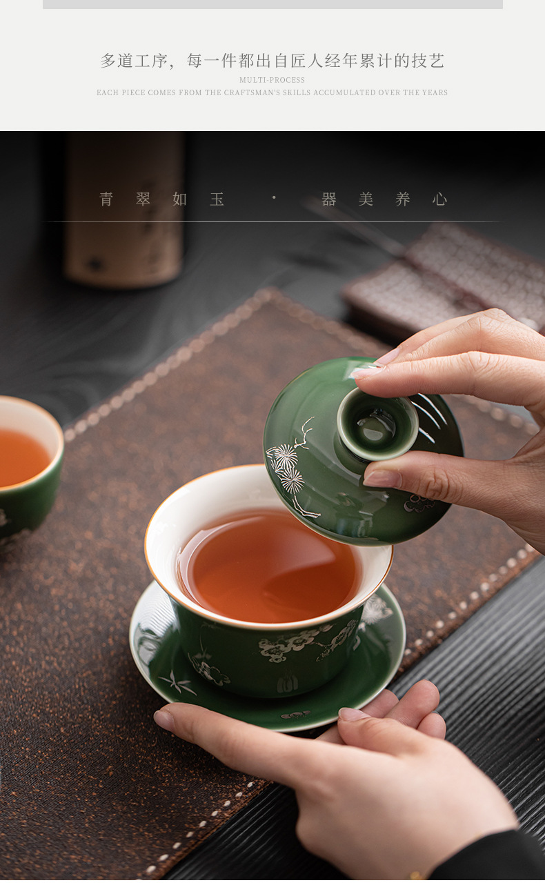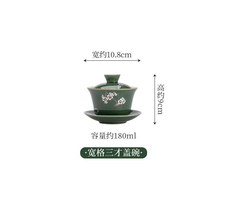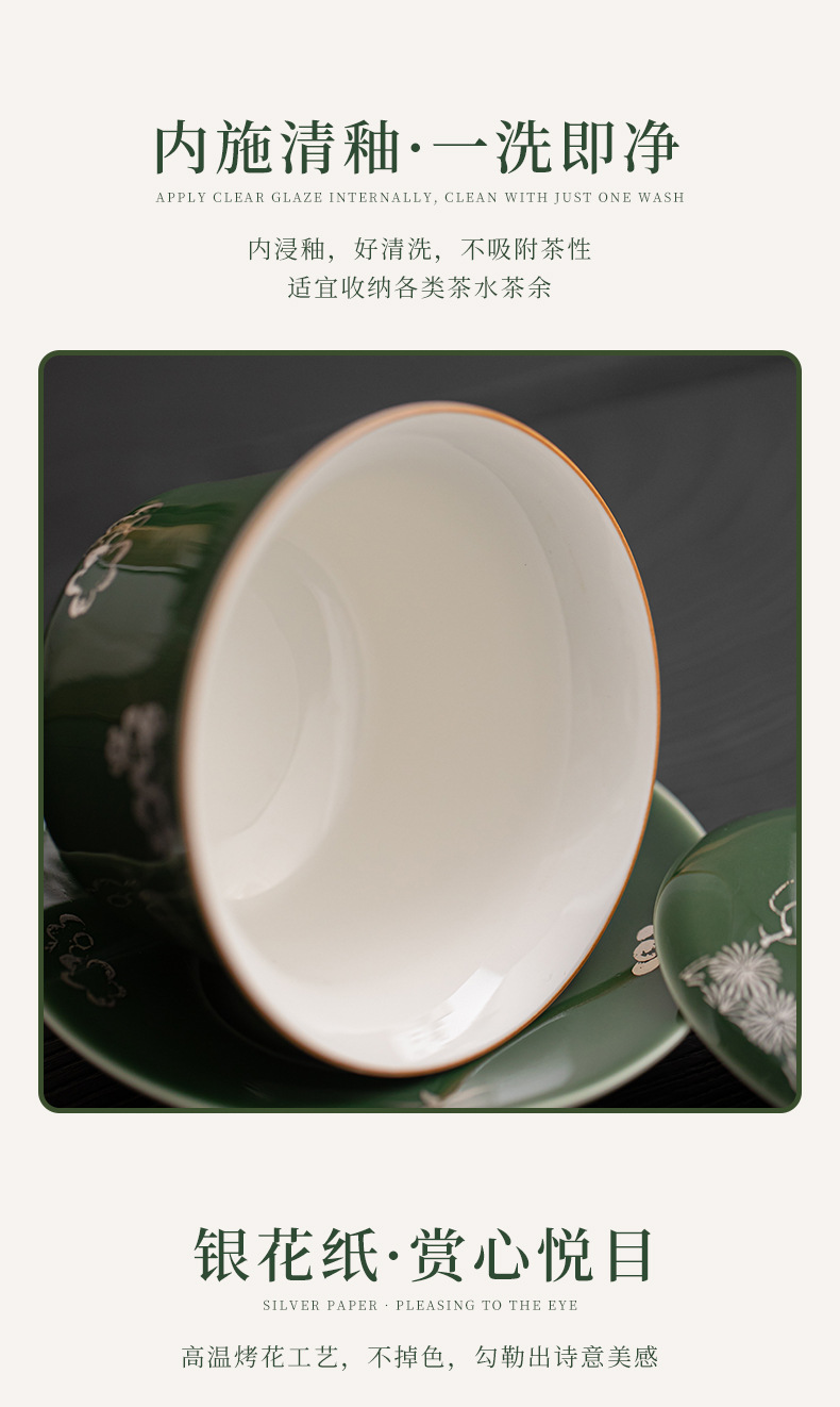 - Màu xanh lá cây hương thơm tối ô rộng ba chỉ bát có nắp gốm sứ cốc trà lớn bát trà