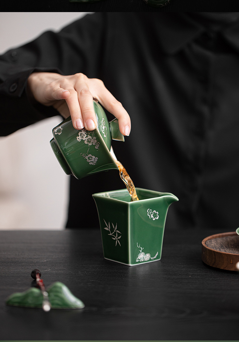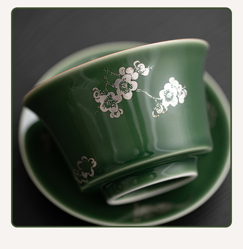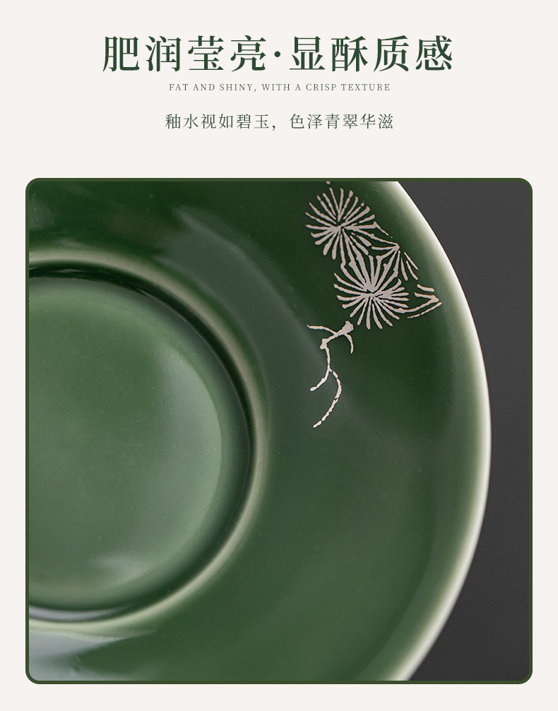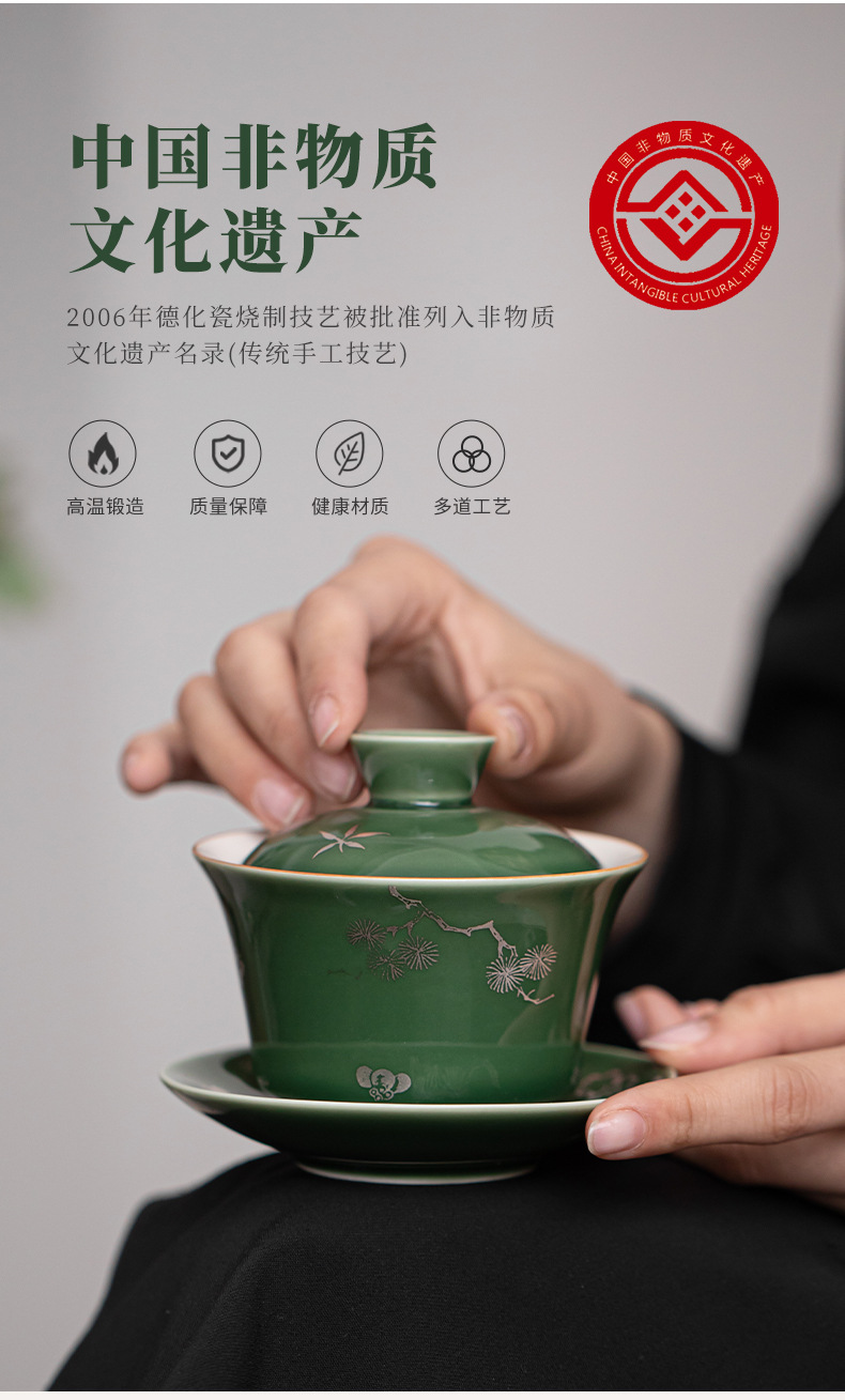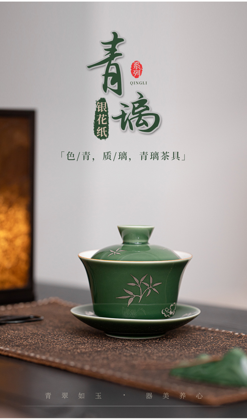- Màu xanh lá cây hương thơm tối ô rộng ba chỉ bát có nắp gốm sứ cốc trà lớn bát trà