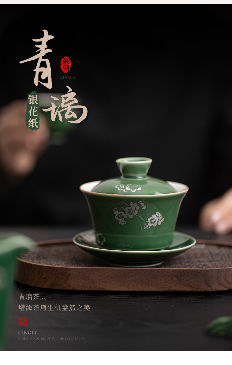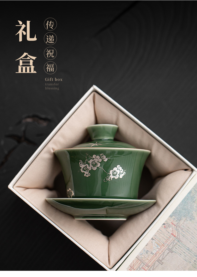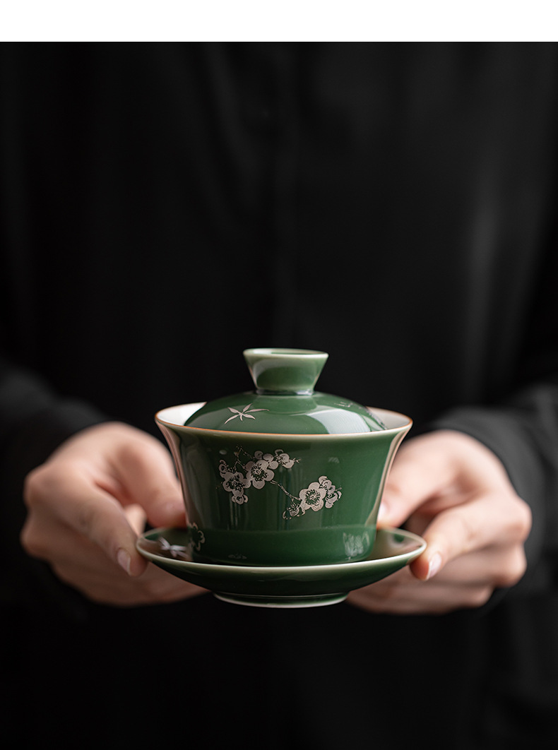 Màu xanh lá cây hương thơm tối ô rộng ba chỉ bát có nắp gốm sứ cốc trà lớn bát trà